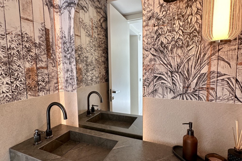 - Stunning five bedroom newly renovated Villa, nestled within the exclusive gated community of Hacienda Las Chapas, the most elegant villas district in the eastern part of Marbella. This impeccable property offers the perfect blend of modern luxury and Mediterranean charm. Set on a beautifully landscaped 1,562 m² plot with over 50 swaying palm trees, the home spans 717 m² of elegant living space, designed for comfort and sophistication. The open plan kitchen, seamlessly integrated with the spacious living and dining areas, features top of the line appliances and sleek contemporary finishes, creating an inviting space for both entertaining and everyday living. Large floor to ceiling windows flood the interiors with natural light and open onto the expansive outdoor terraces, where a bio-climatic electric pergola provides shade and style. The heated swimming pool, reaching up to 35°C in winter, is the perfect place to relax and unwind, surrounded by lush greenery for ultimate privacy. The Villa also boasts underfloor heating, air conditioning, a gym, and a stylish games room with a pool table. A covered carport for up to five cars offers secure and convenient parking with direct access to the house. This exclusive area is ideally located close to amenities while maintaining a sense of seclusion. Hacienda Las Chapas offers 24-hour security and is situated close to Marbella's white sandy beaches, various renowned five star hotels, exclusive beach clubs as well as many restaurants and 3 minutes walk to shopping facilities. There are excellent tennis clubs within walking distance and close to the yachting port in Cabopino. Three of the most renowned international schools of the Costa del Sol are situated very close to Hacienda Las Chapas, the English International School, the German School and the Colegio Ecos.