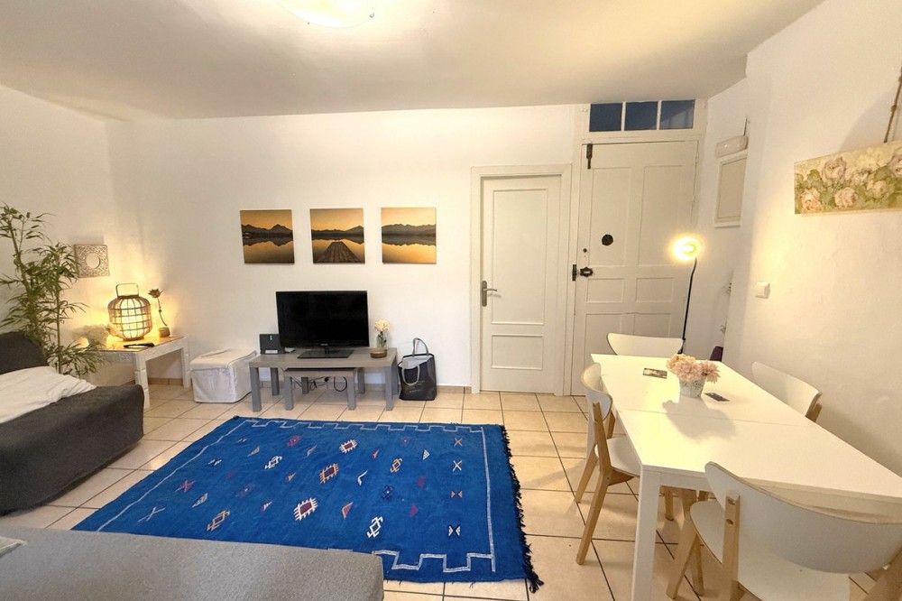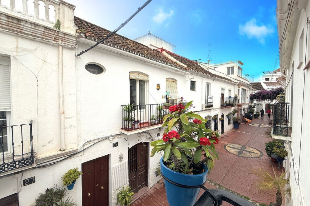 - Location, Location, Location! If you are looking for a property in the heart of Old Town Estepona, just yards away from the sandy beaches with all shops, bars and restaurants on the doorstep then this is the property for you! The property has a feeling of a house because you enter your own front door at street level and walk up a flight of steps to the living accommodation where you will find a bright and sunny West facing property consisting of 1 bedroom, 1 bathroom with an open plan living room and a nice modern kitchen. The bedroom has a Juliette balcony which is West facing and overlooks a beautiful quiet street below. The bedroom is bright and has lovely original ceramic flooring and has a large walk in wardrobe. The property has potential to be reconfigured to be 1 large open plan unit which would flood the property with natural light and give the property a more spacious modern feeling. In addition there is the potential to construct another mezzanine floor on the roof subject to project. A very interesting property indeed. The property has a tourist license in place and would work very well as a holiday rental due to its amazing central location. The property has no issues to change ownership of tourist license because it is not in a community. Modern images created to show how it could look with some cosmetic updating