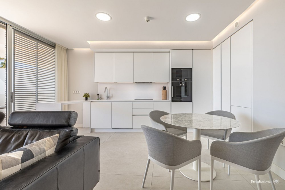 - Spectacular sea views, five minutes drive to Estepona and 15 minutes to Puerto Banus. Modern frontline beach development on the beach promenade, consisting of 68 flats. It has very well kept gardens, infinity pool, conference and meeting room, gymnasium and spa area with indoor heated pool, jacuzzi, hamman and sauna. This spectacular and luminous flat where you can enjoy the best views, has two bedrooms, 2 bathrooms with Dombracht finishes and 2 terraces, the main one with views to the garden and the sea, as well as a spacious open plan living room-kitchen with prestigious Gaggenau appliances, garage, storage room and 24h security. This luxury flat is perfect given its privileged location and the high end services it offers to become your new home. Come and see it.