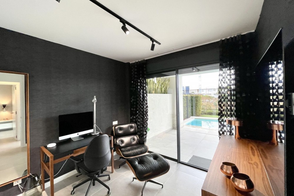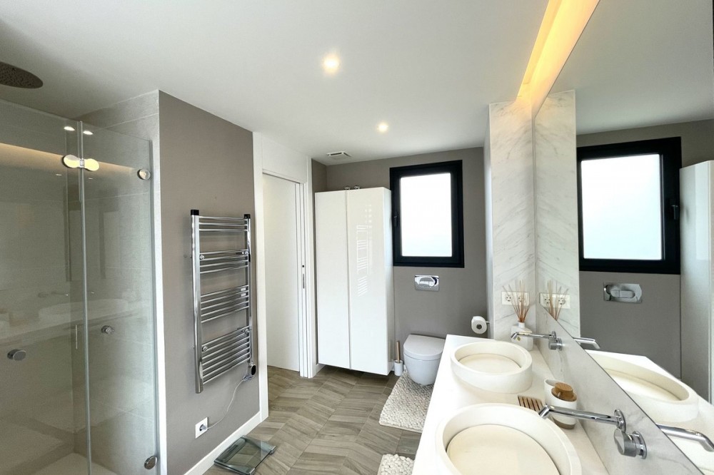 - The Cape is an innovative residential project in Cabopino. This seaside wonder is located in the municipality of Marbella (Malaga), one of the most beautiful spots on Costa del Sol. The house is situated in a frontline golf, has 3 bedrooms all with en-suites and powder room, spacious terrace offers wonderful views of the Mediterranean Sea. There is a private swimming pool with sun terrace as well as private garden to enjoy the brightness of the region. The living room is designed to ensure wellbeing and offers ease and elegance with the hight of the ceiling of 3.60 metres.The architectural feature offers a very spacious and luminous space with stunning sea views to guarantee you a place of repose and leisure where to enjoy one of the most privileged areas of the world. The kitchen has been perfectly equipped with appliances NEFF, a brand that specializes in state of the art build-in kitchen appliances, Porcelanosa flooring, bathrooms and kitchen countertop with one piece integrated sink and top of the line faucets.Many upgrades have been done, extension of the master bedroom, laundry room with integrated sink and top of the line washer/dryer, exclusive lighting design, luxury automated window covering, wood paneling in the living room and bedroom, privacy glass curtain installed on the terrace separation, kitchen cabinets upgraded, tiled front porch, outdoor faucets installed, electric car charger installed next to the parking spot, energy efficient climate control by Aerotermia Daikin, in-floor heating through out the house.Must see to appreciate everything that this house has to offer.
