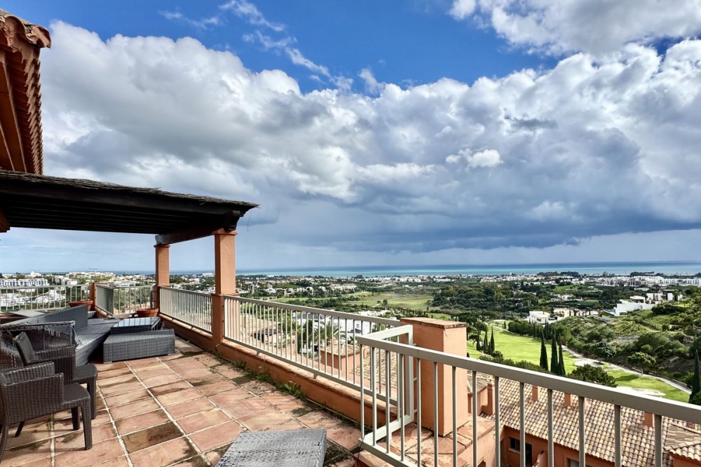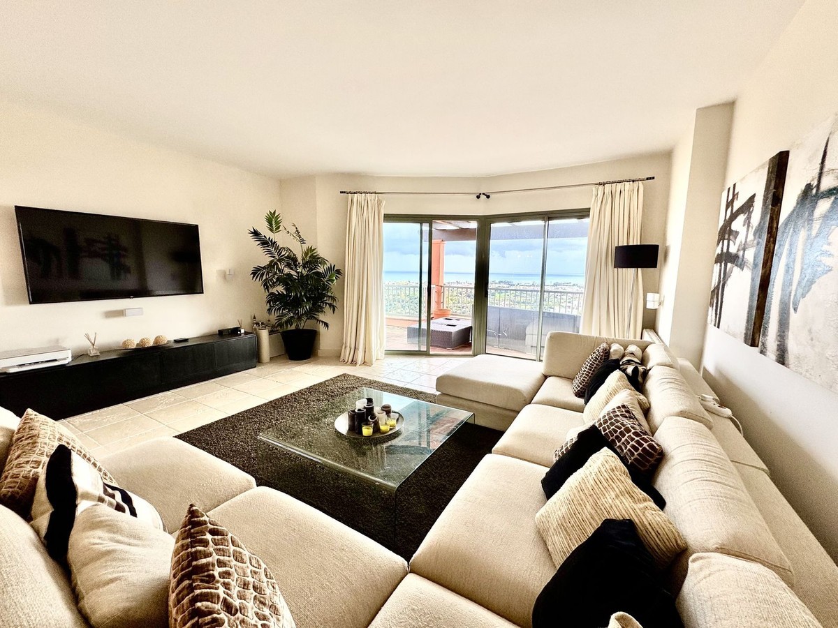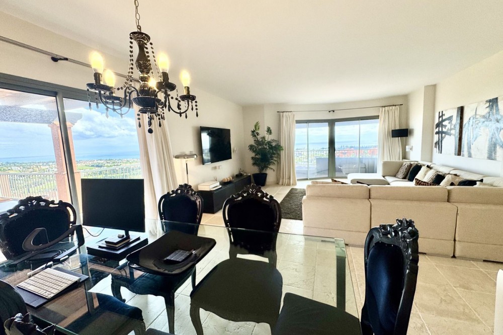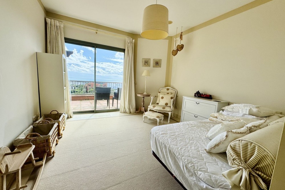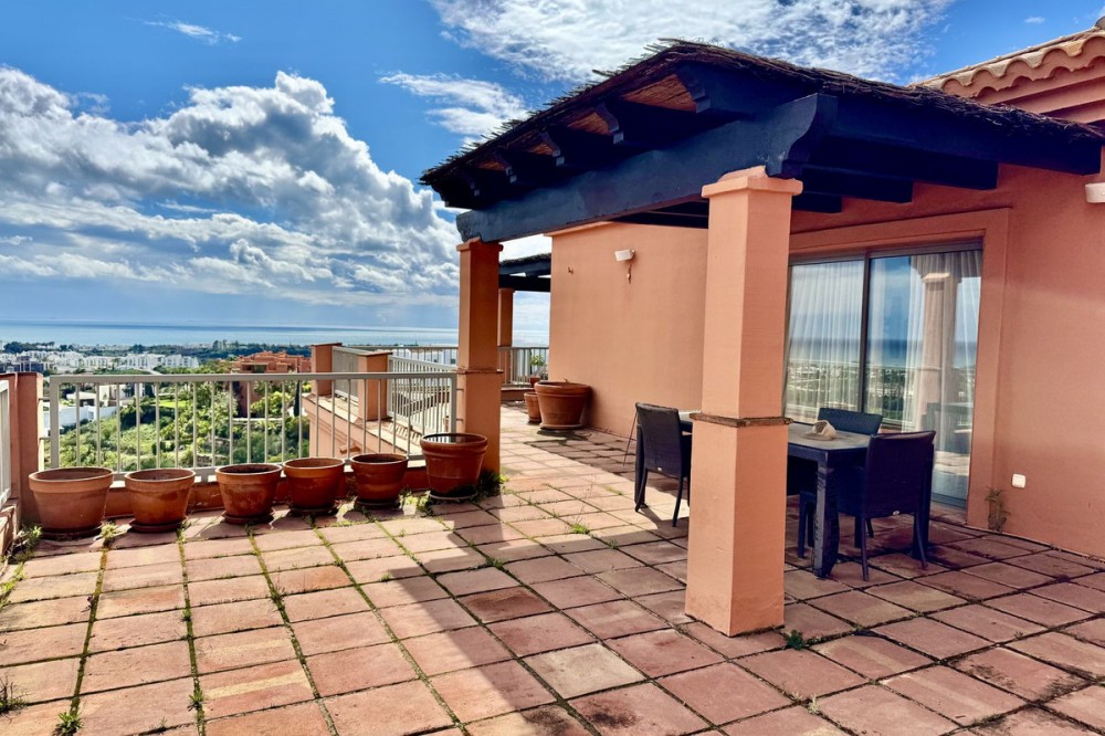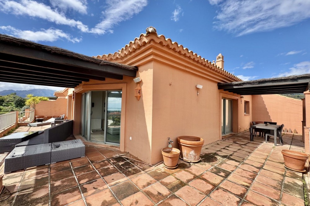• PRESTIGIOUS CORNER PENTHOUSE IN ROYAL FLAMINGOS, BENAHAVIS This 3-bed corner penthouse offers breathtaking sea, Gibraltar, and golf-front views. The property features 3 spacious bedroom suites, each with access to a terrace, and 156m² of living space. It also boasts a large 142m² terrace for seamless indoor-outdoor living, with a kitchen terrace and ample storage. Designed for comfort and luxury, the penthouse includes air conditioning, gas central heating, and premium security with gated access, 24-hour surveillance, and cameras. It also comes with 2 underground parking spaces and 1 storage unit. The Royal Flamingos complex offers exceptional amenities, such as 3 pools, a tropical garden, a paddle court, and proximity to top golf courses. This penthouse provides the perfect blend of privacy, luxury, and incredible views. The location is privileged, in a quiet and exclusive residential area surrounded by nature, the Los Flamingos golf course, and the prestigious Villa Padierna Hotel. The beach is just a 5-minute drive away, as is a wide range of services, restaurants, and shops. The famous Puerto Banús, with its luxury shops and entertainment venues, is only a 10-minute drive away. In short, this property is ideal, with a very competitive price in the current market. It is perfect both as a primary residence and as a holiday home, especially for golf enthusiasts who will enjoy the best climate in continental Europe.