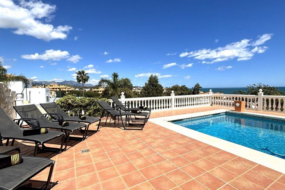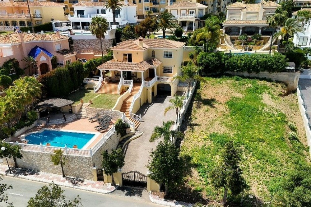 - Experience panoramic sea views that will take your breath away! This stunning villa is just a short stroll to all the vibrant amenities and the pristine beach, offering some of the most breathtaking coastal vistas you've ever seen. Nestled in the coveted Jardin Botanico, just minutes from the heart of La Cala de Mijas, this property is a true gem. Set on a generous double plot, it provides ample space to truly live your dream. With five exquisite bedrooms, each boasting its own en suite, and a stylish guest toilet, comfort and elegance are at the forefront. The vast basement features a massive double bedroom, a lively games room, and a convenient shower room—a perfect retreat for family and friends. Up on the first floor, you'll find another charming bedroom, a stunning lounge graced by a colossal fireplace, and those extraordinary sea views that will forever inspire you. The sleek kitchen with access to the backyard makes everyday living a pleasure. Ascend the grand staircase to discover three additional en suite bedrooms, including the master retreat with its own private terrace—an oasis of peace and luxury. If you’re seeking a remarkable investment or a place to call home that stirs your soul, this property is calling out to you. Don’t miss the chance to make this enchanting haven yours!