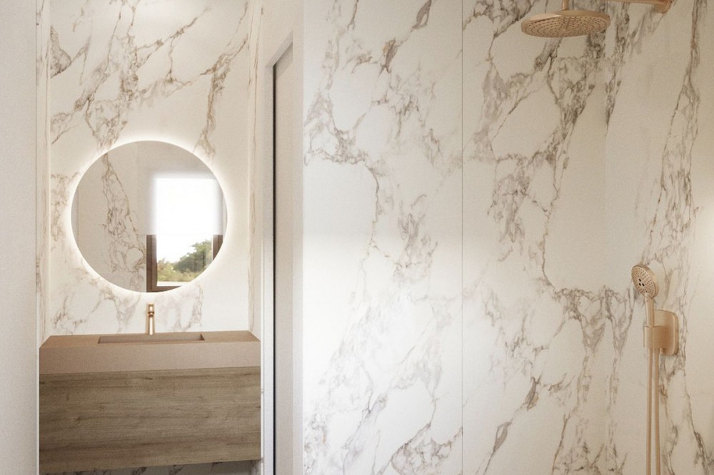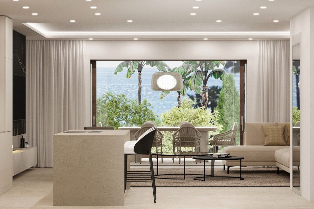 - Completely renovated townhouse frontline beach on the new Golden Mile This property has been completely renovated from scratch with very high qualities. This Townhouse offers 4 bedrooms and 4 bathrooms + a guest toilet, distributed on 3 floors. It has a private elevator, underfloor heating throughout, brand new DAIKIN airconditioning system, Electric fireplace, waterfilter for drinkable water, a brand new kitchen with MIELE Appliances, a Laundry room and everything from Pipes, to electricity, walls, installations, tiles to flooring, ceiling,windows etc. are completely brand new. This House also comes completely furnished with designer furniture and ready to move in. This property offers 3 spacious terraces with south orientation and fantastic sea views. It also has private parking with a pergola for 2 cars. The community offers a gated complex with security, 2 Pools of whichone is heated, a Tennis court, amazing gardens with mature trees and plants as well as direct access to the beach