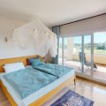 - This contemporary penthouse in Mijas, Málaga, offers a harmonious blend of comfort and style. It is located directly on a golf course and offers an impressive view of the sea, so you can enjoy both the tranquillity of the green and the panorama of the coast. The open-plan living area features floor-to-ceiling windows that flood the space with natural light and provide stunning panoramic views of the surrounding landscape. The living room is tastefully furnished with a plush white sectional sofa, accented by vibrant area rugs that add warmth to the polished floors. The sleek kitchen boasts modern navy cabinetry contrasted with white countertops and high-end stainless steel appliances, creating a sophisticated culinary space. The penthouse's three bathrooms are elegantly appointed, with one showcasing a floating double vanity in rich wood tones and a glass-enclosed shower. The primary bedroom is a serene retreat with direct access to a private terrace. It features a canopied bed, a spacious walk-in closet, and a luxurious en-suite bathroom with both a bathtub and a shower. The second bedroom offers equally impressive views and is furnished with a comfortable double bed. A dedicated office space provides a functional work area with a modern desk setup and ample natural light. The crowning feature of this property is the private terrace, complete with a swimming pool and expansive views of the surrounding hills and greenery. Additionally, the penthouse includes two parking spaces and two storage rooms. Residents also have access to excellent communal amenities, including a large swimming pool, a heated pool, and an outdoor kitchen that can be used by everyone. With its thoughtful layout, luxurious amenities, and prime location in Urbanización Cerrado del Águila, this penthouse offers a perfect balance of indoor comfort and outdoor living in the heart of Costa del Sol. We are pleased to be able to present this dream property to you soon, either personally or via virtual viewing. Because this world is unique - just like our Axarquía. In Andalusia. On the Costa del Sol. Here, on the sunny side of life...