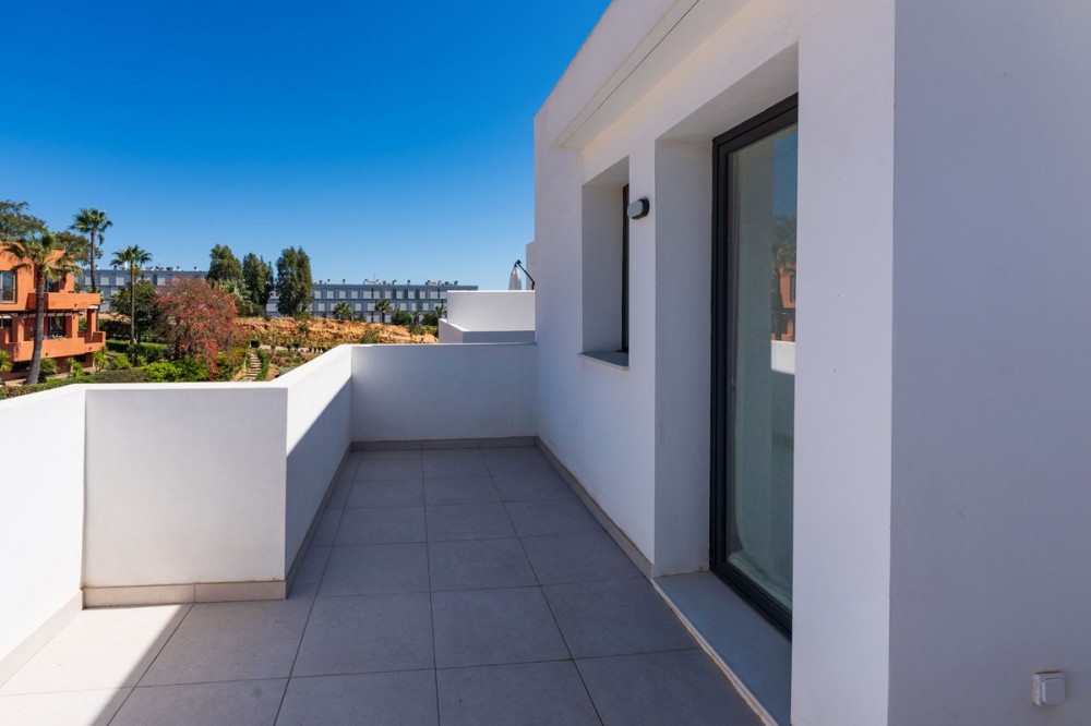- Fantastic sea views: Luxury townhouse in Bahia de Las Rocas The townhouse project Golden View offers exclusive living comfort and breathtaking views of the sea as far as Gibraltar and the Atlas Mountains of Morocco. Here you can enjoy plenty of space for your individual lifestyle and a high degree of privacy. The location is ideal: surrounded by idyllic nature, you can reach the beach, shops and restaurants as well as the exclusive marina of Sotogrande in just a few minutes. The lively town of Estepona is around 15 minutes away. As one of the best houses on the complex, this townhouse offers a total of 4 bedrooms and 3 bathrooms. The private garage with two parking spaces leads directly into the house and the converted basement, which offers plenty of practical storage space. On the ground floor is the main entrance, the customized, open-plan designer kitchen with state-of-the-art equipment, a guest toilet and the living and dining area with wonderful views of the sea and Gibraltar. In the garden area, the south-facing orientation allows you to enjoy countless hours of sunshine on the terrace or in the private infinity pool. The first floor offers space for three bedrooms - a master bedroom with en-suite bathroom and two further bedrooms with a shared bathroom. A fourth bedroom is located on the top floor, including a bathroom and walk-in wardrobe. From here, you can access the roof terrace, which offers spectacular views of the sea and the whole coast. Features of Golden View include a communal swimming pool, a paddle tennis court and a small play area for children. The house is perfect for all those who dream of a holiday home for the whole family and friends in a perfect location or who want to relocate to the Costa del Sol. But the greatest luxury of all: The unobstructed view of the Mediterranean and the unique Mediterranean lifestyle!
