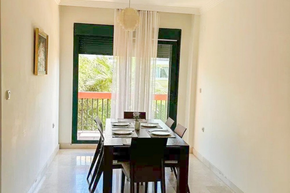 - This charming apartment in Marbesa, Marbella, 500 meters from the beach. It is located in a consolidated and very quiet urbanization in one of the nicest areas of Marbella East, close to the port of Cabopino and a short drive from golf courses, Marbella center and Puerto Banus. It also has easy access to Malaga airport. The property is distributed in entrance hall, bright living room with access to a nice terrace separate dining room with another balcony, separate kitchen with utility room, two bedrooms (one en suite) and two bathrooms. It includes parking space and storage room. Do not hesitate to request a visit!