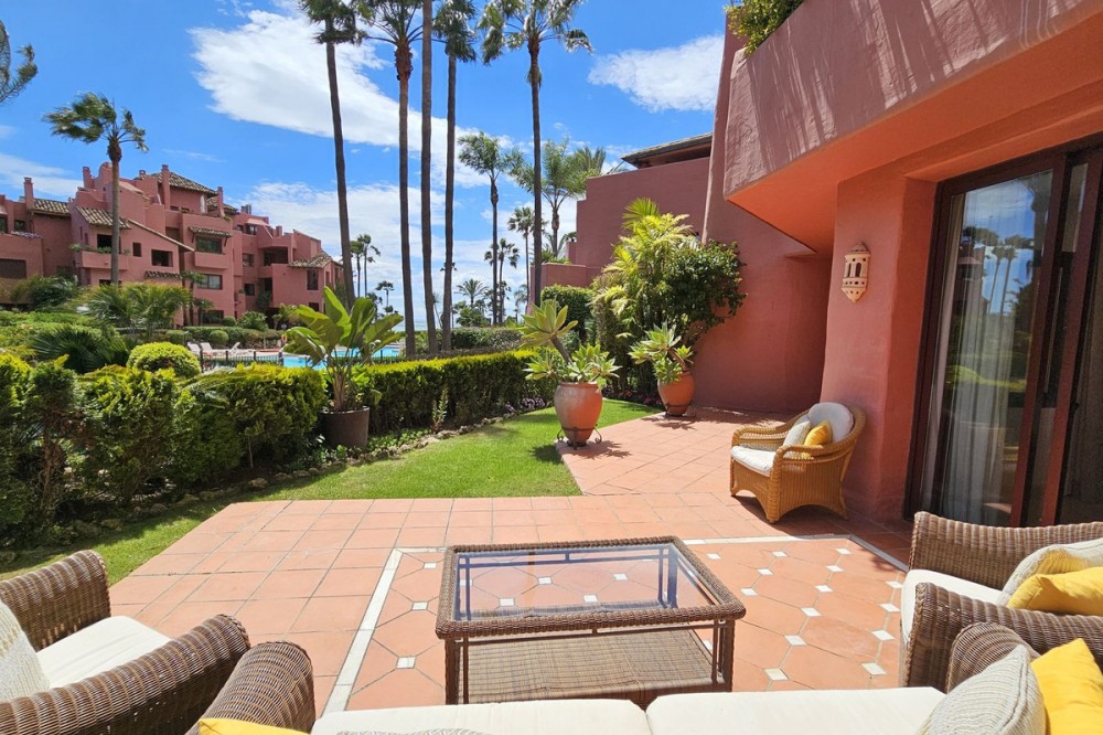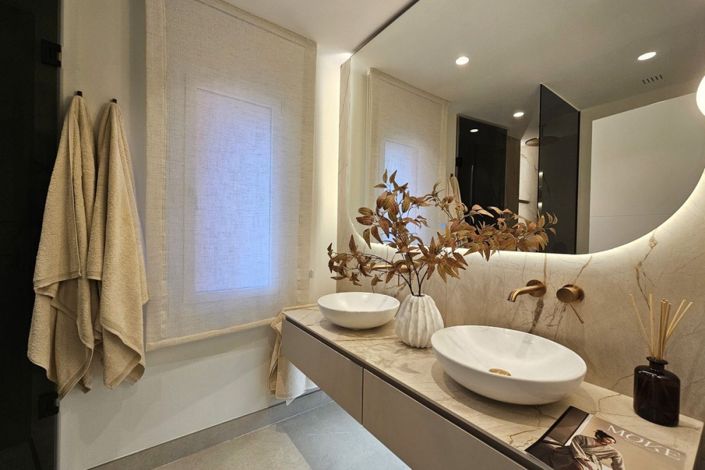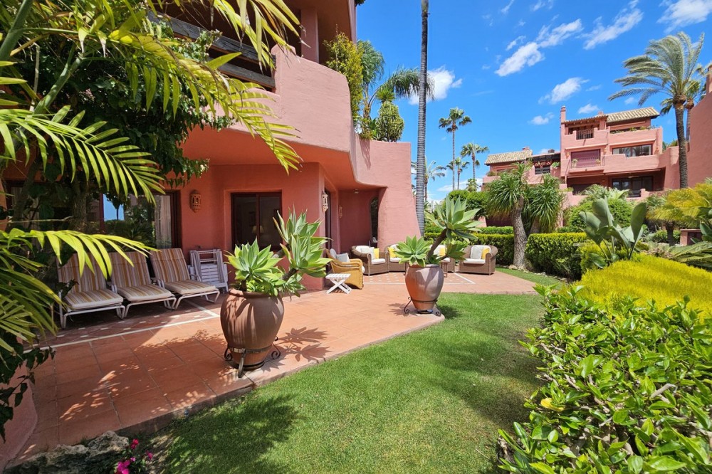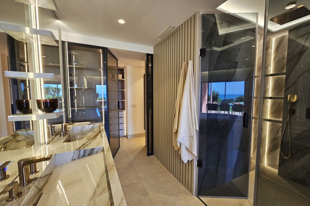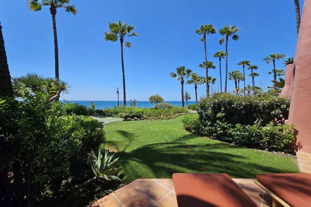 - Stylish Beachfront Living on the New Golden Mile If you are after a relaxed, high-end lifestyle by the sea, this fully renovated beachfront apartment may be just the thing. Tucked away in one of Estepona’s most desirable spots—the New Golden Mile—this place blends modern comfort with a touch of elegance, all right on the Mediterranean. Walking in, you are met with stunning sea views stretching out to the horizon. The living space opens straight onto a large private terrace, making it easy to enjoy that indoor-outdoor lifestyle, whether you're winding down or hosting friends. The sound of the waves in the background just adds to the calm. The apartment has been updated throughout with smart, top-quality features. A premium B&O sound system is built in, giving you rich sound in every corner. The kitchen is sleek and modern, with an invisible hob, wine fridge, and stylish finishes that are both practical and good-looking. There’s a cosy electric fireplace in the lounge, perfect for cooler evenings. The main bedroom includes a spacious walk-in wardrobe—ideal for keeping your clothes and accessories well organised. A hidden laundry area means everything stays tidy and clutter-free, keeping the clean lines and modern feel intact. Menara Beach is a secure, gated community with beautifully kept gardens and direct access to the beach. You’ll have use of two outdoor swimming pools surrounded by palms, plus an indoor heated pool, a gym, and a sauna. The vibe is peaceful and friendly, with a real sense of community among the residents. Whether you're looking for a full-time home by the sea, a stylish getaway, or a smart investment on the Costa del Sol, this apartment offers a standout mix of location, lifestyle, and modern design.