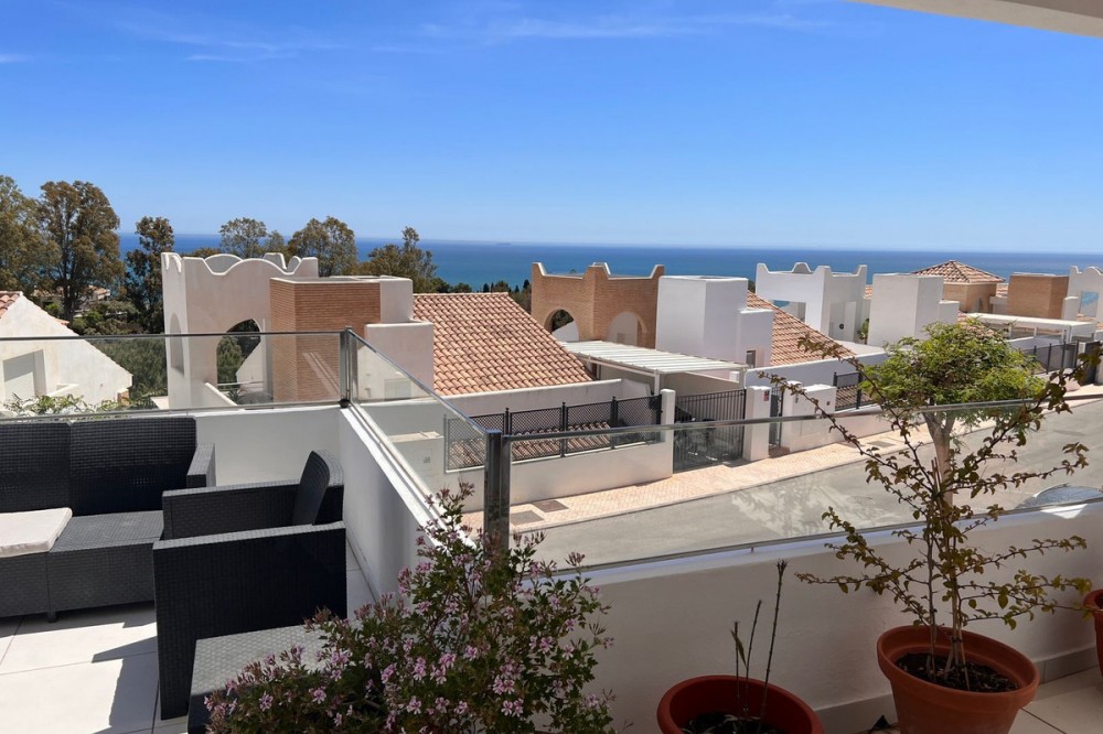 - Discover this stunning home with sea views in one of the most exclusive areas of Benalmádena, where the blue of the Mediterranean merges with the sky in a panoramic view that you can enjoy every day from your home. This modern three-storey semi-detached house combines elegance, comfort and contemporary design to perfection. It has four spacious bedrooms, all with en-suite bathrooms, and a total of five bathrooms to offer you maximum comfort. It has one hundred and thirty-four metres of terraces overlooking the sea and the bay of Fuengirola with south orientation, where you can enjoy the sun all day long. In addition to the two parking spaces, a state-of-the-art air conditioning system, premium finishes, lift to access any floor comfortably. In communal areas the property is surrounded by nature in landscaped areas next to the infinity pool with panoramic views with gym and social club. This house is not a place to live, it is a lifestyle. At the same time it is close to all amenities, restaurants, supermarkets, hospitals, beaches, international school, golf course, airport, etc. Can you ask for more? Now all this at your fingertips, Don't miss this opportunity. From the moment you decide to visit it, everything will change in your life. Don't believe us, see for yourself!