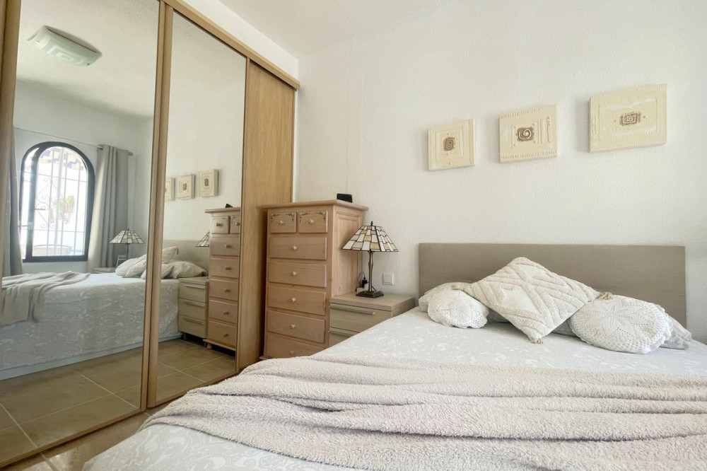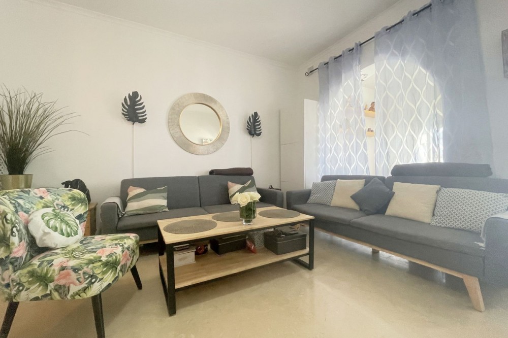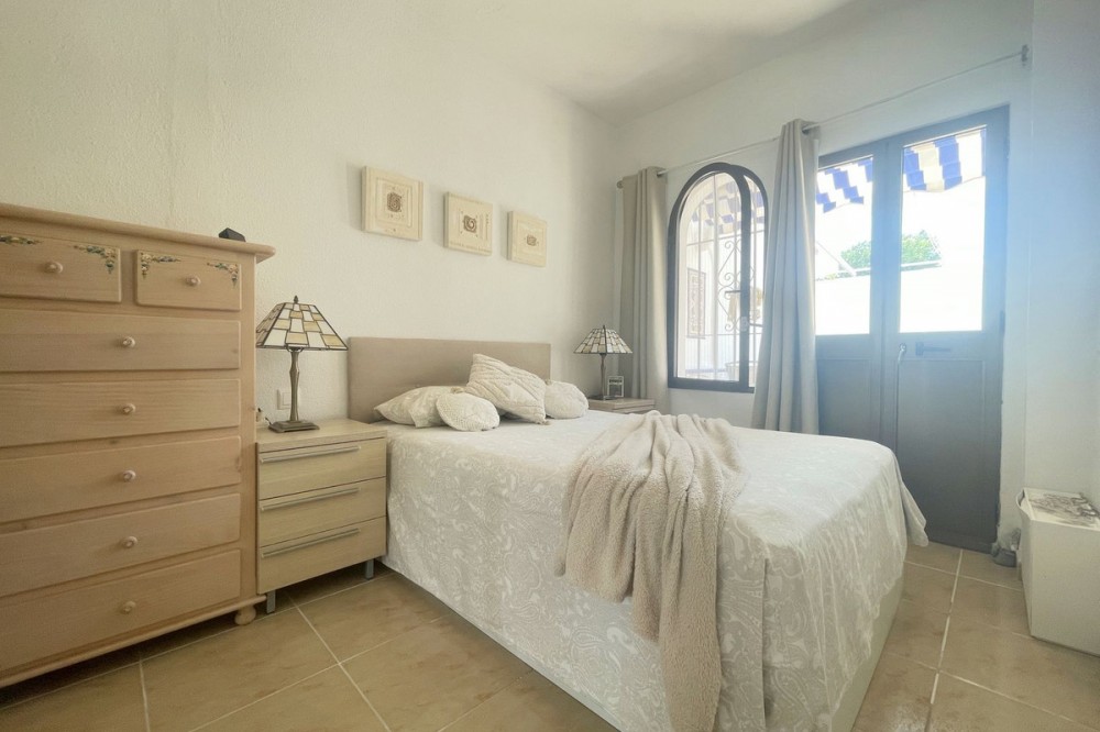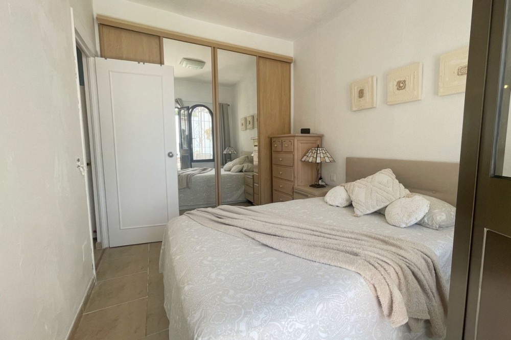 - EXCELLENT OPPORTUNITY. GROUND FLOOR WITH TWO GARDENS AND SEA VIEWS. Located in a peaceful and exclusive residential area, this charming ground-floor property offers exceptional quality of life. With a spacious front garden providing sea views, this home is perfect for those seeking comfort, privacy, and a direct connection with nature. The interior is laid out with a bright living room and integrated modern kitchen, creating an open and inviting atmosphere. Additionally, it features two bedrooms, the master with direct access to the back garden, a bathroom, and a second bedroom with lovely sea views. The back garden, with a terrace and artificial grass, is ideal for enjoying outdoor moments with complete privacy. The residential area offers two community pools and large well-maintained green spaces, ensuring a relaxing environment year-round. With secure and easy access, this property stands out for its tranquil location and its potential for both full-time living and excellent vacation rentals. Without a doubt, a unique opportunity to enjoy sea views and the comfort you deserve. Come and visit to appreciate all the potential this property has to offer!