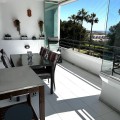 - A fantastic and spacious top floor apartment situated in the popular golf area of Miraflores. Set within a gated community, this 2 bedroom, 2 bathroom apartment offers beautiful sea, golf and garden views. Located right next to the Miraflores Club house, this development enjoys large landscaped gardens and a large pool area including a children's pool. The apartment is located on the corner of the block next to the pool on the second floor without a lift. Entering the apartment, you are welcomed by a large lounge with dining area and direct access to the very spacious terrace with glass curtains, giving you use all year round. From the living/dining area you enter a good size and well lit fully fitted kitchen with views to the golf course. The master bedroom comes with an en-suite bathroom, built in wardrobes, hot and cold air conditioning and direct access to the terrace. The second bedroom comes with built in wardrobes, hot and cold air conditioning and a Juliet balcony giving you fantastic views of the golf course. The second bathroom comes with a corner shower and a small storage area housing the washing machine. The apartment comes with its own private garage with an electric door, plus there is a storage area to the rear of the garage. Miraflores club house is only a two minute walk where you have a bar and restaurant offering it's services all day. Shops and the A7 is only five minutes by car. Viewings are highly recommended and keys are held at the office. Please note - The community does not allow short term rentals.
