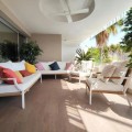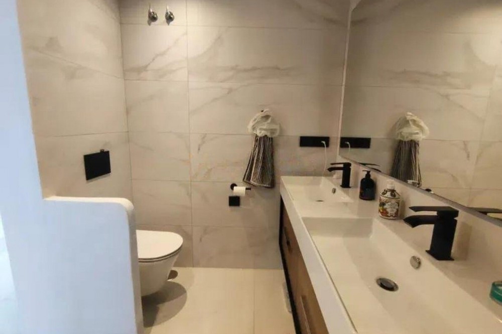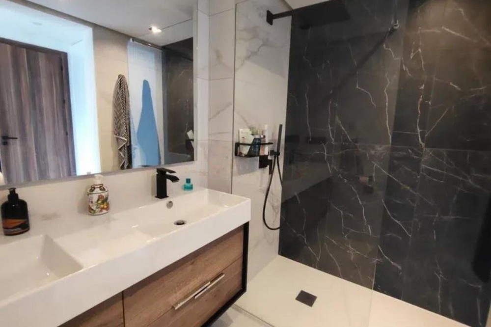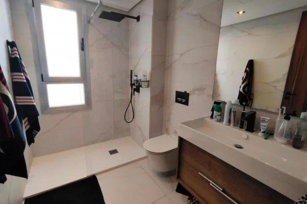 - Magnificent apartment in one of the most sought after areas of Nueva Alcantara, the beach side of San Pedro de Alcantara. Within the modern urbanization built in 2024. The property offers a functional and cozy design with three bedrooms and two bathrooms. The master bedroom, spacious and comfortable, has an en suite bathroom and direct access to the terrace. The living-dining room, of generous dimensions, is integrated with a fully equipped American kitchen, creating an open and bright space with direct access to a large and pleasant terrace. Among its qualities include double glazed windows with tilt and turn system and safety glass, sliding doors in the living room, motorized blinds, aerothermal air conditioning system with hot / cold air conditioning, ceiling fans in both bedrooms and terrace, and practical details such as a folding study table. The apartment is sold with parking space and a very spacious storage room, The urbanization offers a well-kept green area with communal swimming pool operational throughout the year, as well as security with surveillance cameras and night surveillance. Its location is excellent: surrounded by parks, next to the Boulevard de San Pedro and the municipal sports center, and a few meters from schools, pharmacies 24 h, banks, restaurants and cafes. All this with quick and easy access to the main communication routes.