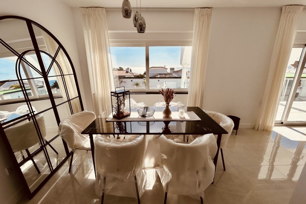 - A stunning detached villa with beautiful coastal views, recently updated throughout to a very high standard.This beautiful villa is found on the small, peaceful urbanisation of Jardines Tropical. Jardines Tropical is a small, low rise urbanisation of low rise, private villas. It is a well established, peaceful community just a short walk from the beach and the Mediterranean Sea. This villa is just a 5 minute drive from the seaside village of Sabinillas, the popular marina of La Duquesa, the beautiful unspoiled beaches and the Mediterranean Sea. Nearby ports include Estepona and Sotogrande and the traditional Andalucia white villages of Manilva, Casares and Gaucín are a pleasant drive away. The historical and cultural cities of Cadiz, Seville, Granada and Jerez are all within driving distance and definitely worth visiting. Jardines Tropical, Duquesa is a highly desirable location. Coupled with beautiful year round climate, low running costs and the proximity to a vast array of amenities we think this an ideal family holiday home or a more permanent residence.The property has a welcoming entrance lobby. This leads to a large, bright living room. This living room is very well proportioned with a comfortable lounge area, a dining area and a bespoke contemporary open plan kitchen fitted by Schmidt. The room is triple aspect creating a bright, naturally lit area with beautiful Mediterranean views. French doors lead to a covered terrace with views to the private pool, gardens and the sea. To the rear of the property is a useful utility/laundry room with access to the back of the villa and the secure parking area. Also on this level is a 4th bedroom/office with a toilet. Stairs from the lobby lead to the sleeping accommodation which consists of 3 further generous double bedrooms. The main bedroom has 2 sets of fitted wardrobes and a large ensuite shower room. There is access to an upper terrace that enjoys stunning sea views. The second double bedroom also has fitted wardrobes and access to the upper terrace whilst the third bedroom is also a generous double. There is also a family shower room serving the 2 double bedrooms. The villa has been tastefully updated throughout with new electrics, floors, doors, windows, shower rooms, hot and cold A/C. and completed to a high standard. Outdoor Layout. The villa sits in a large plot that is walled on all sides providing security and privacy and an electric gate leading to private parking for 2 cars. The plot is terraced throughout with individual area for BBQ’s, exercising with both sunny and shaded areas to suit, perfect for our beautiful year round climate. At the front of the property is a private, secluded swimming pool with a new pump. There is also an independent pool room suitable for entertaining or to be used as an independent bedroom.
