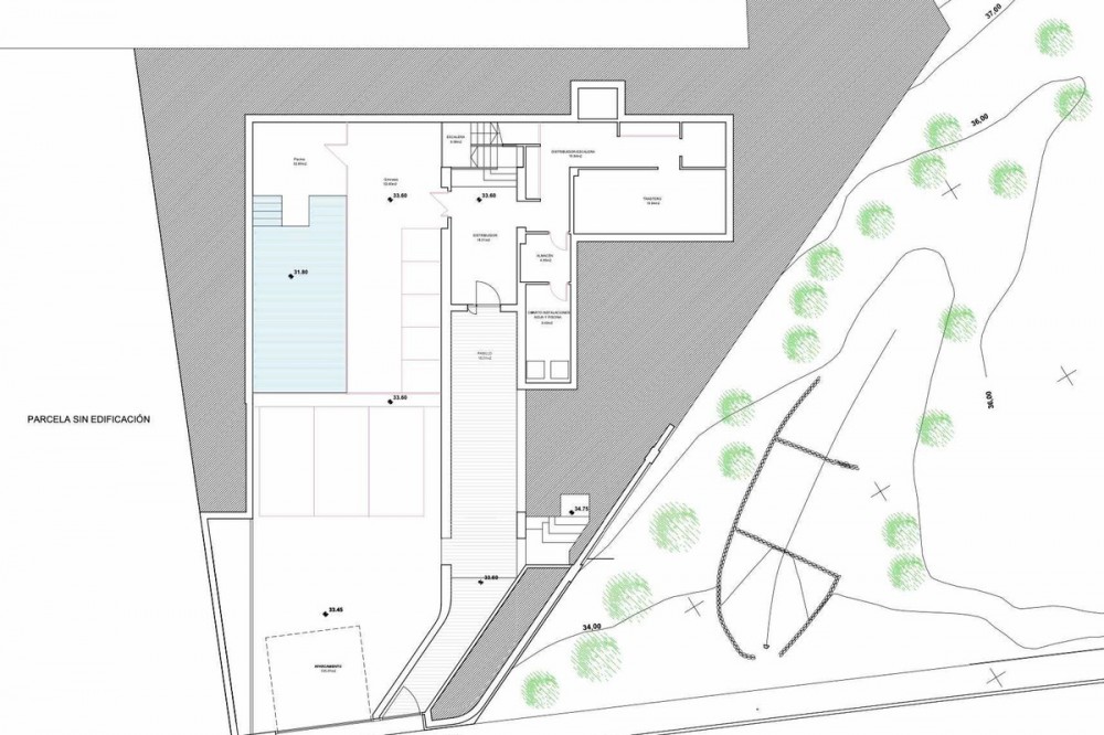 - URBAN PLOT AREA: 781 M2 BUILDING RATE: 0.369 m2/m2 s. BUILDING CEILING: 288.33 m2 s. NUMBER OF HOMES: 1 FOR PRIVATE USE ORDINANCE: AIS-2. RATE: 1.26 percent. Basic project for a villa with 4 bedrooms, 6 bathrooms, a garage (3 vehicles), and an indoor and outdoor pool included in the price!! Newly obtained building permit included in the price!! You could start building tomorrow! The construction of the home is not included.