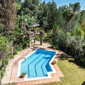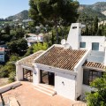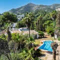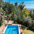 - A unique villa to renovate, surrounded by palm trees with amazing sea and mountain views in the highly sought-after Las Lomas de Mijas – An opportunity to create a dream home. WITH TOURIST LICENSE Located in the prestigious Las Lomas de Mijas neighborhood, just a few minutes’ drive from both the charming Mijas Pueblo and the coastal town of Fuengirola, this spacious villa from 1970 offers a rare combination of location, space, and great potential. Property Features: Plot: 2,194 m² with lush, mature landscaping Built area: 379 m² Terraces: 92 m² with views of the sea and mountains The villa has 9 separate rooms South- and west-facing terraces for all-day sun and unforgettable sunsets Large private pool with a wooden garden house Two separate garages, measuring 50 m² and 25 m² Layout: The ground floor welcomes you with a grand entrance hall, followed by a sunken room overlooking the whole area of Mijas all the way to the sea, a spacious living room, dining room, and a separate kitchen with utility room. From the hallway there's a raised section with 3 rooms and its own entrance – ideal as a guest wing or home office. Also on this level are 3 bedrooms (with jacuzzi) and 2 bathrooms. On the lower floor you’ll find 2 additional bedrooms (one with a sauna), 2 bathrooms, and a large storage room with a wine cellar. What makes this villa special: Although the property is in need of renovation and modernization, it offers a fantastic opportunity to fully recreate it according to your own style and needs. The location, generous size, sea views, and beautiful garden make this a unique find in the area. The south-facing terrace ensures plenty of natural light, while the west-facing terrace offers spectacular sunsets with views of Mijas Pueblo and the Sierra de Mijas mountains. An excellent investment – once renovated, this villa will significantly increase in value. Don’t miss this rare opportunity to create your dream villa on the Costa del Sol!