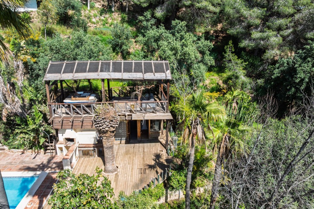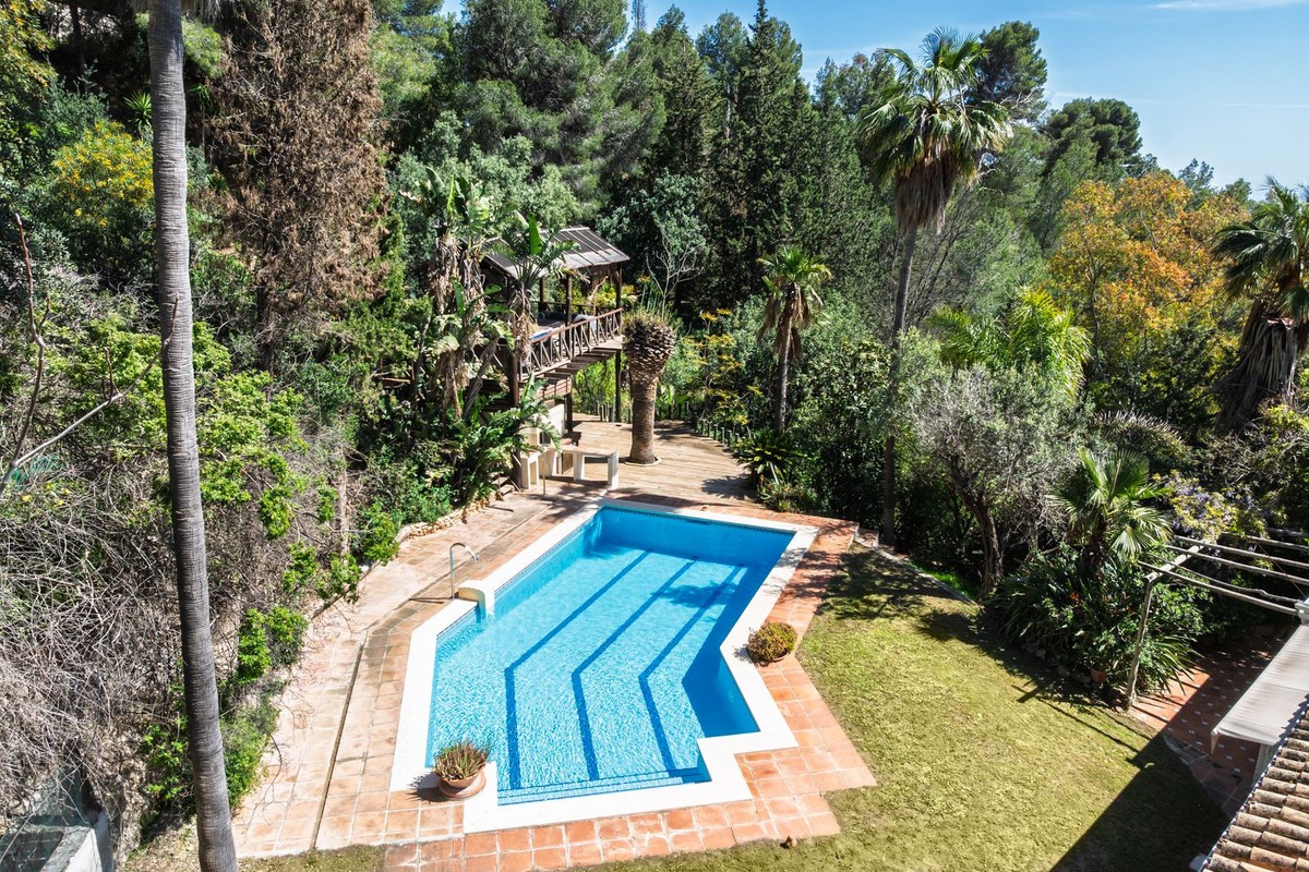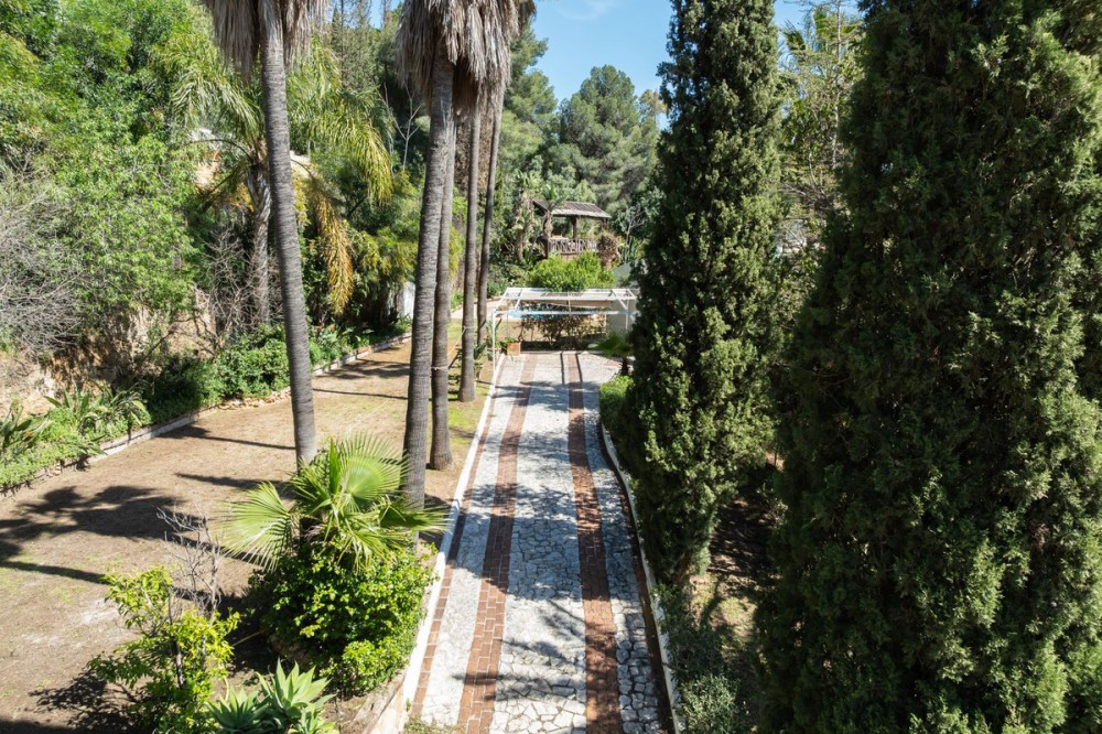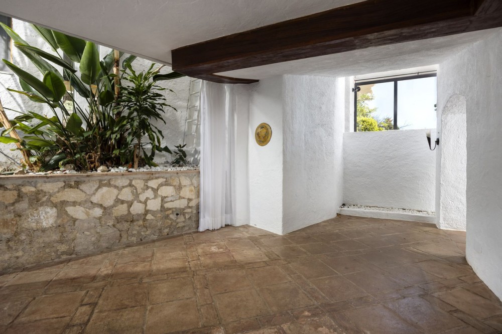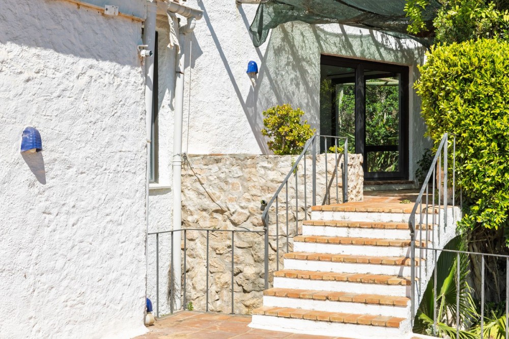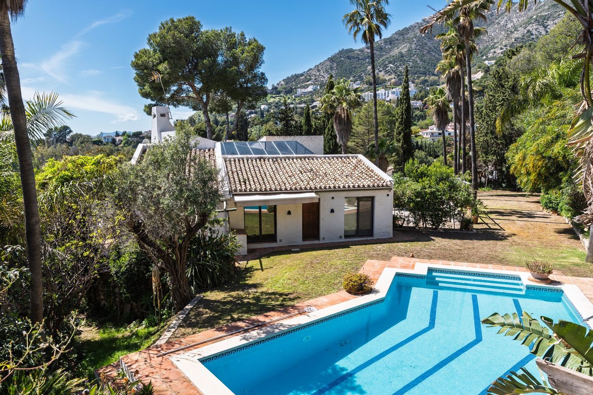 - A unique villa to renovate, surrounded by palm trees with amazing sea and mountain views in the highly sought-after Las Lomas de Mijas – An opportunity to create a dream home. WITH TOURIST LICENSE Located in the prestigious Las Lomas de Mijas neighborhood, just a few minutes’ drive from both the charming Mijas Pueblo and the coastal town of Fuengirola, this spacious villa from 1970 offers a rare combination of location, space, and great potential. Property Features: Plot: 2,194 m² with lush, mature landscaping Built area: 379 m² Terraces: 92 m² with views of the sea and mountains The villa has 9 separate rooms South- and west-facing terraces for all-day sun and unforgettable sunsets Large private pool with a wooden garden house Two separate garages, measuring 50 m² and 25 m² Layout: The ground floor welcomes you with a grand entrance hall, followed by a sunken room overlooking the whole area of Mijas all the way to the sea, a spacious living room, dining room, and a separate kitchen with utility room. From the hallway there's a raised section with 3 rooms and its own entrance – ideal as a guest wing or home office. Also on this level are 3 bedrooms (with jacuzzi) and 2 bathrooms. On the lower floor you’ll find 2 additional bedrooms (one with a sauna), 2 bathrooms, and a large storage room with a wine cellar. What makes this villa special: Although the property is in need of renovation and modernization, it offers a fantastic opportunity to fully recreate it according to your own style and needs. The location, generous size, sea views, and beautiful garden make this a unique find in the area. The south-facing terrace ensures plenty of natural light, while the west-facing terrace offers spectacular sunsets with views of Mijas Pueblo and the Sierra de Mijas mountains. An excellent investment – once renovated, this villa will significantly increase in value. Don’t miss this rare opportunity to create your dream villa on the Costa del Sol!