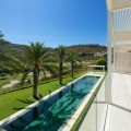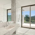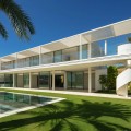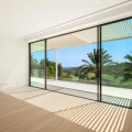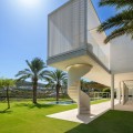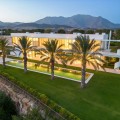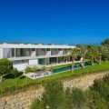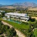 • Perched on an elevated plot within the prestigious Finca Cortesin Resort, this remarkable villa blends architectural elegance with unmatched views of the Mediterranean and golf course. Surrounded by lush gardens and towering palms, the home offers seamless indoor-outdoor living, with expansive terraces and a stunning pool creating a private oasis. Designed by renowned architects Vicens & Ramos, the villa spans three levels. The ground floor features open-concept living bathed in natural light, with floor-to-ceiling glass doors, bespoke interiors in soft neutral tones, and a state-of-the-art Gaggenau kitchen. The upper level hosts serene bedrooms, each with a private terrace, while the basement includes a hidden-entry wine cellar, laundry, and utility rooms. A showcase of sophistication and exclusivity, this frontline golf property sets a new benchmark for luxury living on the Costa del Sol.