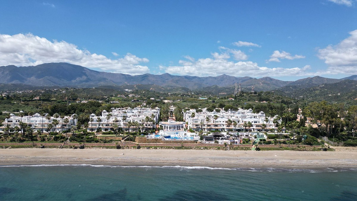 - Discover seaside serenity in Estepona's ever popular complex - Dominion Beach located on the New Golden Mile. This spacious 2-bedroom, 2-bathroom apartment puts you just steps from the sand, with no road noise to disrupt the tranquility. The apartment is located on the second line of the complex. • Beachfront living in a gated, secure community • Large 2 bed / 2 bathroom ground-floor unit with the option of adding another bedroom • Spacious covered terrace • Onsite amenities including bar, restaurant, and Pilates studio • Underground parking and storage included • Direct access to the promenade where you can stroll or take the bike to the charming old town of Estepona. Envision yourself strolling along the beach each morning, then returning to your private oasis to soak up the sun in the lush communal gardens. When you're ready to explore, the charming old town of Estepona is a stroll away and in the other direction you will find the vibrant beach bars of San Pedro and Marbella. All can be accessed on the Senda Litoral coastal path. This beachfront apartment offers the perfect blend of comfort and convenience for those seeking a permanent residence, luxurious holiday home or rental investment. Upgrade your lifestyle and secure your slice of the Costa del Sol today.