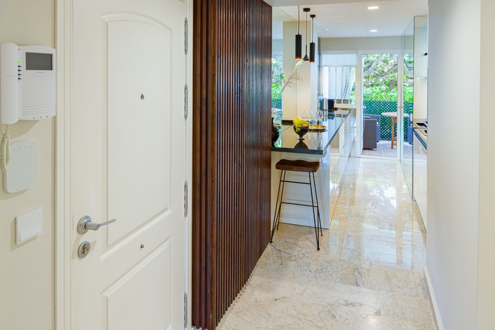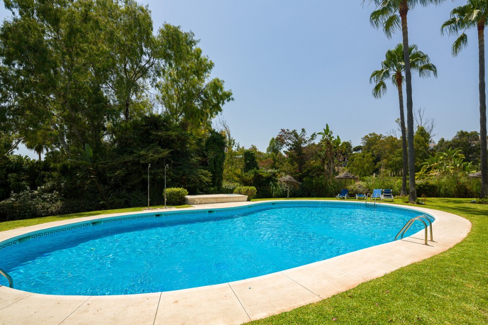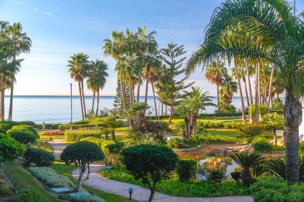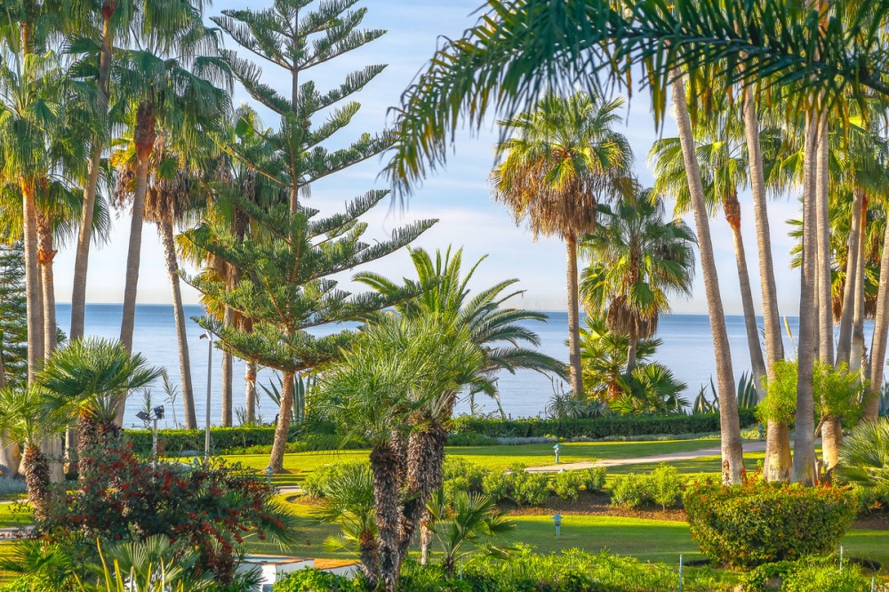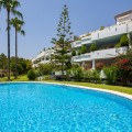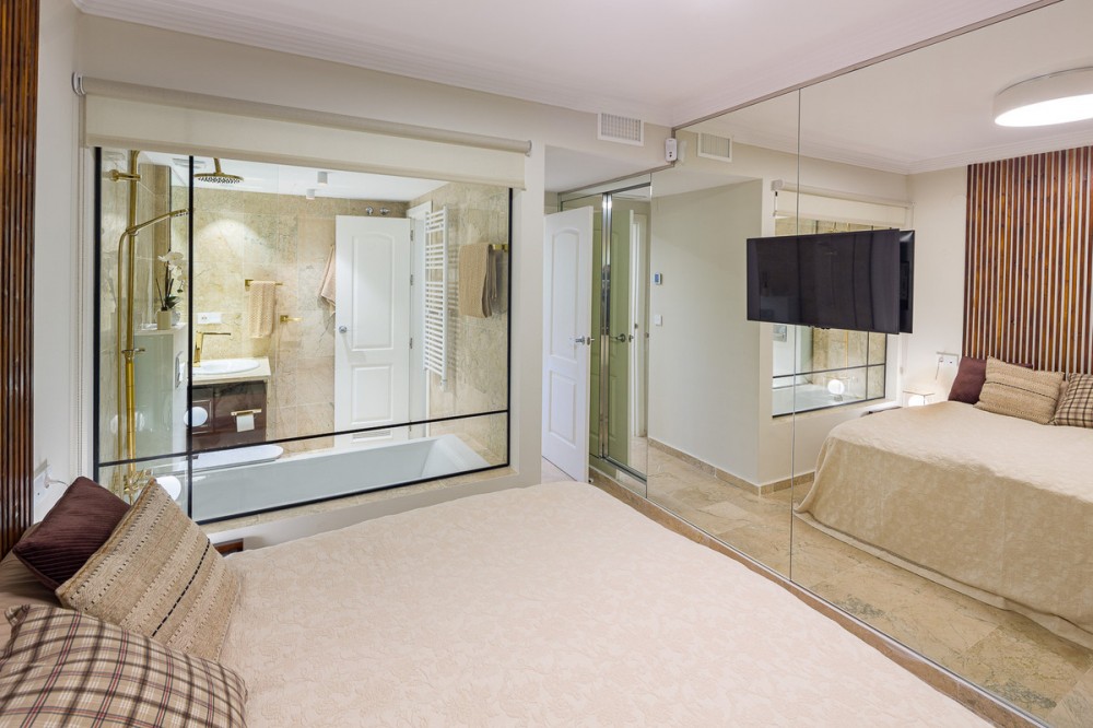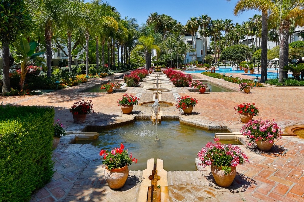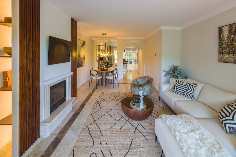 - Newly renovated Luxury design, cozy apartment in prestigious Marbella Golden Mile urbanization "Balcon de Puente Romano", next to “Puente Romano Nobu”, “Marbella Club”, the beach and sea - 3-5 min walking distance. Bright and spacious apartment with a brand-new furniture and top-quality equipment, 2 modern bedrooms, 2 bathrooms, 2 big terraces, HD TV in each room, air conditioner with 3 different climate zones, 24 h access to newly renovated swimming pool. For your comfort and luxury living in tropic garden surround. Private underground parking is included. Just finished apartment project was done by professional designers, apartment is more spacious than others, prevails luxury and modern solutions. “Eichholtz”, “Kare”, “Zuiver”, “Hoffman”, “Skyline design” - these brands are equipped with apartment. Living room spacious, comfortable sitting area (or to lie down), HD TV wall composed with fireplace decorated with hidden LED lighting. Comfortable dining area with modern chandelier and exposition, workspace. Access from the living room to a big terrace with table for 7-8 persons and 2 comfortable sunbeds, swimming pool and tropical garden view. Open modern kitchen with all top-quality equipment (dishwasher, 2 fridges, oven, induction hob, modern steam extractor, microwave and etc.), bar zone, decorated LED lighting. Access to the other terrace, equipped with 4 comfortable armchairs, table, curtains for your cozy and privacy. Storage room is hidden by mirror doors, there you find laundry room. Each of 2 Bedrooms relate to separate bathrooms by modern glass walls (installed blinds). All the bedrooms equipped HD TV’s, Master bedroom have access to the main terrace too. Spacious wardrobes.