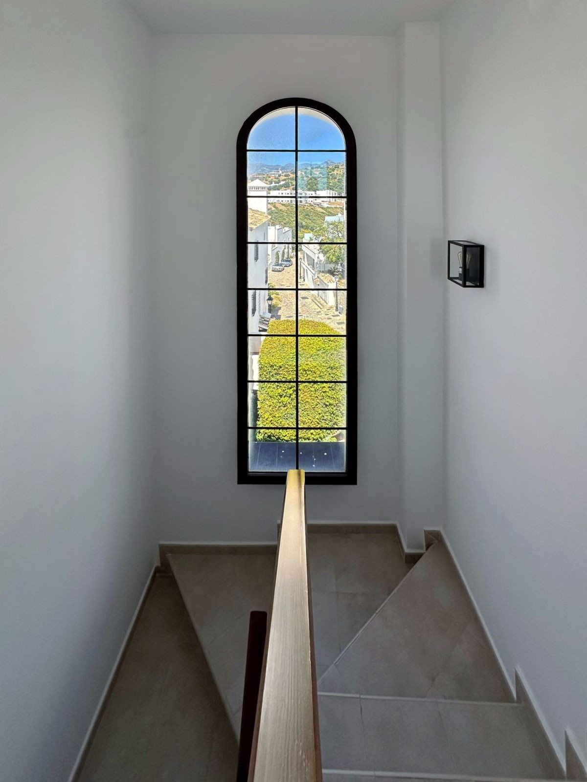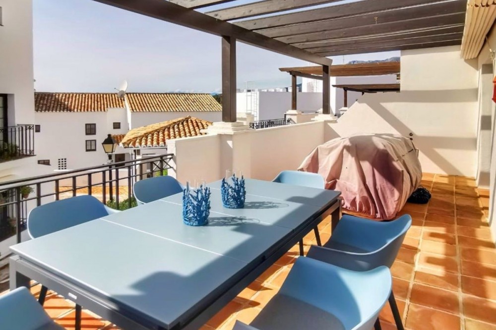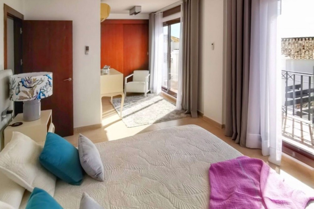 - Discover your dream home with this stunning townhouse in the prestigious Pueblo Los Monteros Urb. located in Altos de Los Monteros, Marbella. Meticulously maintained and ready for you to move in! Nestled within a secure, gated community designed in the charming style of an Andalusian village, this property offers access to a refreshing swimming pool—perfect for relaxation and leisure. This spacious penthouse boasts 4 generously sized bedrooms and 3 luxurious full bathrooms, plus a convenient guest toilet. Step into the first floor, where a welcoming entrance hall leads to a stylish staircase, a guest toilet, and a serene bedroom with an en-suite bathroom. The open-plan kitchen seamlessly flows into the elegant living-dining area, opening onto a expansive terrace—your private oasis with ample space for entertaining or unwinding. Ascend to the second floor to find two airy bedrooms sharing a full bathroom, along with another large terrace offering breathtaking views. The third floor is a true retreat, featuring the master bedroom with its own full bathroom and two private terraces showcasing sea and mountain vistas that will leave you in awe. Additional perks include a secure underground parking space and a spacious storage room, ensuring all your needs are met. Surrounded by lush nature and world-class golf courses, this penthouse is just a 7-minute drive from Marbella’s finest beaches, blending tranquility with easy access to vibrant coastal living. Don’t miss this rare opportunity to own a piece of paradise in one of Marbella’s most sought-after locations—schedule your viewing today! Indoor Built Area: 193m² Uncovered / Covered Terrace: 54m²