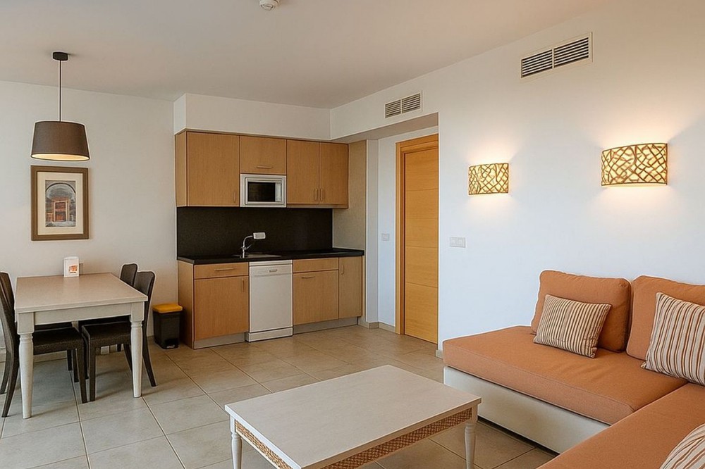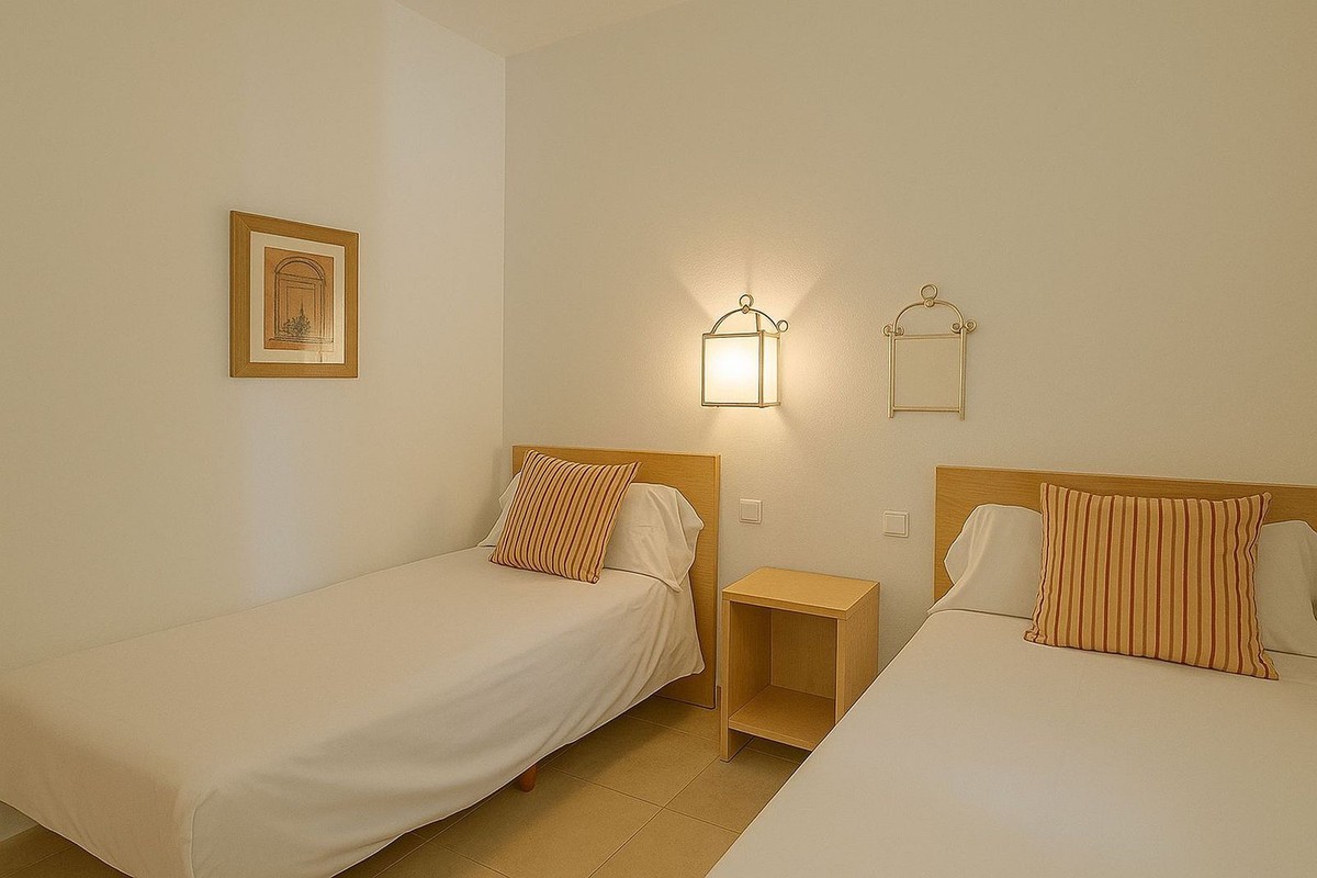 - GREAT INVESTMENT OPPORTUNITY Nice and cosy apartment for sale in Manilva. The apartment has two bedrooms, two bathrooms, equipped kitchen and living room. It is situated in an authentic Andalusian holiday village, with two pools, a restaurant, bar and views to the street of Gibraltar. In the urbanisation you can find a space for children, a space to play football, basketball and handball. It is located 500m from the sea. A rental contract is in place. The complex is gated, providing security, which is an attractive feature for potential tenants and buyers. And the harbour and beach of Sotogrande just 5 minutes away by car. DETAILS TO HIGHLIGHT: This apartment offers a fixed annual return. You can enjoy your apartment for personal use for 2 months per year, and for the rest of the year, it is rented out, allowing you to make a profit without having to worry about anything, as the Holiday village takes care of everything for you.