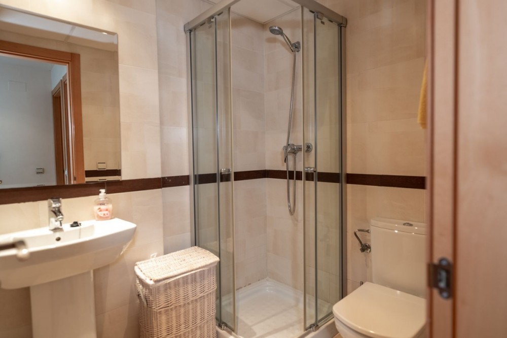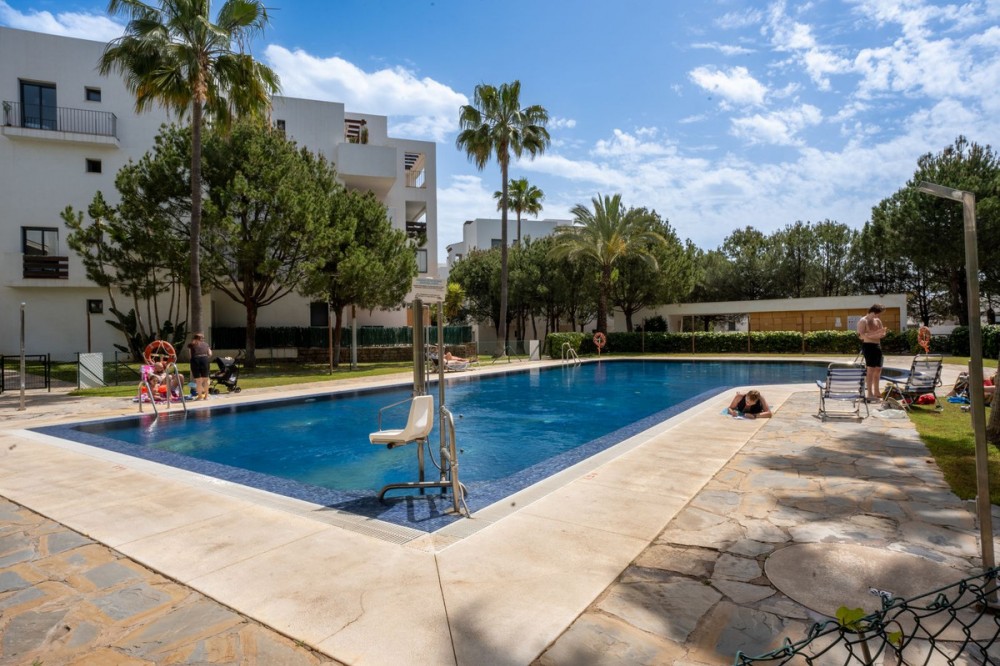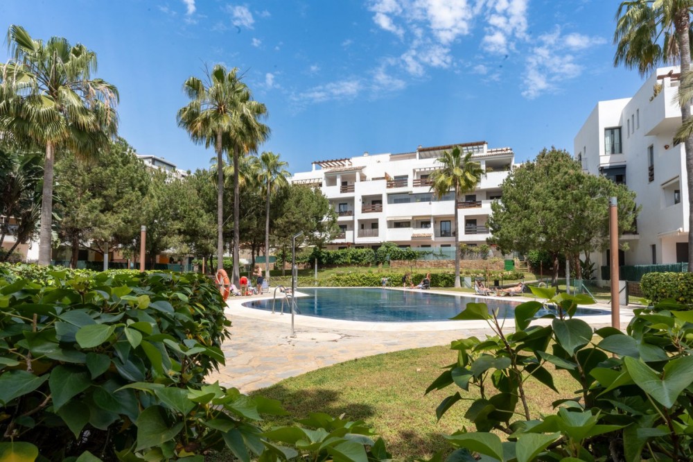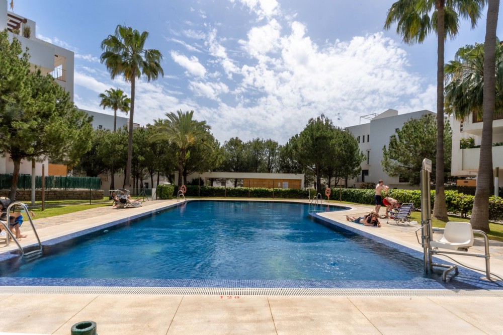- Charming Ground Floor Apartment with Spacious Terrace – La Cala de Mijas Welcome to this delightful and well-planned ground floor apartment of 90 sqm, located in a sought-after gated community in the heart of La Cala de Mijas. With two spacious bedrooms, two modern bathrooms, and a generous 30 sqm terrace, this home offers the perfect blend of comfort, style, and quality of life. You’ll enjoy direct access to the communal pool surrounded by lush greenery – an ideal setting for both relaxation and play for the whole family. The large terrace quickly becomes a favorite spot for sunny breakfasts and warm evenings under the stars. Just a 10-minute walk brings you to the golden beaches of the Mediterranean and the charming village of La Cala de Mijas, known for its authentic Andalusian charm, local markets, restaurants, and cafés. Shops, schools, and all essential services are within walking distance, making this a fantastic option for both holiday living and year-round residence. This is the perfect home for families looking to embrace the sunny Costa del Sol lifestyle – with beach, convenience, and quality living all close at hand.