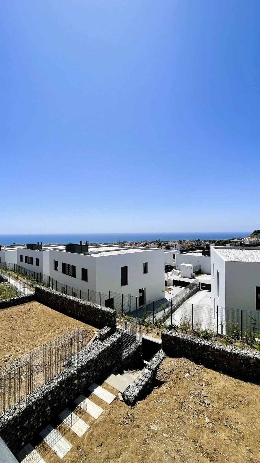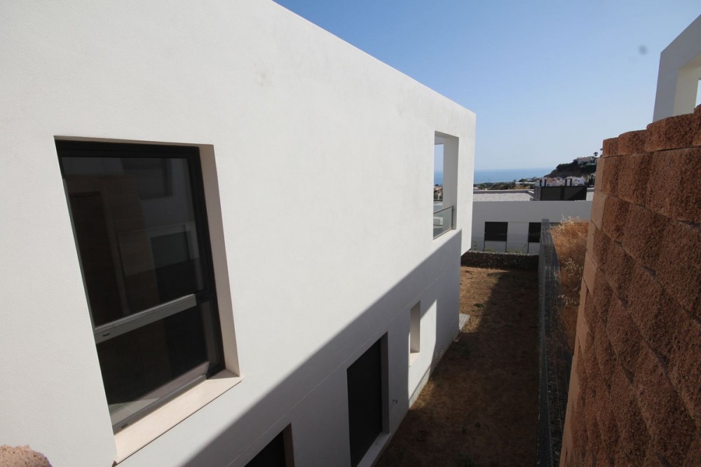 - This brand-new semi-detached villa, completing construction by the end of 2024, is designed for modern living in a prime location near Málaga. Located in Mijas Costa with amazing panoramic views of the sea. Less than a 10 minute drive to the coast, and with 2 golf courses right on the door step. You have Marbella Town and La Cala de Mijas close by. Malaga International airport is also less than 25 minutes away. The main entrance leads to an inviting upper floor featuring an open-concept living-dining room and a fully equipped open-plan kitchen, plus a convenient guest toilet. The highlight? A spacious 8m+ terrace offering stunning panoramic sea and mountain views, perfectly oriented for afternoon sun with its southwest aspect. Downstairs, find ultimate comfort with three bright bedrooms and two well-appointed bathrooms (one en-suite). All bedrooms open directly onto your generous 190 m²+ garden, providing a seamless indoor-outdoor flow. You'll even enjoy glimpses of the sea from the master bedroom. As a resident, you'll benefit from fantastic amenities including a communal pool, a well-equipped gym, and a convenient co-working space. Practicality is covered with two large outdoor parking spaces and a customizable entrance area. Consider this incredible opportunity: The neighboring semi-detached villa is also on the market for €650,000. Secure both at the discounted price of €1,200,000 to create a magnificent, brand-new detached villa with prime sea views and the exciting possibility of adding a private pool!