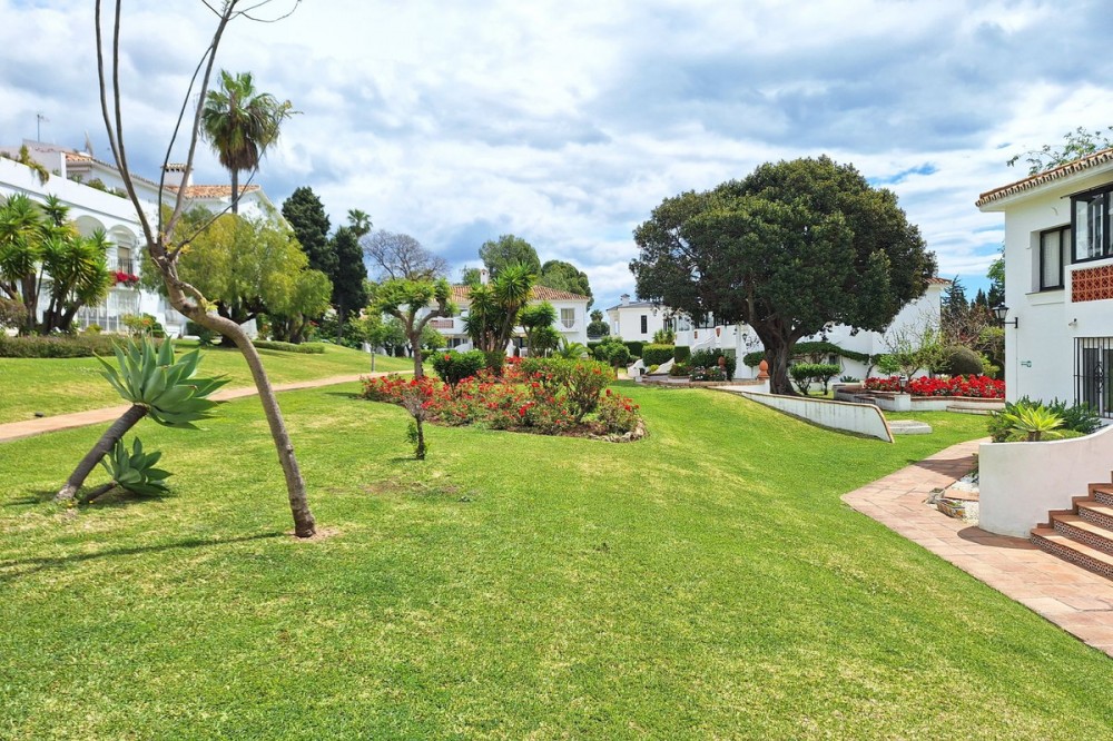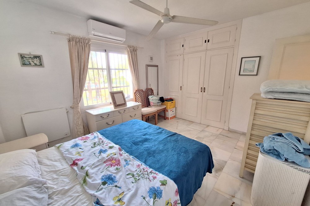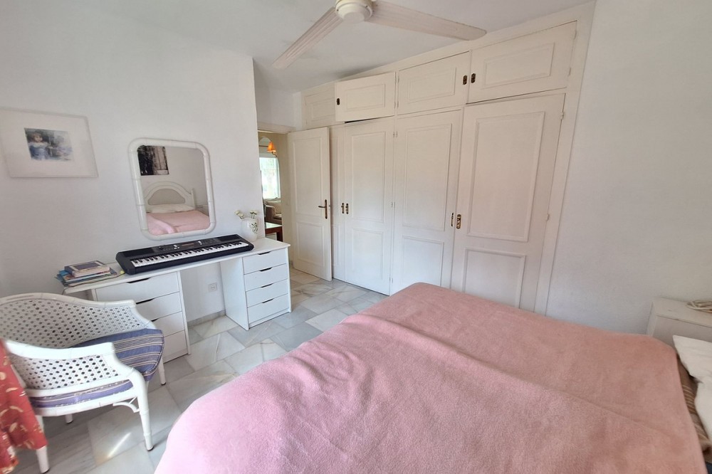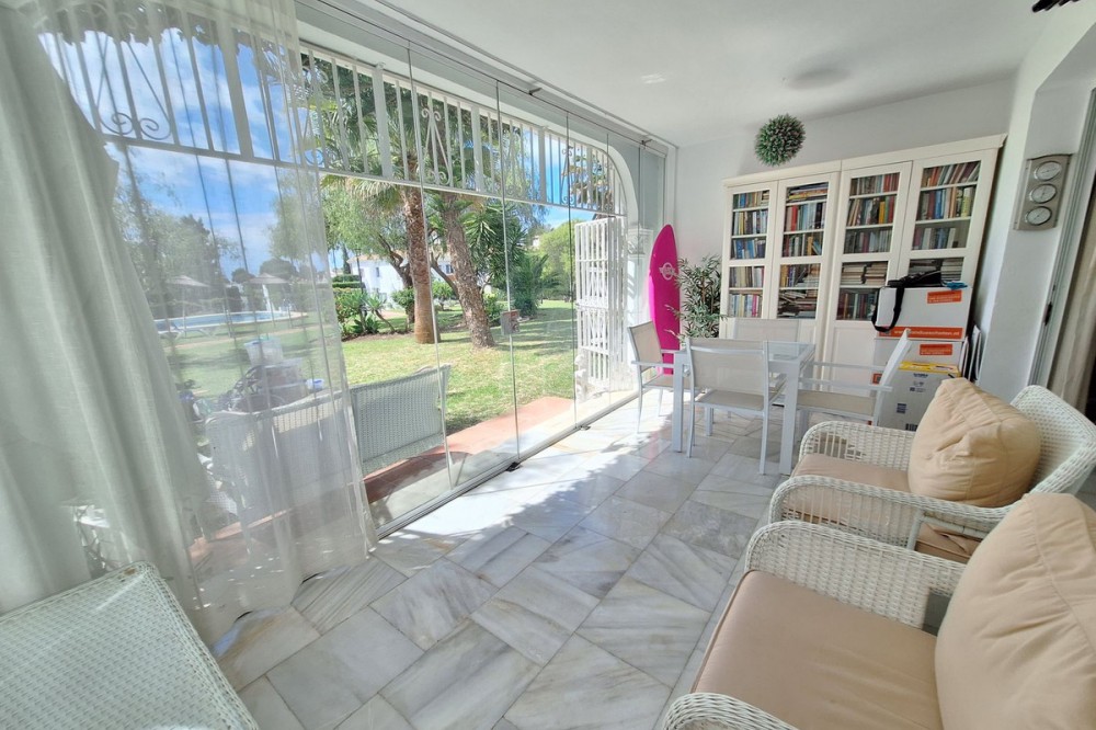 - EL PARAISO MEDIO (ESTEPONA) This delightful south facing 2 bedroom, 2 bathroom Ground Floor Apartment is set within large communal gardens and located in a residential area of El Paraiso (Estepona) As you enter the property you have a hallway entrance. Immediately to your left you have a large bright sunny kitchen, with ample storage and cupboard space. Fully fitted with all appliances. To the right you have a shower & toilet with natural light. Within the main living space, you have a good size family room with working fireplace (air conditioning also), with sliding terrace doors leading to a private terrace (enclosed with bi folding glass curtains). From here you have direct access on the large mature communal gardens and pool area. This is a very quiet and tranquil environment. As you come back through the property you have a bedroom overlooking the pool and gardens, fully fitted wardrobes and air-conditioning (plus ceiling fan). A main family bathroom, with shower and bath, with natural light gives access to both bedrooms. The 2nd bedroom is light and bright, fully fitted wardrobes and air conditioning. This is a lovely family home that, offer all amenities on your doorstep including major banks, 3 supermarkets, chemist, bars & restaurants etc and a mere 10min walk to the beach. Also very well connected with bus transport links. ***THE IBI RATES ALSO INCLUDES THE BASURA (RUBBISH RATES)**** VIDEO ALSO AVAILABLE ON REQUEST