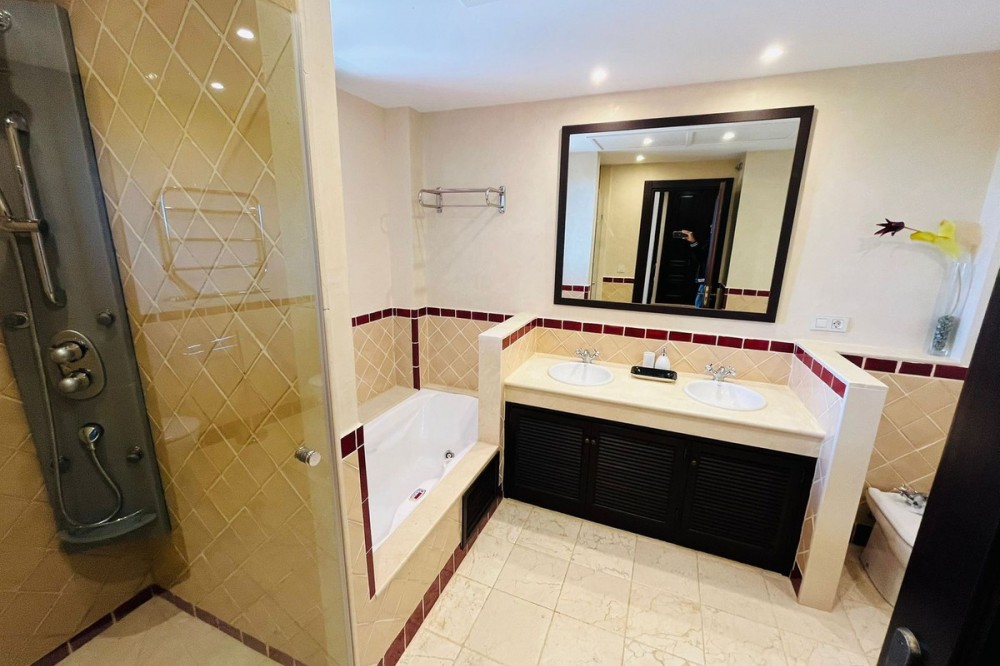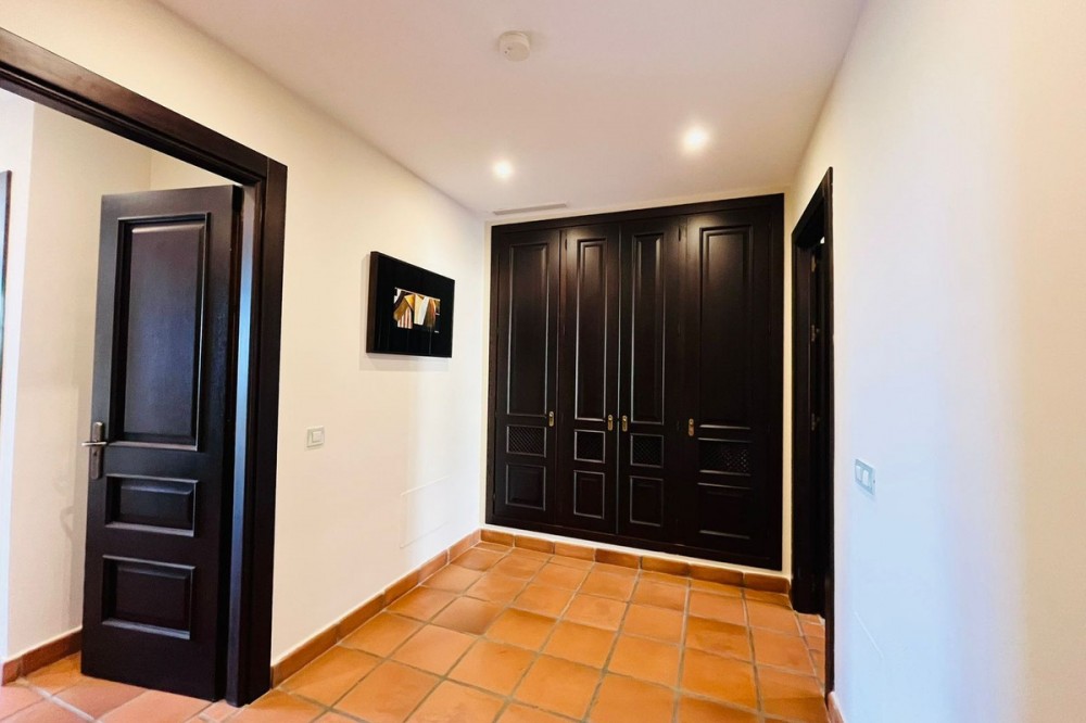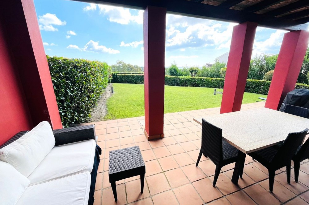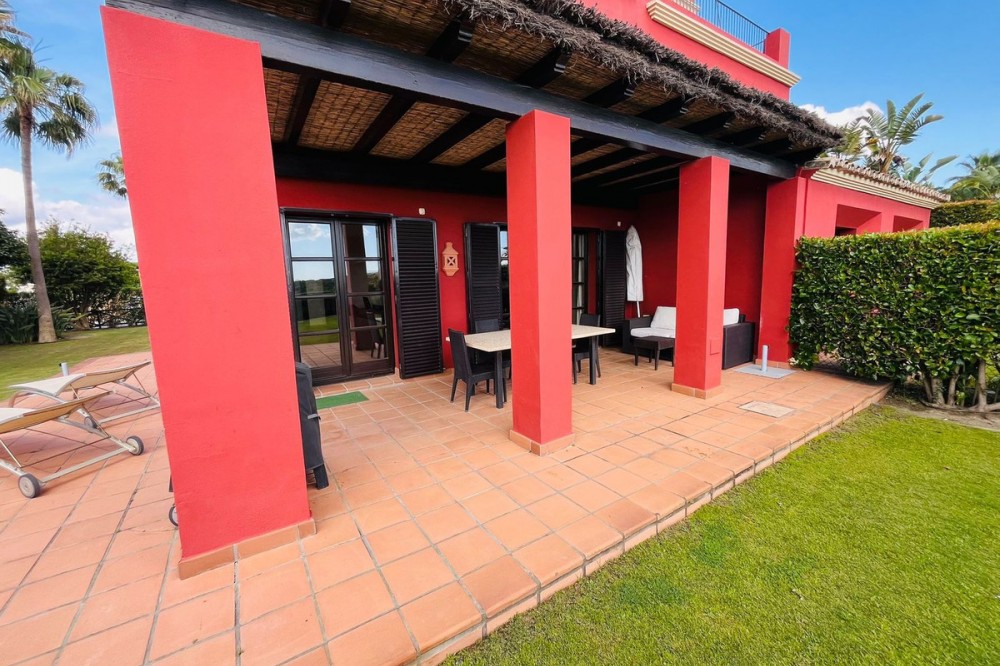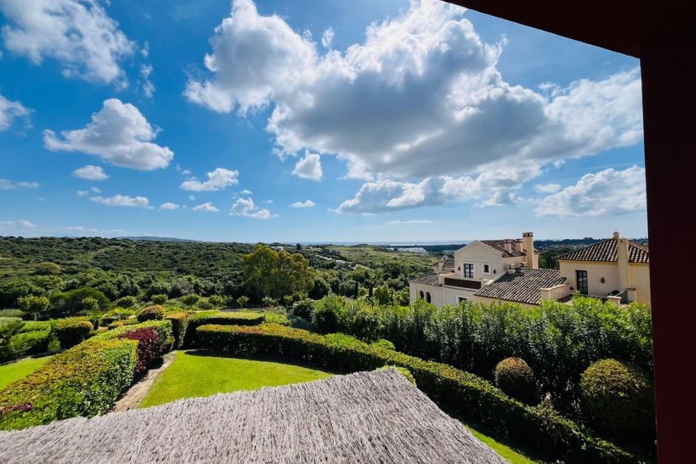 - This large 2 bedroom, 2 1/2 bathroom semi-detached house with sea views in the exclusive Los Cortijos de la Reserva offers something truly unique - almost 200m2 of space with a huge wrap around garden of 334m2. The garden has sun from first thing in the morning to late afternoon. What is more, this property was originally earmarked to be a 4 bed when being developed before coming to fruition as a very large 2 bedroom with a large rectangular living area full of light, leading to a lovely covered terrace, as well as great size fully equipped close kitchen with utility area. Each bedroom is large with an en-suite with wonderful Andalusian charm through the window box, terracotta flooring, panelling on the cabinetry, and shutters. The master has a charming balcony to look out to sea with your morning coffee. This is also a modern home with underfloor heating throughout, hot and cold A/C, high end appliances in the kitchen. The property currently has the Andalusia Tourist license, like its 3 bedroom property sister next door, and runs successfully due to the fantastic location inside La Reserva, walking distance to the Beach Club, Racket Centre, and Golf Club. The community has a pool and a guard hut so is very safe and secure. This property is ideal for a couple downsizing, small family, and those that have dogs, as the garden can be closed so long as a gate allows the communal gardener to enter - the community fees include all garden maintenance. If you did want a pure investment, note the block with both the 2 Bed and 3 Bed can be bought as a company. A great investment to generate rental income in a market that keeps rising as Sotogrande is no longer the Costa del Sol's best kept secret - customers from all over the world are gravitating here. Please note: La Reserva Sotogrande is an exclusive enclave, and with the community costs comes a contribution to "Sotogrande Parks" Macrocommunity, this is an additional €100/month (€520 + €570 First Half / Second Half of year)