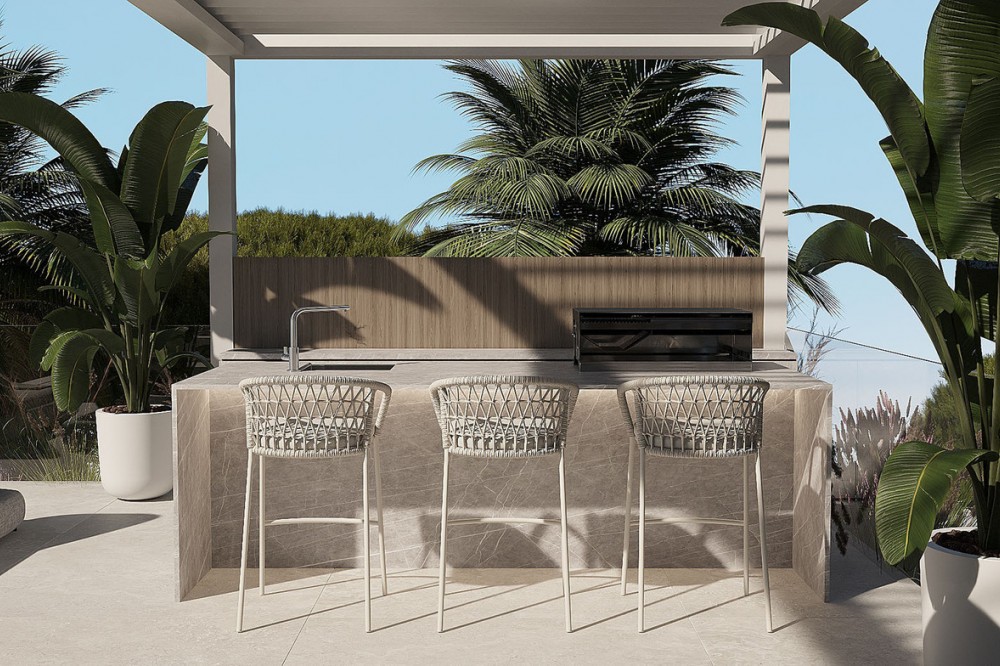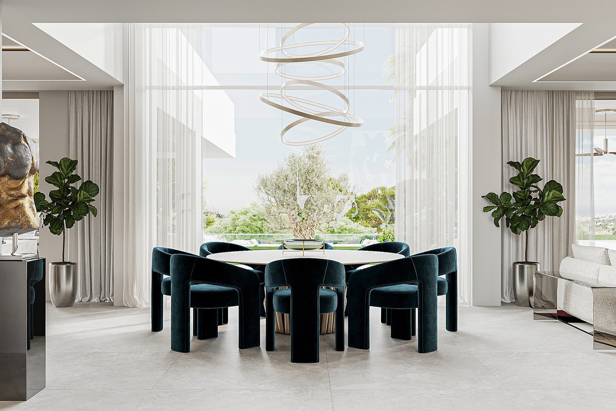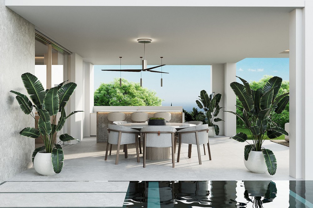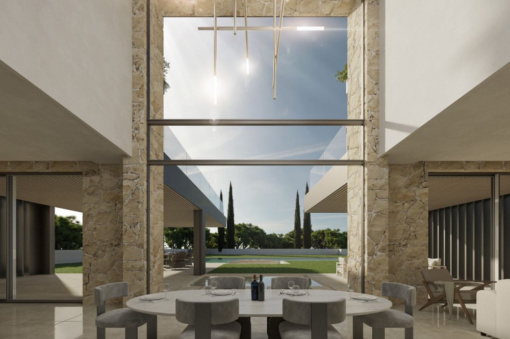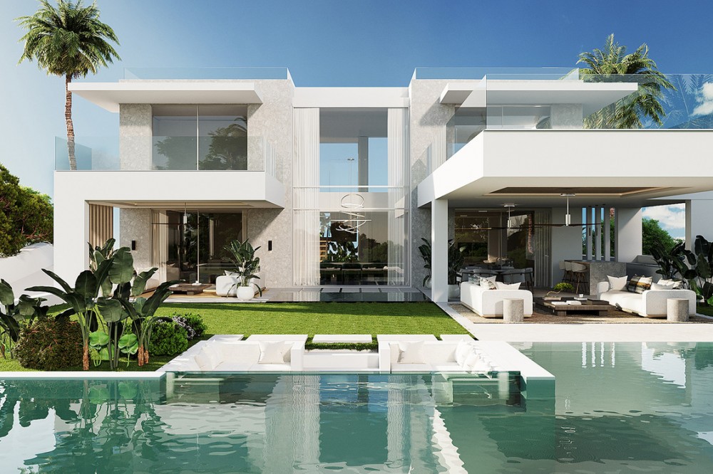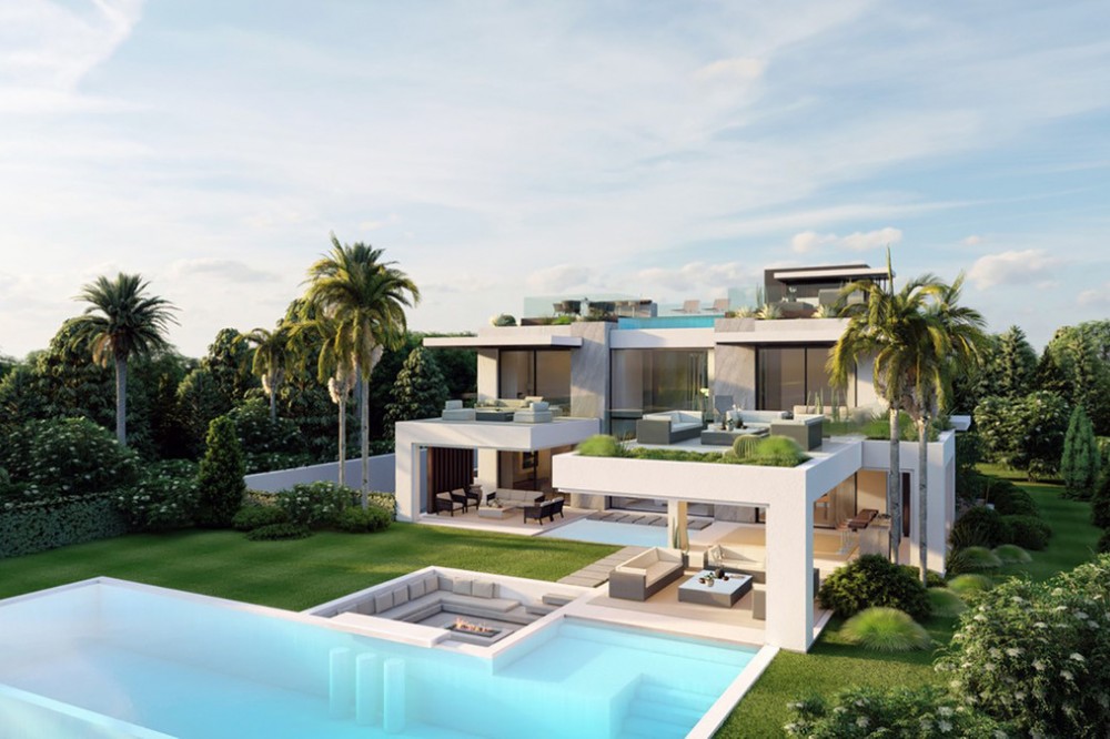 - New Development: Prices from €7,300,000 to €7,300,000. [Bedrooms: 7] [Bathrooms: 8] [Built size: 720m2]. This villa is in a private gated community. This splendid luxury villa project is set on a private plot of 1,550 m², located just a few minutes from Puerto Banús in the exclusive area of Altos de Puente Romano on the Golden Mile. A majestic entrance with a water feature welcomes you into this wonderful property. The large windows bring in abundant natural light throughout the villa and create a seamless connection between the indoors and the surrounding nature. Its wide entrance opens to a spacious and bright living-dining room with a fireplace and a functional luxury kitchen fully equipped with high-end finishes. From the living/dining area, you have access to a large, partly covered terrace featuring various lounge and seating areas, including a firepit area by the pool. The outdoor area also includes a bar and an outdoor kitchen, a large 70 m² heated saltwater pool, and lush gardens. The house offers 7 large bedrooms, all with en-suite bathrooms, including a studio apartment. There are 3 bedrooms in the basement with exterior windows and natural light, one bedroom on the ground floor, and 3 on the first floor. One of these is a very spacious master suite with a dressing room and a large en-suite bathroom with both a bath and a shower. An elevator connects all floors, from the basement to the solarium, where you will find multiple areas for sitting, dining, and sunbathing next to the plunge pool/jacuzzi. You can also enjoy a drink at the rooftop bar, which includes an outdoor kitchenette. There is an additional shower room on this level. Other features include: - Underfloor heating throughout the entire house - Hot/cold air conditioning controlled by an aerothermal system - A gas open fireplace - A large lift for 4 people - A sauna - A gym - A garage large enough for 3 cars Completion is expected by February 2026.