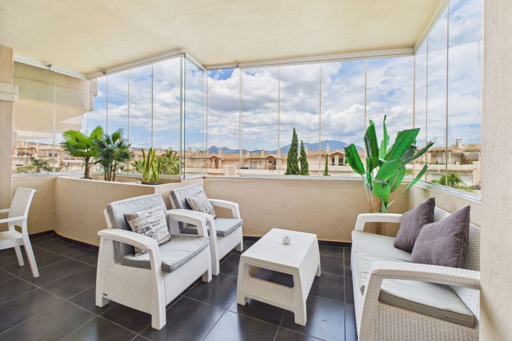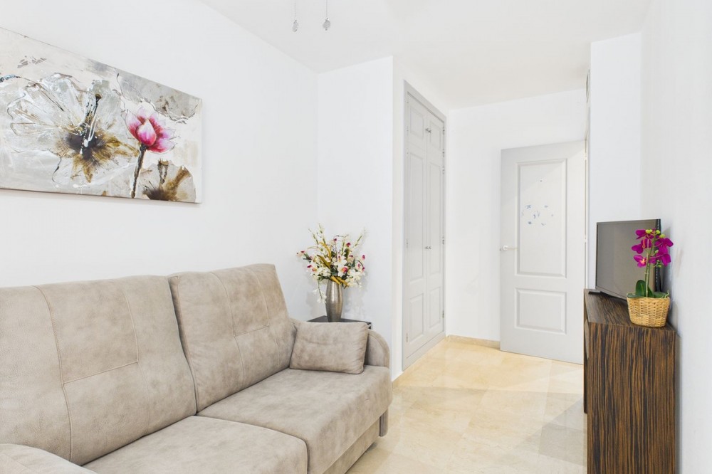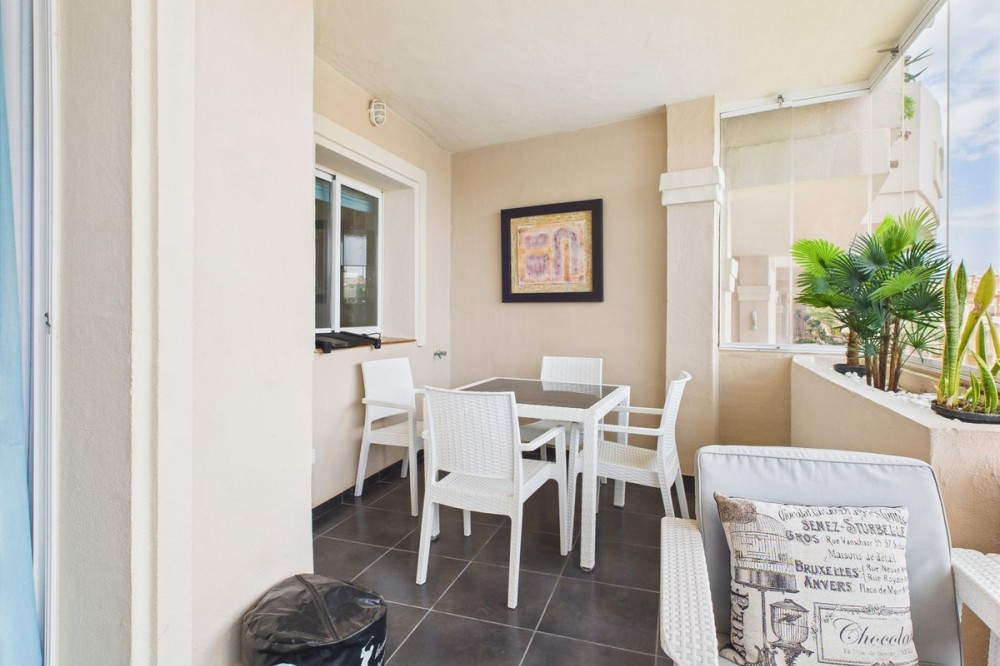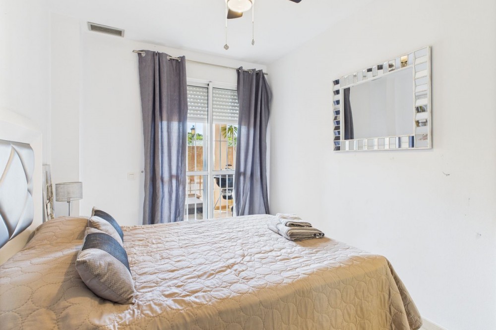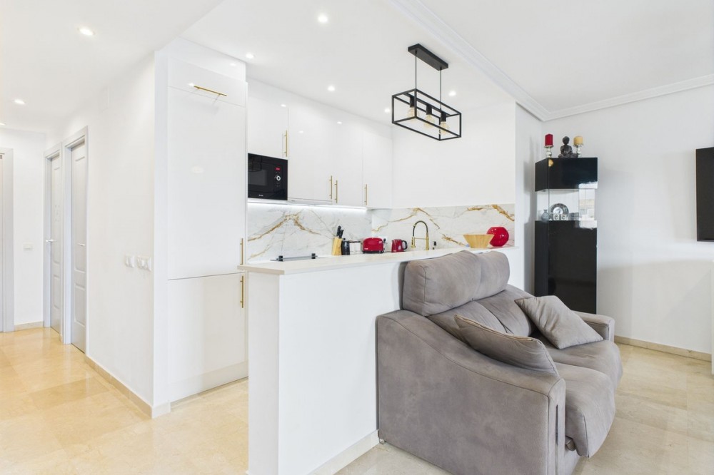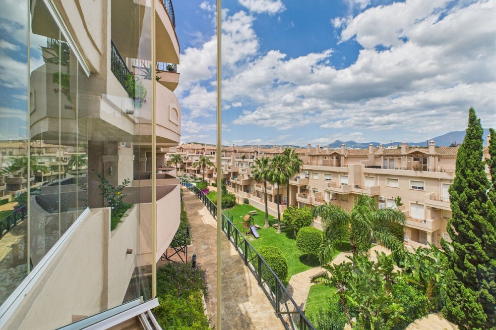 - Immaculate 3-Bedroom Ground Floor Apartment with Pool & Mountain Views Discover refined coastal living in this fully refurbished 3-bedroom, 2-bathroom ground floor apartment, offering a harmonious blend of style, comfort, and prime location. Enjoy breath taking mountain views from two generous terraces, including a main terrace enclosed with glass curtains—perfect for relaxing or entertaining in any season while overlooking the pool and landscaped gardens. The sleek, open-plan kitchen is equipped with top-of-the-line appliances and finished to the highest standard, flowing seamlessly into a bright, contemporary living space. The entire apartment has been thoughtfully renovated and features full air conditioning for year-round comfort. Additional features include secure underground parking, a private storage room, and access to beautifully maintained communal areas. Ideally situated just a 15-minute stroll from the charming Port of Duquesa, with Málaga Airport just 45 minutes away and Gibraltar only 30 minutes by car. Golf lovers will be in paradise with world-renowned courses like Valderrama, Sotogrande, and San Roque all within easy reach. Offered fully furnished—this exceptional property is ready for you to move in and enjoy. Don’t miss this opportunity—schedule your viewing today!