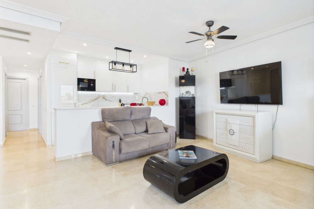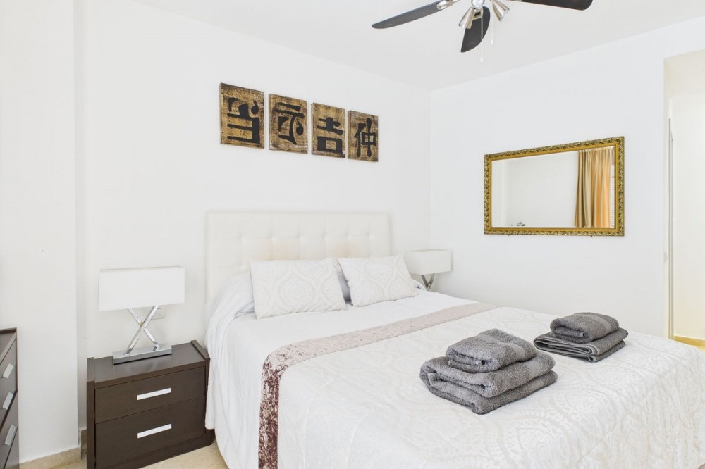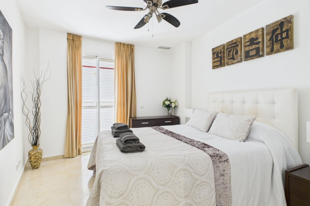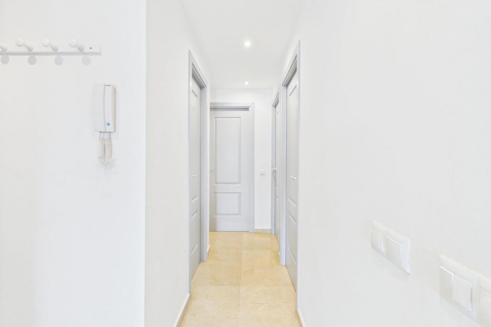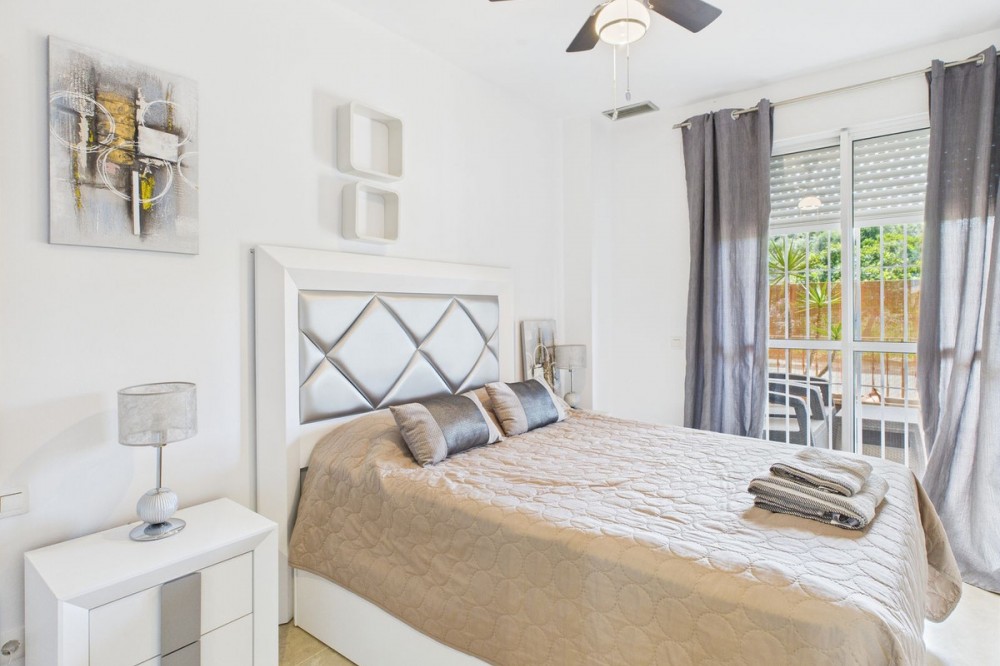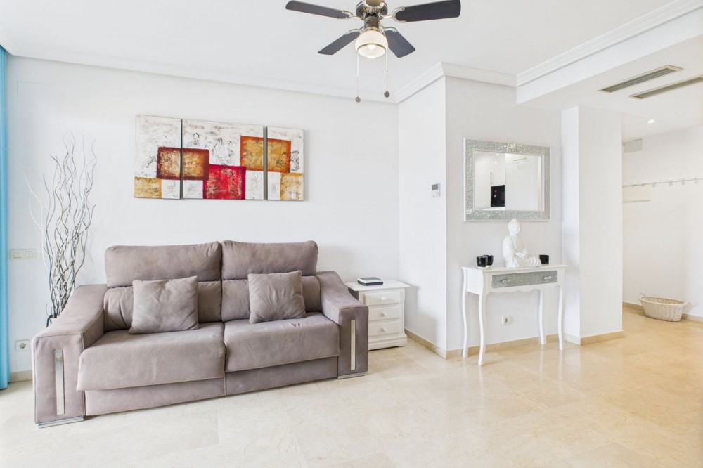 - Immaculate 3-Bedroom Ground Floor Apartment with Pool & Mountain Views Discover refined coastal living in this fully refurbished 3-bedroom, 2-bathroom ground floor apartment, offering a harmonious blend of style, comfort, and prime location. Enjoy breath taking mountain views from two generous terraces, including a main terrace enclosed with glass curtains—perfect for relaxing or entertaining in any season while overlooking the pool and landscaped gardens. The sleek, open-plan kitchen is equipped with top-of-the-line appliances and finished to the highest standard, flowing seamlessly into a bright, contemporary living space. The entire apartment has been thoughtfully renovated and features full air conditioning for year-round comfort. Additional features include secure underground parking, a private storage room, and access to beautifully maintained communal areas. Ideally situated just a 15-minute stroll from the charming Port of Duquesa, with Málaga Airport just 45 minutes away and Gibraltar only 30 minutes by car. Golf lovers will be in paradise with world-renowned courses like Valderrama, Sotogrande, and San Roque all within easy reach. Offered fully furnished—this exceptional property is ready for you to move in and enjoy. Don’t miss this opportunity—schedule your viewing today!