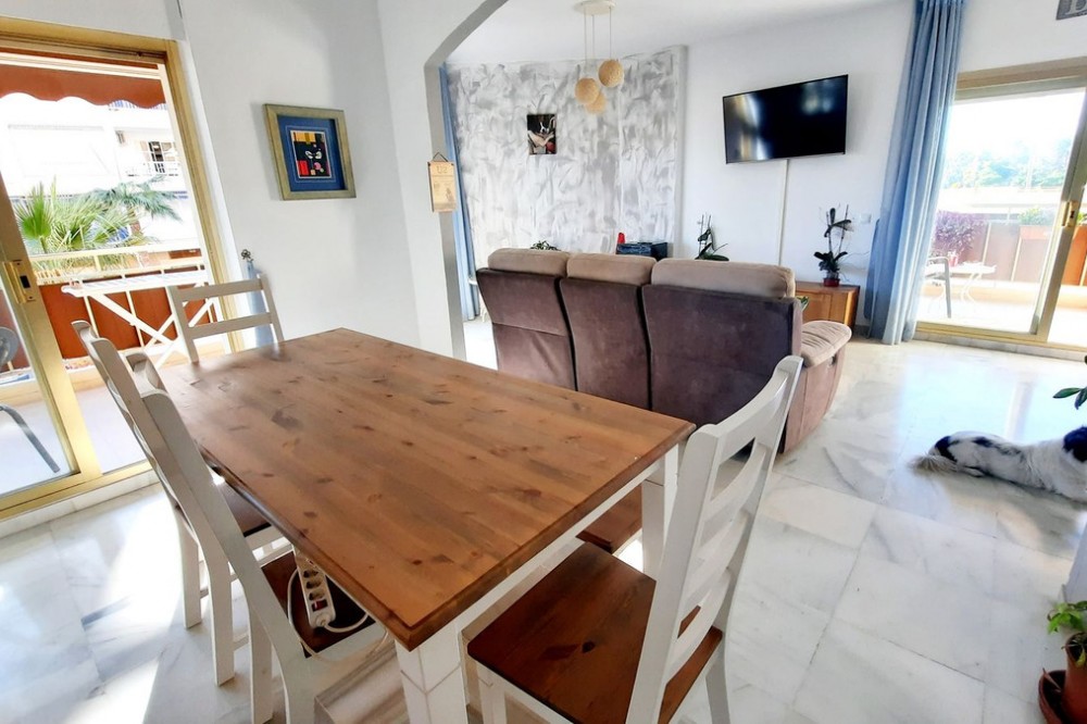 - Bright Corner Apartment with Sea Views – Frontline Beach, Fuengirola Fantastic opportunity to own a bright and sunny corner apartment in a prestigious frontline beach complex in Fuengirola. Enjoy the perfect coastal lifestyle with two terraces, offering lovely sea views and spectacular sunsets. Originally a 3-bedroom property, the apartment has been cleverly redesigned into a spacious 2-bedroom home with a generous lounge and dining area, plus an open-plan kitchen with utility. Both bedrooms, as well as the living spaces, open directly onto the terraces, creating a wonderful indoor-outdoor flow. The master bedroom features a marble en-suite bathroom, while the guest bathroom is also finished in elegant marble. With its unbeatable location right on the seafront, excellent orientation, and stylish layout, this property is ideal as a holiday retreat, investment for rentals, or a comfortable permanent residence. Key Features: Prime frontline beach complex in Fuengirola Spacious corner apartment | 2 Bedrooms | 2 Bathrooms | 96 m² + 20 m² terraces Two west-facing terraces, one with sea views All rooms with terrace access Master bedroom with marble en-suite + guest marble bathroom Open-plan kitchen with utility Communal gardens, lift, and security entry phone Close to shops, port, schools, and marina A rare find combining space, sea views, and a prime beachfront setting. Middle Floor Apartment, Fuengirola, Costa del Sol. 2 Bedrooms, 2 Bathrooms, Built 96 m², Terrace 20 m². Setting : Beachfront, Town, Close To Port, Close To Shops, Close To Schools, Close To Marina, Front Line Beach Complex. Orientation : West. Condition : Excellent. Climate Control : Pre Installed A/C. Views : Sea. Features : Lift, Fitted Wardrobes, Near Transport, Private Terrace, Ensuite Bathroom, Access for people with reduced mobility, Marble Flooring, Day Care. Furniture : Part Furnished. Kitchen : Fully Fitted. Garden : Communal. Security : Entry Phone. Utilities : Electricity. Category : Holiday Homes, Investment, Resale.