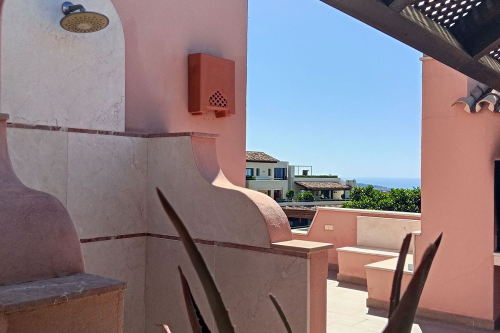 - Semi-Detached House for Sale in Hill Club, Sierra Blanca, Marbella Discover this stunning semi-detached house in the exclusive area of Hill Club, in Sierra Blanca, Marbella. With a constructed area of 260 m² and a 200 m² garden, this home is ideal for enjoying the Mediterranean climate. The property features 3 spacious bedrooms, one en-suite with a dressing room, and 2 bathrooms plus a guest toilet. The fully equipped kitchen offers direct access to the laundry room and garden, making everyday life easier. The inviting living and dining area opens onto a 60 m² terrace, perfect for relaxing or entertaining friends and family. The rooftop solarium is a true luxury, with a barbecue area and kitchen, where you can enjoy stunning sea views while enjoying your meals al fresco. The house also includes additional features such as air conditioning, marble sinks, and built-in wardrobes, ensuring comfort and style. Located in a gated community with 24-hour security, this property not only offers tranquility but also a private parking space. With its south, east, and west exposure, you'll enjoy natural light throughout the day. This is a unique opportunity in one of the most coveted areas of the Costa del Sol. ---------------------------------------------------------------------------------------------------------------------------------------------------------------------------------------------------------------------------------- Townhouse, Marbella, Costa del Sol. 3 Bedrooms, 3 Bathrooms, Built 261 m², Garden/Plot 200 m². Setting : Town, Close To Shops, Close To Sea, Close To Town, Close To Schools, Close To Forest, Urbanisation. Orientation : East, South, West. Pool : Communal. Climate Control : Air Conditioning, Hot A/C, Cold A/C, Fireplace. Views : Sea, Mountain, Panoramic, Forest. Features : Fitted Wardrobes, Near Transport, Private Terrace, Solarium, Utility Room, Ensuite Bathroom, Marble Flooring, Barbeque, Double Glazing. Furniture : Not Furnished. Kitchen : Fully Fitted. Garden : Communal. Security : Gated Complex, Entry Phone, Alarm System, 24 Hour Security. Parking : Communal, Private. Utilities : Electricity, Drinkable Water. Category : Bargain, Investment, Resale.
