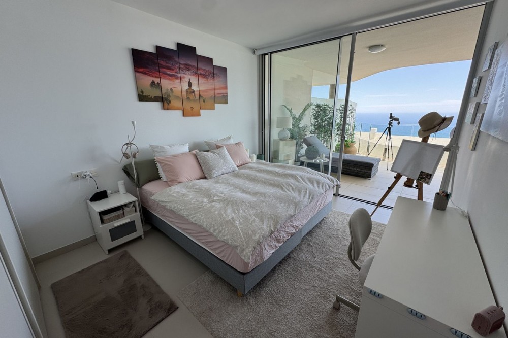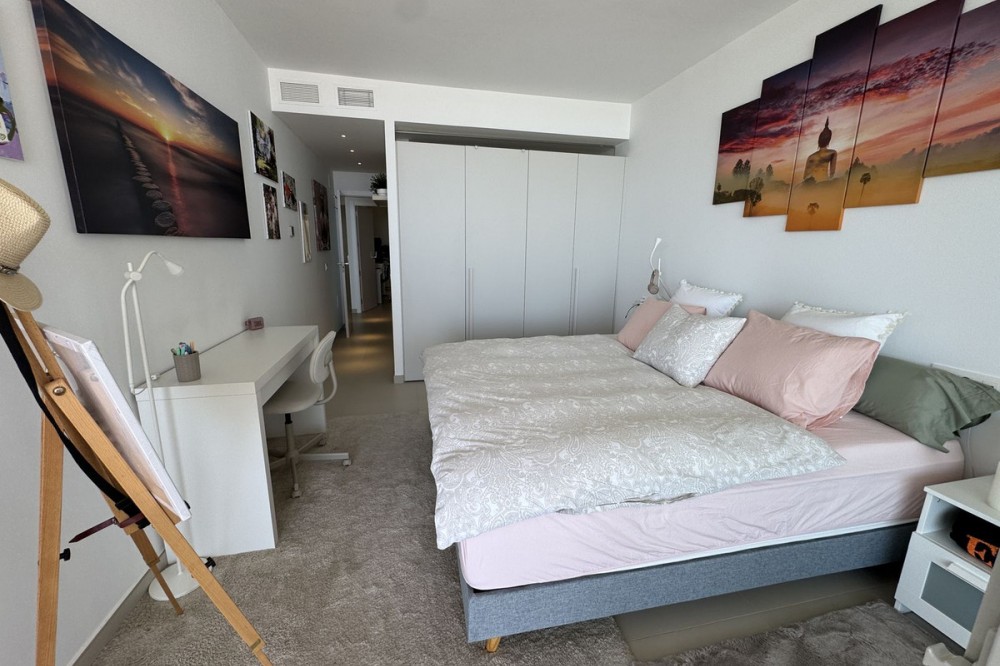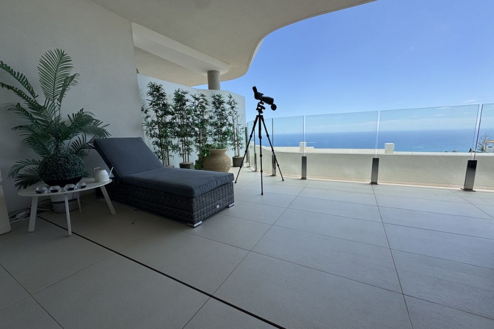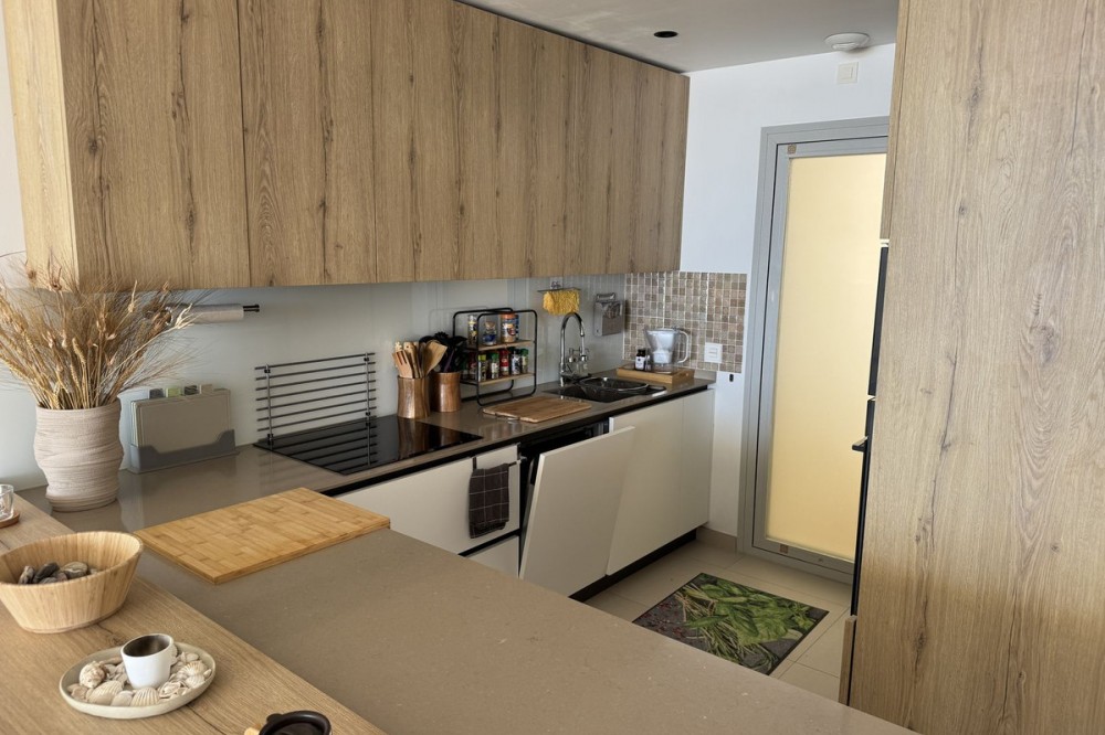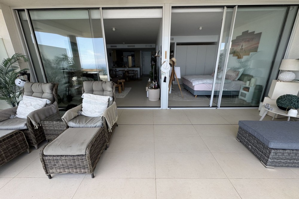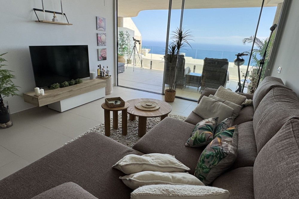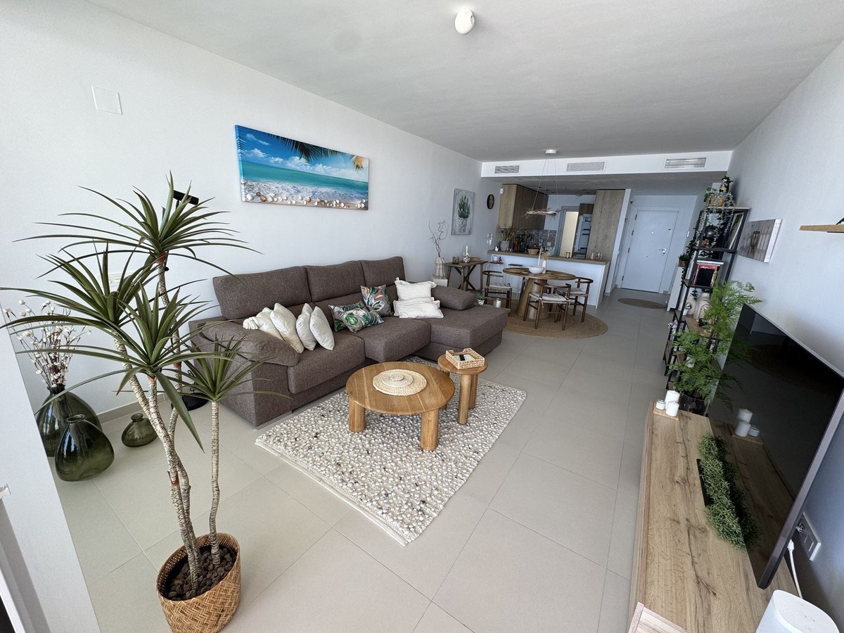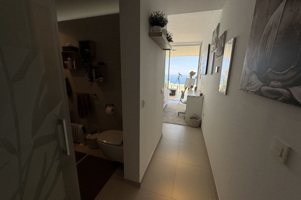 - Modern 2-bed, 2-bath apartment with 2 garage places and storage. The price is including furniture! What makes the apartment special is a private terrace with stunning panoramic sea views, perfect for relaxing or entertaining. There is a very easy access to the Aldi shop and close park, which is great for dog lovers. Located in the sought-after Stupa Hills complex . The complex is situated in near the largest Buddhist temple in Western Europe. This residence has excellent amenities, including tropical gardens, sun terraces, two outdoor pools, one indoor pool, a fitness center, and a spa with a sauna room. The outdoor infinity pool offers exceptional views overlooking the Mediterranean. The high-quality gym with sea views is equipped with top-of-the-line equipment. The luxurious spa and wellness center are ideal for relaxation and enjoyment. - the property features a bright and spacious living/dining area - the open and modern kitchen is fully equipped with high-standard appliances - a small, covered laundry area with a washing machine and dryer is connected to the kitchen. - the apartment includes 2 bedrooms with fitted wardrobes, windows have automatic blinds. This is a perfect apartment for permanent residence in an ideal community or as a holiday home for spending memorable vacations