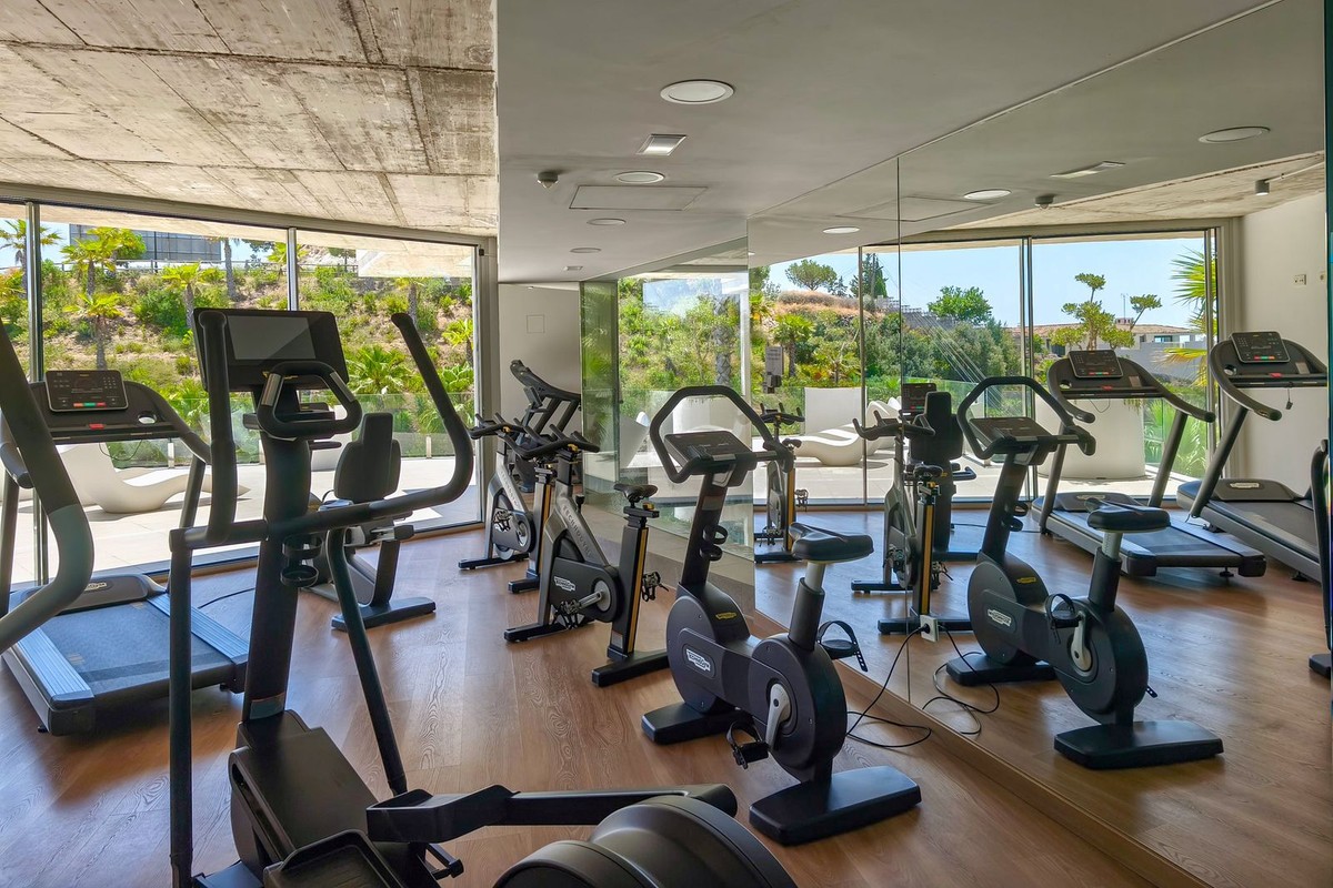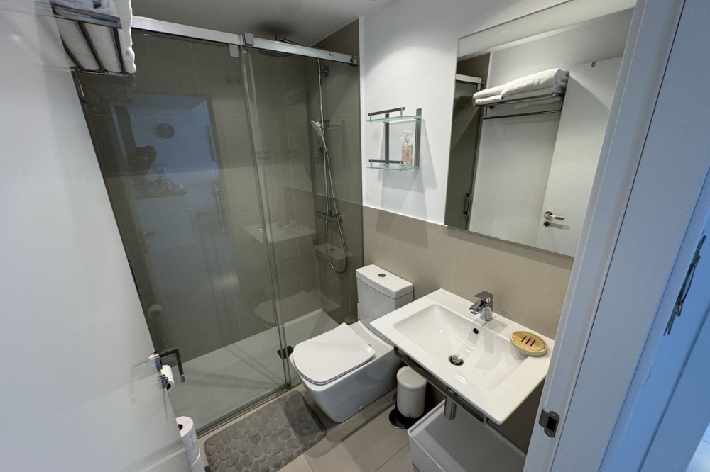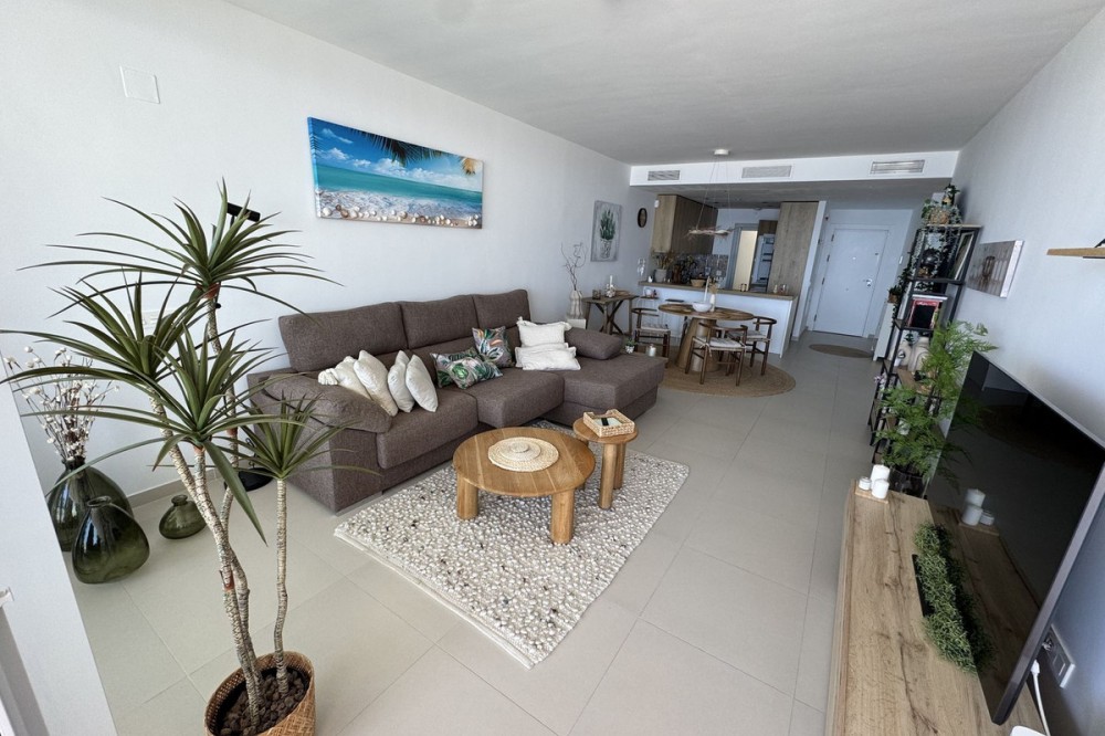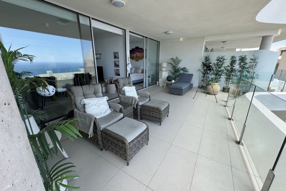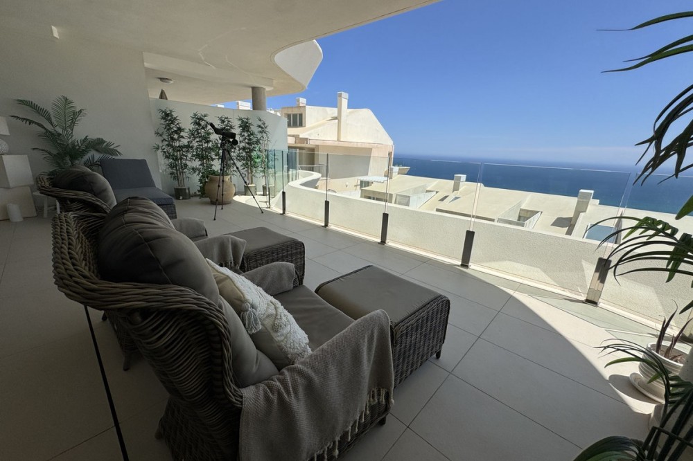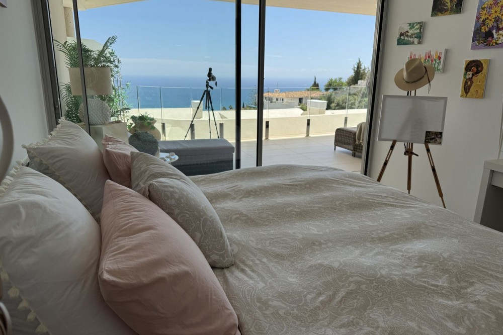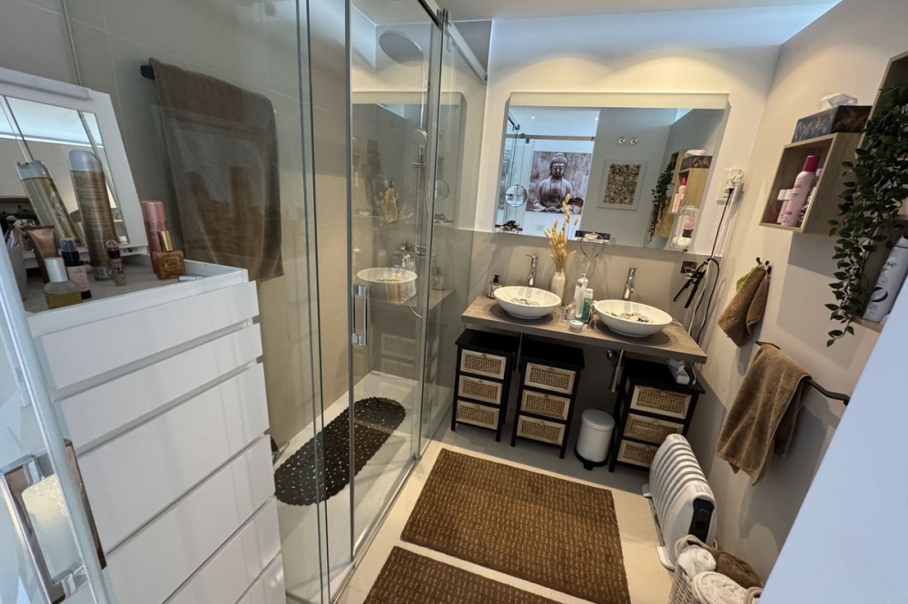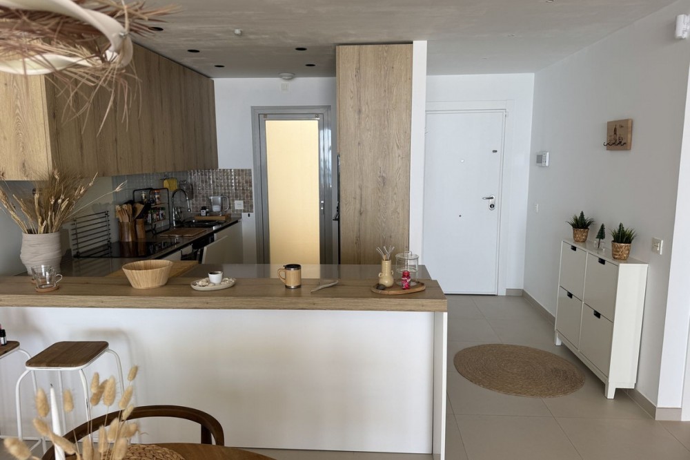 - Modern 2-bed, 2-bath apartment with 2 garage places and storage. The price is including furniture! What makes the apartment special is a private terrace with stunning panoramic sea views, perfect for relaxing or entertaining. There is a very easy access to the Aldi shop and close park, which is great for dog lovers. Located in the sought-after Stupa Hills complex . The complex is situated in near the largest Buddhist temple in Western Europe. This residence has excellent amenities, including tropical gardens, sun terraces, two outdoor pools, one indoor pool, a fitness center, and a spa with a sauna room. The outdoor infinity pool offers exceptional views overlooking the Mediterranean. The high-quality gym with sea views is equipped with top-of-the-line equipment. The luxurious spa and wellness center are ideal for relaxation and enjoyment. - the property features a bright and spacious living/dining area - the open and modern kitchen is fully equipped with high-standard appliances - a small, covered laundry area with a washing machine and dryer is connected to the kitchen. - the apartment includes 2 bedrooms with fitted wardrobes, windows have automatic blinds. This is a perfect apartment for permanent residence in an ideal community or as a holiday home for spending memorable vacations