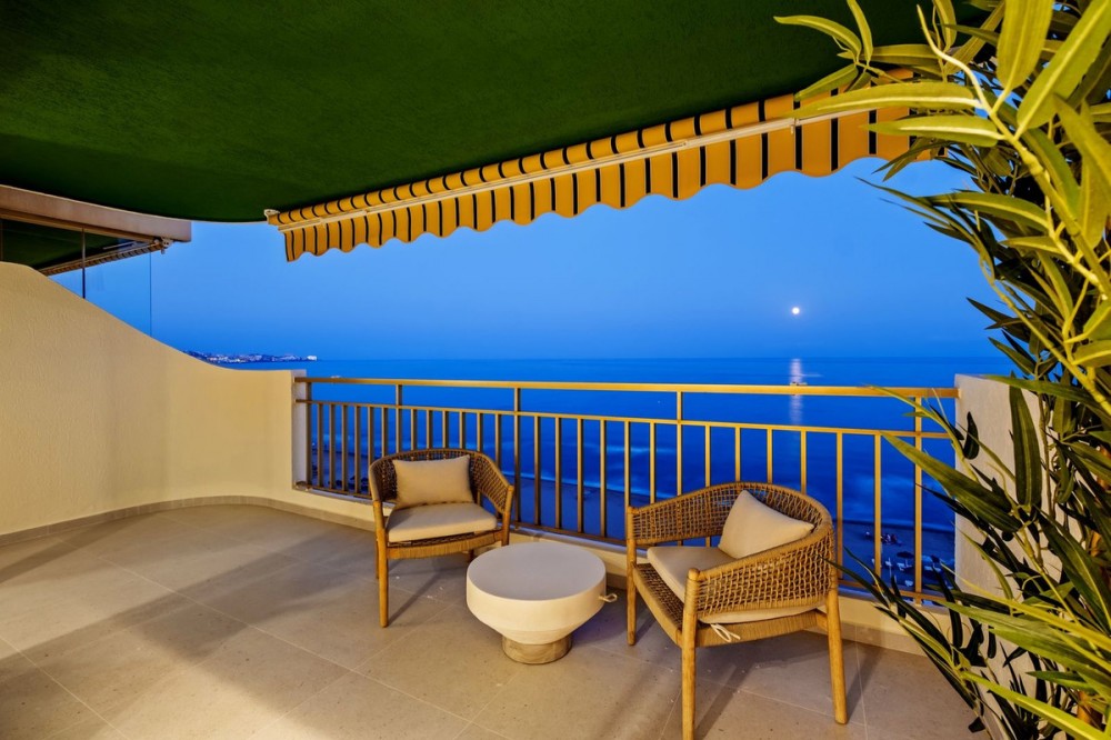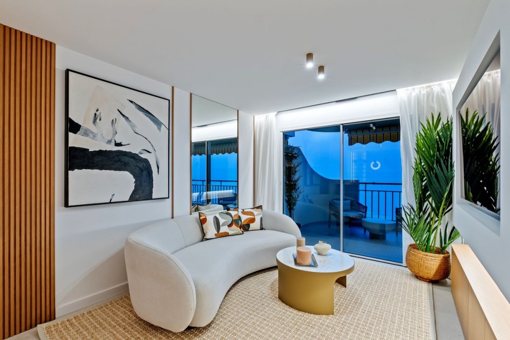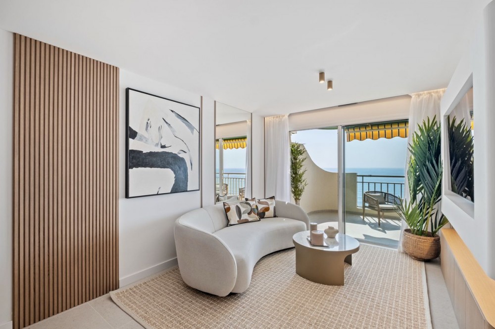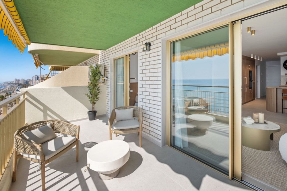 - A Coastal Masterpiece in La Concha – 2 Bed, 2 Bath Renovated Luxury on Fuengirola’s First Line Welcome to one of Fuengirola’s most exceptional frontline apartments, a meticulously renovated 2-bedroom, 2-bathroom home set on the eighth floor of the iconic La Concha building — a name synonymous with elegance and beachfront prestige. With 89 square meters of artfully designed interior space, this home is the result of a bespoke renovation by Premium Design, setting a new benchmark for craftsmanship, flow, and style in Fuengirola’s property scene. Where Sophistication Meets Sea Views From the moment you enter, the panoramic Mediterranean views take center stage — an endless horizon framed by floor-to-ceiling glass. The open-plan layout maximizes light and space while offering a seamless connection between indoor comfort and outdoor serenity. Every detail has been considered and executed with precision: Two spacious bedrooms and two luxuriously appointed bathrooms, both featuring rain showers, floating vanities, and suspended toilets A fully customized designer kitchen with rounded-edge carpentry, indirect LED lighting, and a built-in open wine display — merging natural textures with contemporary function Statement woodwork and artisanal finishes that bring character and warmth to the modern aesthetic Integrated ambient lighting throughout to create cozy sophistication both day and night A spacious terrace offering front-row views of the sea and Fuengirola’s vibrant Paseo Marítimo Designed for Lifestyle, Located for Living Set in the heart of Fuengirola’s beachfront, this apartment offers walking-distance access to the marina, top restaurants, charming cafes, shopping, and transport hubs. Whether as a primary residence, exclusive second home, or investment, this is a rare turnkey opportunity that offers both lifestyle and long-term value. A New Standard of Coastal Living This is more than a renovated apartment — it’s a reimagining of space, comfort, and design on Fuengirola’s most coveted coastline. With unmatched attention to detail, panoramic views, and curated luxury throughout, this property is one of the finest examples of what modern Mediterranean living can be. Be first in line. Homes like this don’t come around twice.