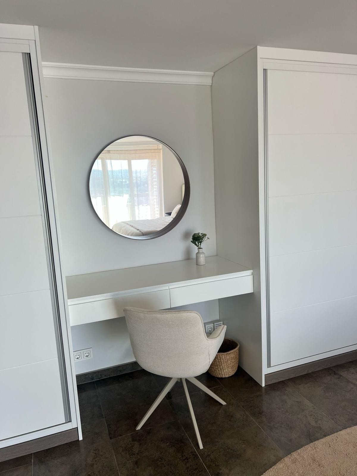 - Experience the rare sense of space and openness in this beautifully renovated apartment, created by merging two separate units into one generous and well-designed home. This property offers panoramic views of the Mediterranean Sea and the surrounding mountains, all within 15 minutes’ walking distance to the beach and local amenities. Boasting four spacious bedrooms, two elegant bathrooms and one guest toilet, this apartment is ideal for families or anyone seeking both comfort and room to breathe. At the heart of the home is a large open-plan living and dining area seamlessly connected to a modern, fully equipped kitchen. The master bedroom is exceptionally spacious and features its own en-suite bathroom, creating a private retreat within the home. Two of the bedrooms, as well as the living area, offer direct access to the expansive terrace, where you can enjoy breathtaking views that can also be admired from inside the apartment through large windows that flood the space with natural light. The property is situated in a quiet residential complex with a communal swimming pool and shared parking facilities. This is a home where space, style, and location come together in perfect harmony.