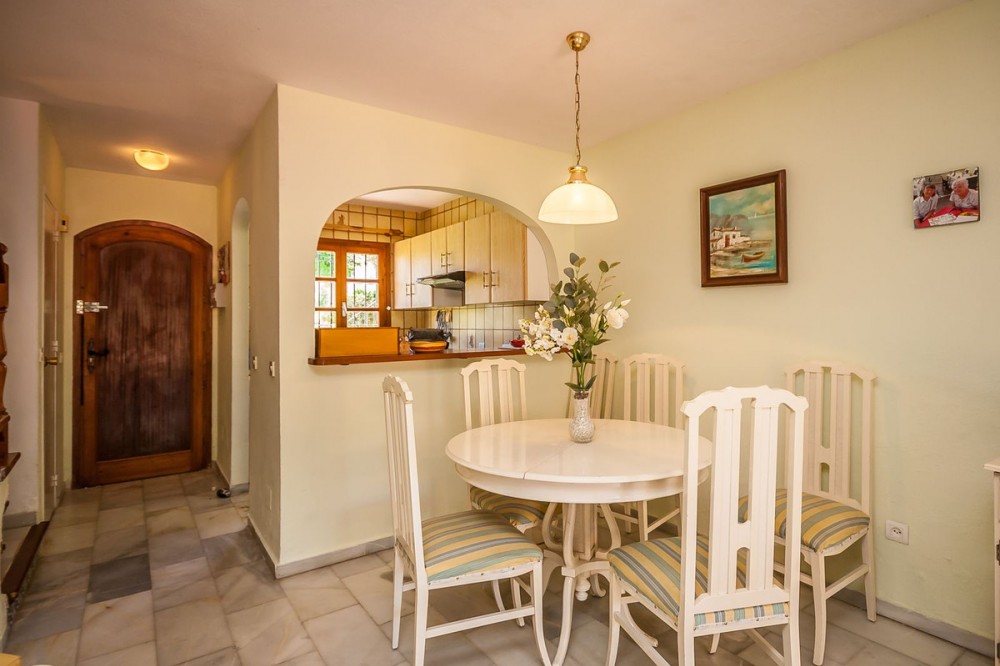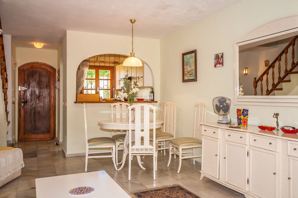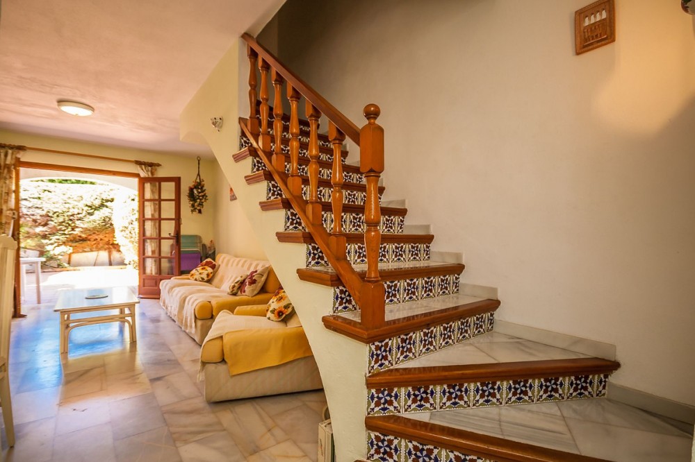 - Lovely townhouse full of character in the heart of Elviria. Located just a 5-minute walk from the Elviria shopping center and a mere 10 minutes to the beach, this gated complex is perfect for families and golf enthusiasts alike. This charming 3-bedroom, 1-bathroom property spans 87 m² and offers a perfect blend of comfort and convenience. Enjoy a south-west orientation that fills your home with natural light, and take advantage of the communal pool and beautifully landscaped gardens. The ground floor features a fitted kitchen, a spacious lounge/dining area, and a sunny terrace ideal for relaxation. Upstairs, you’ll find three well-appointed bedrooms and a bathroom. Don’t miss the opportunity to make this delightful townhouse your new home!
