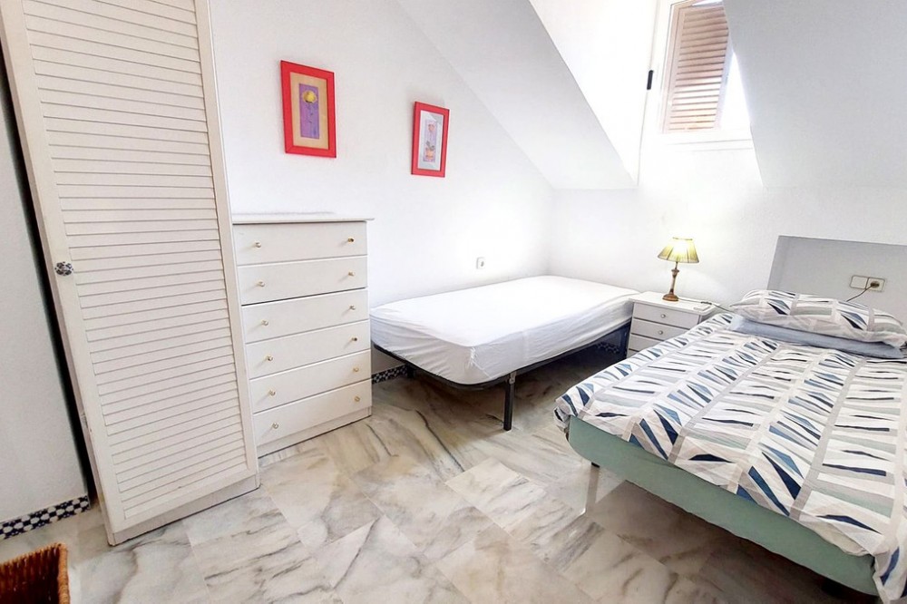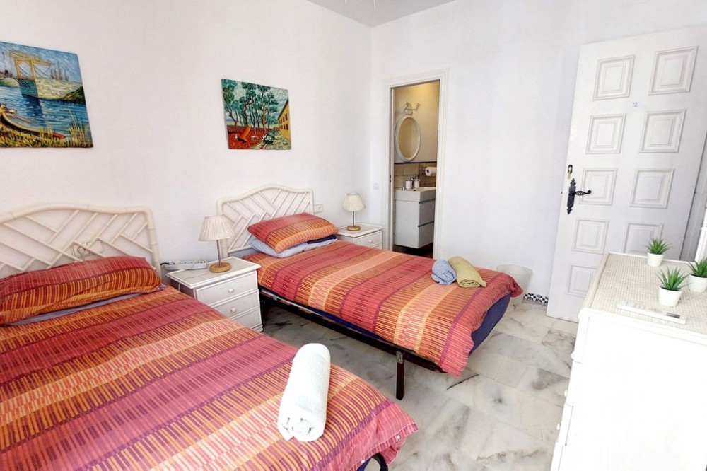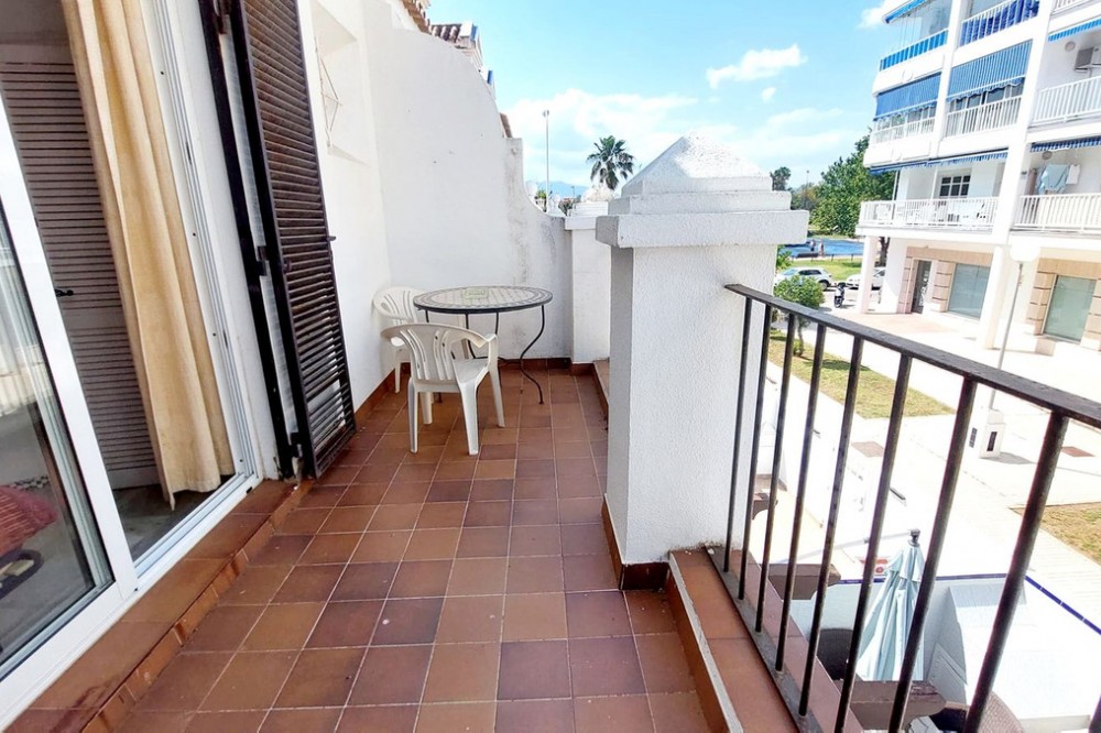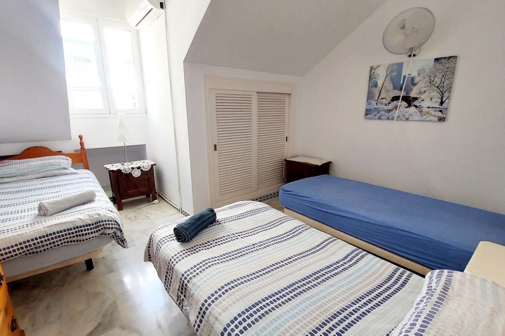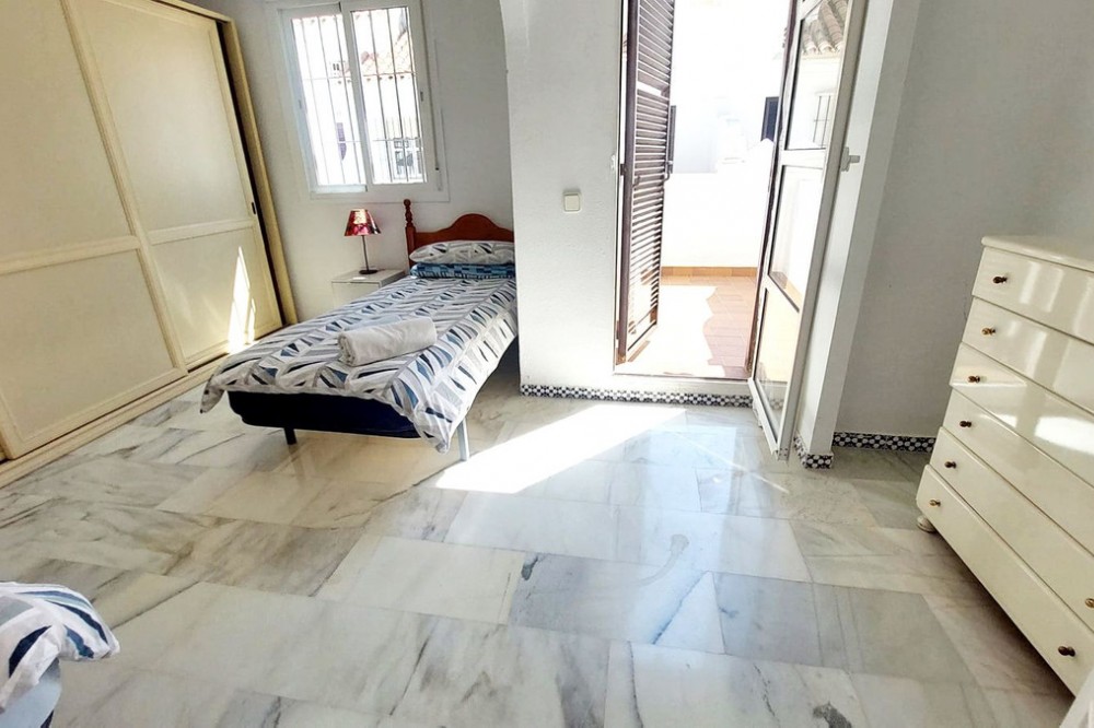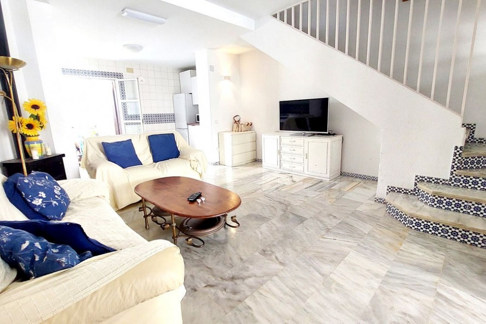 - Townhouse, Fuengirola, Costa del Sol. 4 Bedrooms, 2 Bathrooms, Built 135 m², Terrace 40 m². Setting : Town, Close To Shops. Orientation : East. Condition : Good. Pool : Communal. Climate Control : Air Conditioning. Views : Sea. Features : Fitted Wardrobes, Near Transport, Private Terrace, Marble Flooring, Double Glazing. Furniture : Part Furnished. Kitchen : Fully Fitted. Garden : Communal. Security : Gated Complex. Category : Investment, Resale.