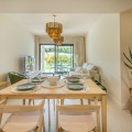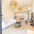 - Stylish Ground Floor Apartment with Spacious Garden in Aranya Estepona! Discover this beautiful 2-bedroom ground floor apartment in the new development Aranya Estepona, ideally located on the sought-after west side of Estepona. This modern and energy-efficient home offers both comfort and style, with a standout feature: a private garden of 132 m² – perfect for those who value outdoor living, sun, and privacy. The property features an open-plan living and dining area with abundant natural light, a fully equipped kitchen, two comfortable bedrooms, and two bathrooms (including one en-suite). Large sliding doors seamlessly connect the interior living space to the generous terrace and landscaped garden. Key features: •2 bedrooms, 2 bathrooms •Southwest orientation •132 m² private garden with direct access to communal areas •Fully equipped kitchen and air conditioning •Energy rating A •Includes parking space and storage room •Communal swimming pool, gym, and co-working area •Fully furnished Whether you’re looking for a permanent residence, a holiday home, or a solid rental investment, this apartment offers it all—just minutes from the beach and the charming center of Estepona.