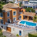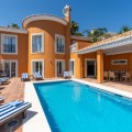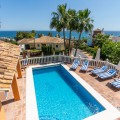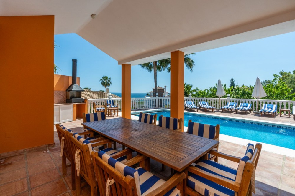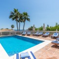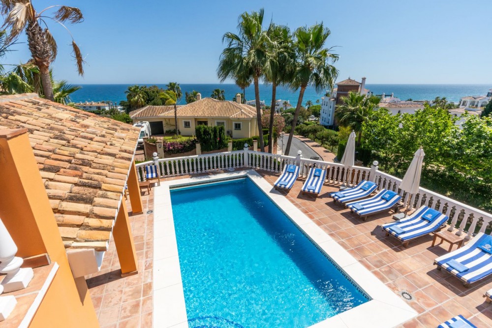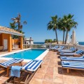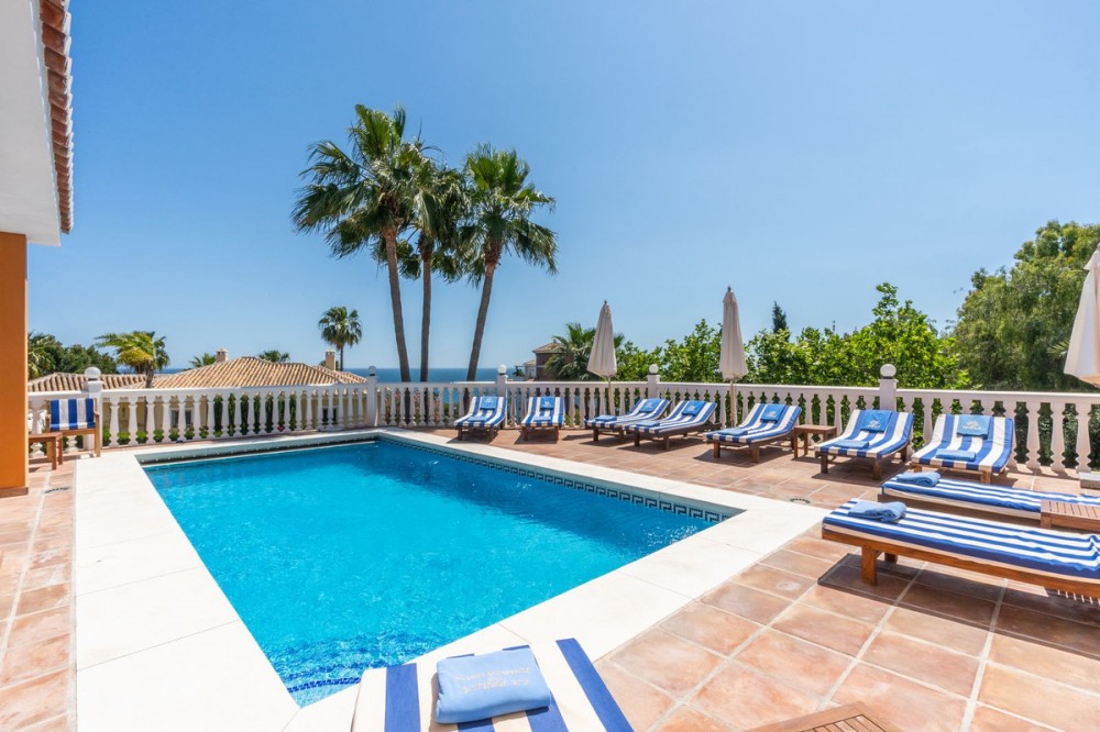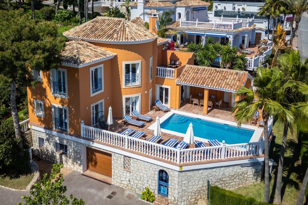 - We present this extraordinary 5-bedroom, 5-bathroom villa, making its debut on the market. Nestled within an elite gated community of just nine residences, this luxurious home offers the perfect balance of seclusion, elegance, and accessibility. Enter through grand double electric gates, and follow a private driveway shared with only one neighboring villa, leading directly to a spacious garage—your entry point to a lifestyle of refined comfort. Completed in 2018, this three-story villa—all levels above ground—boasts traditional architecture and style throughout. The main level features a generous open-plan layout, seamlessly connecting the living room, dining space, and modern kitchen. These areas extend effortlessly to a heated swimming pool, equipped with a retractable cover, and a choice of sun-soaked or shaded terraces. Whether you're basking in the sun, dining al fresco, or enjoying panoramic sea views, every detail caters to luxurious coastal living. One en-suite bedroom completes this level. Upstairs, you'll find three additional bedroom suites, including one with access to a spacious private terrace offering breathtaking views of the Mediterranean. The lower level houses the fifth bedroom suite, a games room complete with pool and table tennis tables, and direct entry to the expansive garage. The estate's beautifully landscaped tropical gardens include exclusive amenities such as a petanque court and a putting green—ideal for leisure and entertainment. Positioned just 250 meters from the beach, the villa is also conveniently close to Torrenueva, Riviera, and the vibrant coastal hub of La Cala de Mijas. Here, you can explore an impressive selection of restaurants, sandy beaches, and world-class golf courses, all within a short drive or walk. Experience the pinnacle of privacy and exclusivity in La Cala de Mijas—schedule your private viewing today.