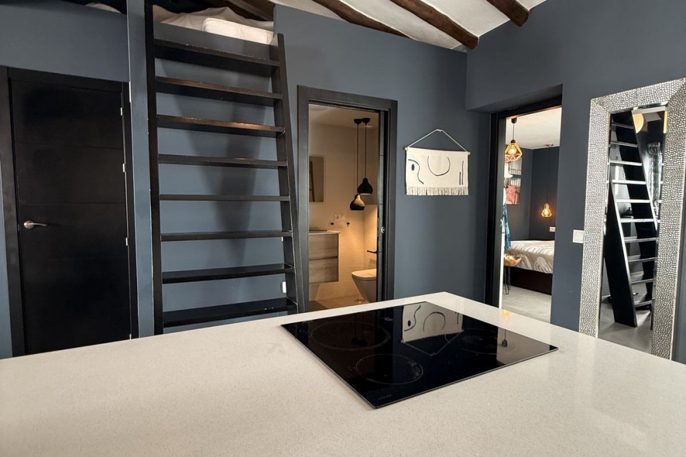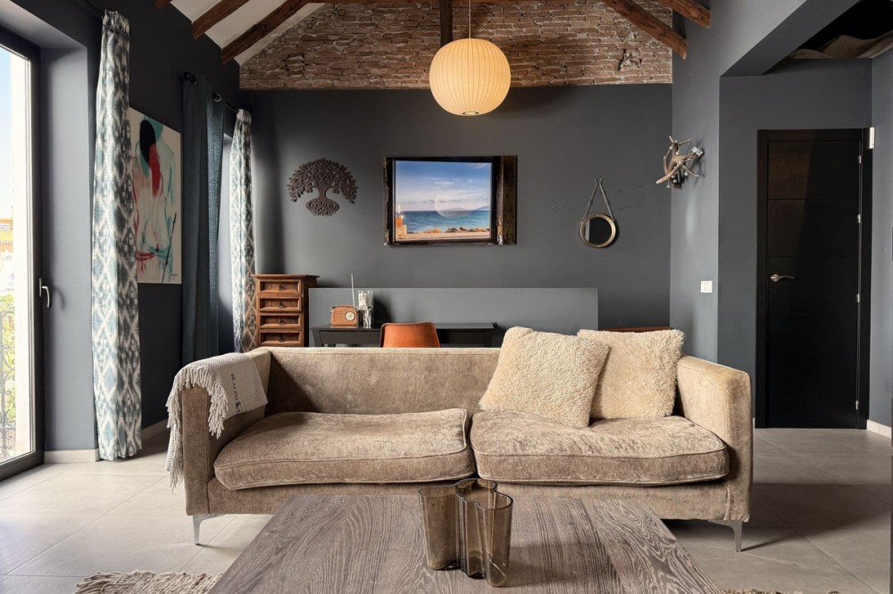 - UNIQUE UPPER FLOOR APARTMENT IN ESTEPONAS OLD TOWN Situated in the heart of Estepona's historic centre, this enchanting penthouse apartment combines character and modern design. Just a short stroll from the beach, marina, and local amenities, it offers the perfect blend of comfort and vibrant culture. The apartment features an open living concept with dramatic double-height ceilings, original wood beams, and a cozy wood-burning stove. Every detail has been carefully considered in the stunning furnishings and decoration. It includes a spacious double bedroom, a double loft style bed for guests, and a full bathroom. Three individual outdoor terraces, totaling 75 m², provide ample space for al fresco dining, sunbathing, or rooftop yoga. Estepona Old Town's cobblestone streets, vibrant murals, and historic architecture create a unique and lively atmosphere. This penthouse has a touristic license code already, which is rare to find, so it is not only a dream home but also a sound investment opportunity. It comes key-ready, allowing you to start enjoying it immediately. Contact us today to learn more and arrange a viewing.