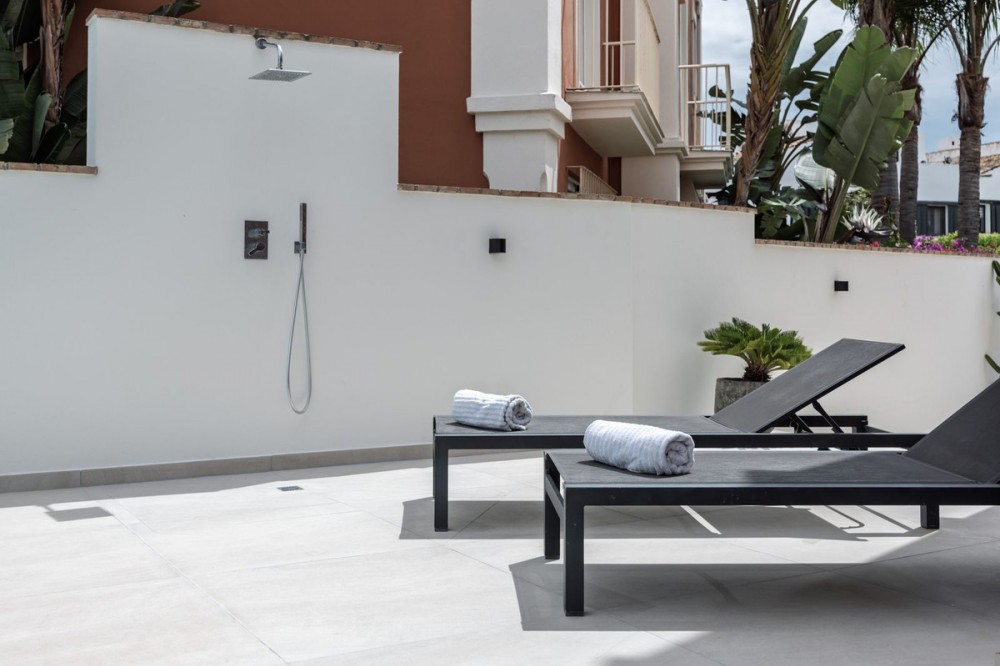 - **Dream Home close to the Beach in San Pedro - Fantastic Semi-Detached House for Sale! ** Welcome to this wonderful semi-detached house, located just a stone's throw from the sparkling beach! Here you can enjoy salty swimming and long beach walks. With its perfect location, next to the popular NAC and I/O, and close to Laude and San Pedro town, you have everything you need within walking distance - restaurants and all necessary services. This home offers a bright and open floor plan, which creates a pleasant atmosphere all year round. With four bedrooms and two bathrooms, it is perfect for families or as a holiday home. The private pool is ideal for hot summer days and evening swims, the outdoor kitchen and outdoor shower make it possible to spend the day outdoors. The plot is relatively large and easy to maintain, which gives more time for relaxation and socializing. In addition, there is the possibility of parking on the plot. With low operating costs and a tourist license and all papers incl. LPO ready, this is a fantastic investment for short term rentals - with the potential to generate up to €900 per night in peak season. This is a property for those who want to live close to the sea and have all amenities within walking distance. Whether you are looking for a permanent residence or a holiday home, this is a place to look forward to! Contact us for more information and book a viewing today!