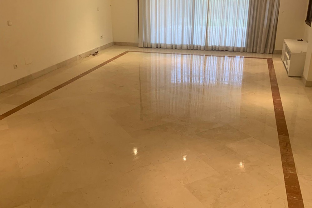 • Located within the exclusive Gran Bahía Marbella development, this spacious ground-floor apartment offers refined coastal living just steps from the beach. The property features three generously sized double bedrooms, each with its own en suite bathroom, providing comfort and privacy for residents and guests alike. A guest cloakroom is conveniently situated off the entrance hall. The bright and fully fitted kitchen includes space for a breakfast table and is complemented by an adjoining utility room. The open-plan living area flows seamlessly onto a large private terrace and a small garden, with direct access via steps to the beautifully maintained communal gardens and swimming pools. Additional highlights include two secure underground parking spaces and a sizable storage room. This is a superb opportunity to enjoy luxurious beachside living in one of Marbella’s most sought-after communities.