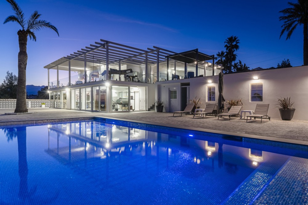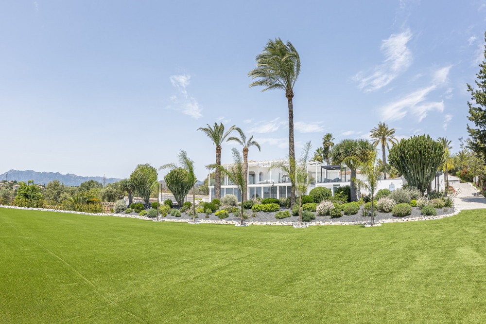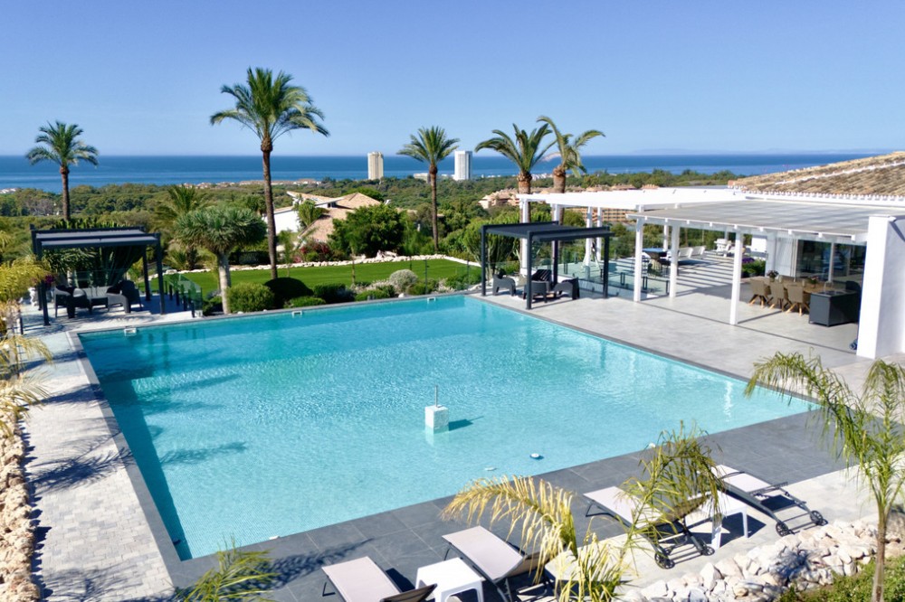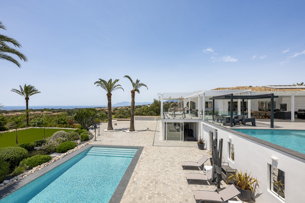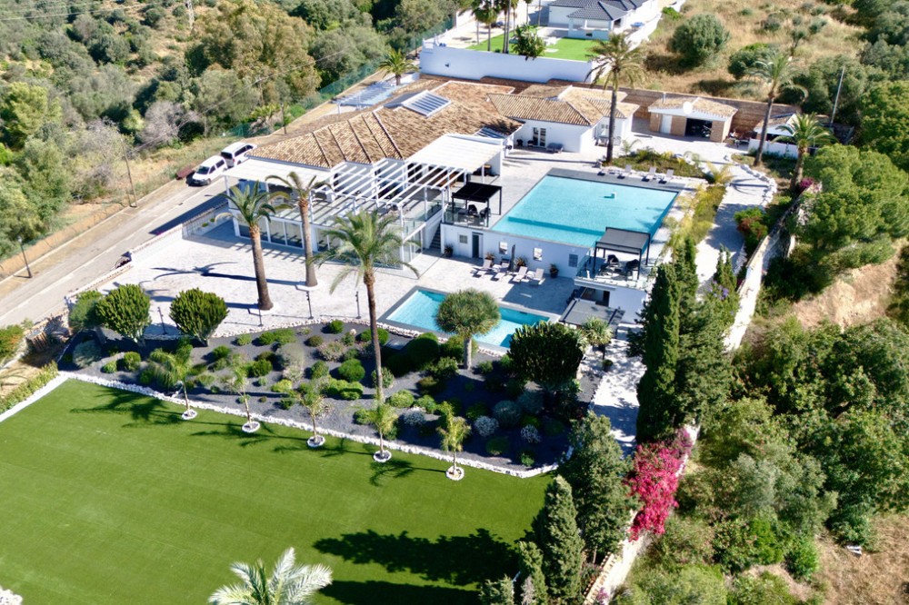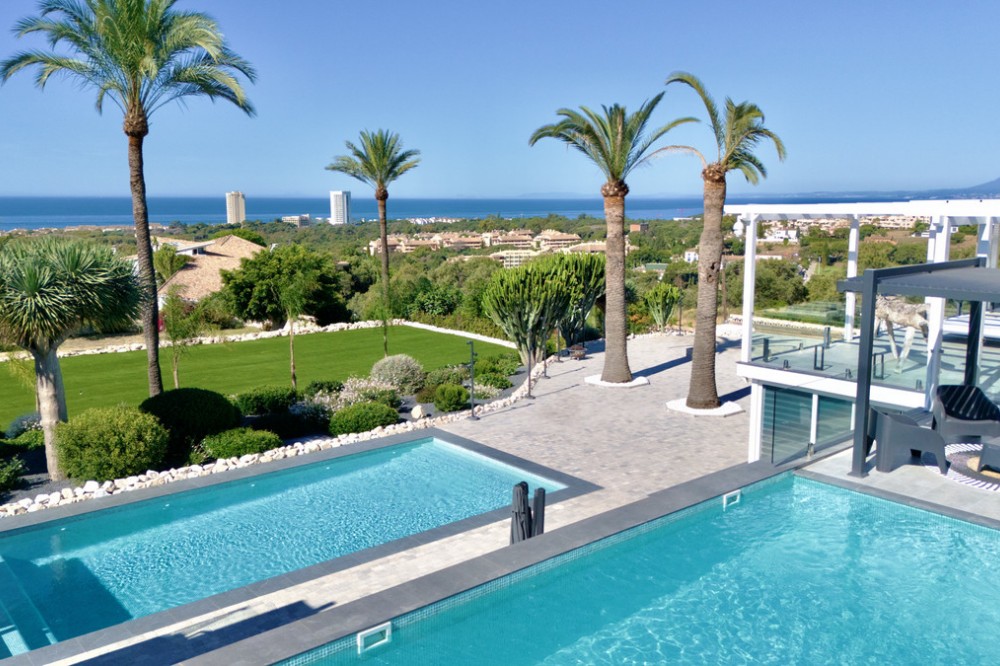 - Set on two generous plots totalling 6.128 m², this private and peaceful luxury villa offers a rare blend of modern Mediterranean style and natural beauty in Elviria, Marbella East. Surrounded by its own unspoilt land on one side, the property enjoys exceptional privacy, space and uninterrupted views. The home is situated on one level, a unique find in this sought-after area, offering comfort and easy living. Just minutes from a local commercial centre and the A-7 coast road, the location is ideal for reaching Marbella, La Cañada shopping centre, international schools and the coast. Golf courses, hiking trails, and water sports are also nearby, adding to the appeal of the lifestyle. Inside, the villa feels bright, open and welcoming. The heart of the home is the spacious living room, designed with floor-to-ceiling glass doors that open directly onto the terrace, framing fantastic views of the sea and surrounding greenery. Natural light floods in from all angles, creating a warm and inviting atmosphere. The contemporary kitchen with breakfast area flows naturally into this space, making it ideal for family life and entertaining. There are four deluxe bedrooms, including a main suite with indoor and outdoor showers. What makes this property stand out are the exceptional outdoor areas. The beautifully maintained garden surrounds the home, filled with quiet corners perfect for reading or relaxing. The terraces are extensive and varied, offering postcard-perfect views across the hills and out to the sea - the kind of views that never get old. Two stunning swimming pools enhance the appeal: one located at the main living level for easy access and another on a lower terrace, offering breathtaking views. Chill-out zones are dotted throughout the grounds, including a BBQ area, two outdoor dining spaces, a bar and both shaded and sunny spots to enjoy throughout the day. The villa’s lower pool level features a self-contained apartment with private access, offering three bedrooms, 2 bathrooms, and a shower, ideal for guests, extended family, or home office. Other features include solar panels with potential for expansion, underfloor heating, three garages, and a spacious driveway for up to five cars. Elviria is one of Marbella East's most desirable neighbourhoods, known for its natural beauty, established infrastructure and international community. Top schools, including the English International College and the German School, are close by. You'll also find shops, restaurants, sports clubs and some of the area's best beaches just minutes away. There is also potential to build a second home on the land without compromising the sea views, making this an even more versatile investment. Whether you're looking for a stylish family home, a private retreat or a prime Costa del Sol property with space to grow, this villa delivers on every level. All property information provided comes directly from the owner. The listing agent acts solely as an intermediary and cannot guarantee the accuracy or completeness of these details. Prospective buyers are encouraged to conduct their own due diligence to verify important information. Thank you for your understanding.