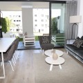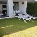 - Competitively priced! Enjoy your coming holidays in this contemporary ground floor apartment with a large private garden. Entering the apartment you have three bedrooms on the left of the hallway which leads you to the spacious living room with open plan kitchen, all beautifully decorated with furniture from the Netherlands. The wall to floor sliding terrace doors open up to a covered terrace and private garden. Complete with an underground parking spot and a very practical, spacious storage room at the entrance of the apartment. What makes this urbanization special is: heated pool, sauna, gym, laudry area, restaurant open all year, mini supermarket and concierge. Last but not least you can also enjoy the hotel style rental services offered on site.