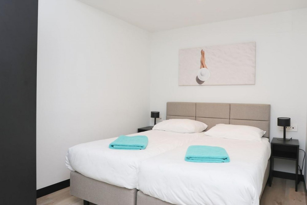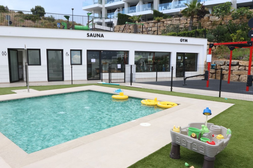 - Competitively priced! Enjoy your coming holidays in this contemporary ground floor apartment with a large private garden. Entering the apartment you have three bedrooms on the left of the hallway which leads you to the spacious living room with open plan kitchen, all beautifully decorated with furniture from the Netherlands. The wall to floor sliding terrace doors open up to a covered terrace and private garden. Complete with an underground parking spot and a very practical, spacious storage room at the entrance of the apartment. What makes this urbanization special is: heated pool, sauna, gym, laudry area, restaurant open all year, mini supermarket and concierge. Last but not least you can also enjoy the hotel style rental services offered on site.