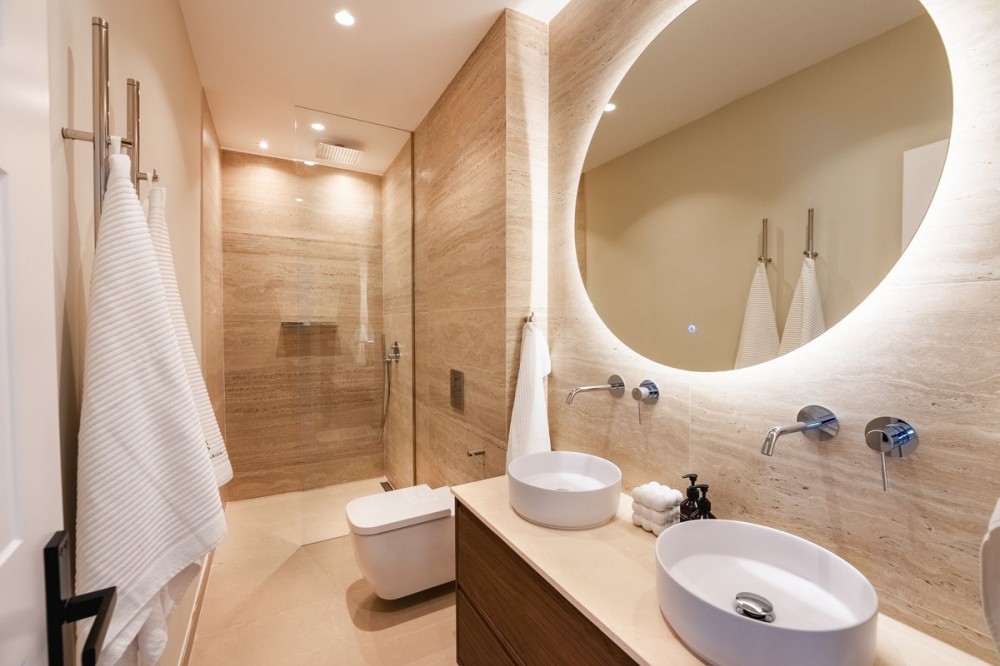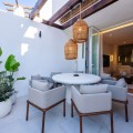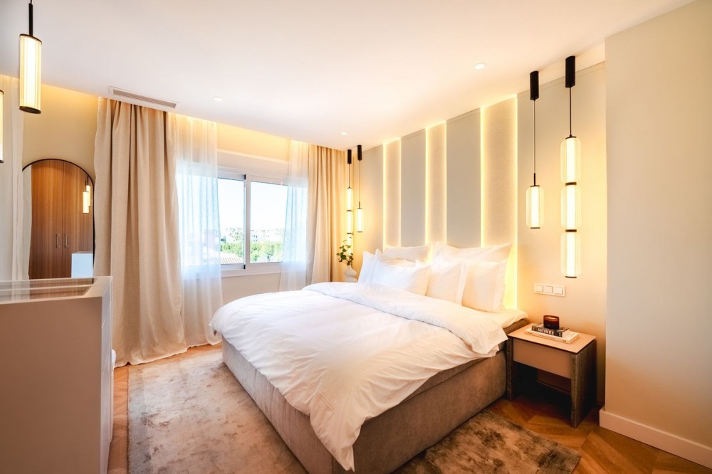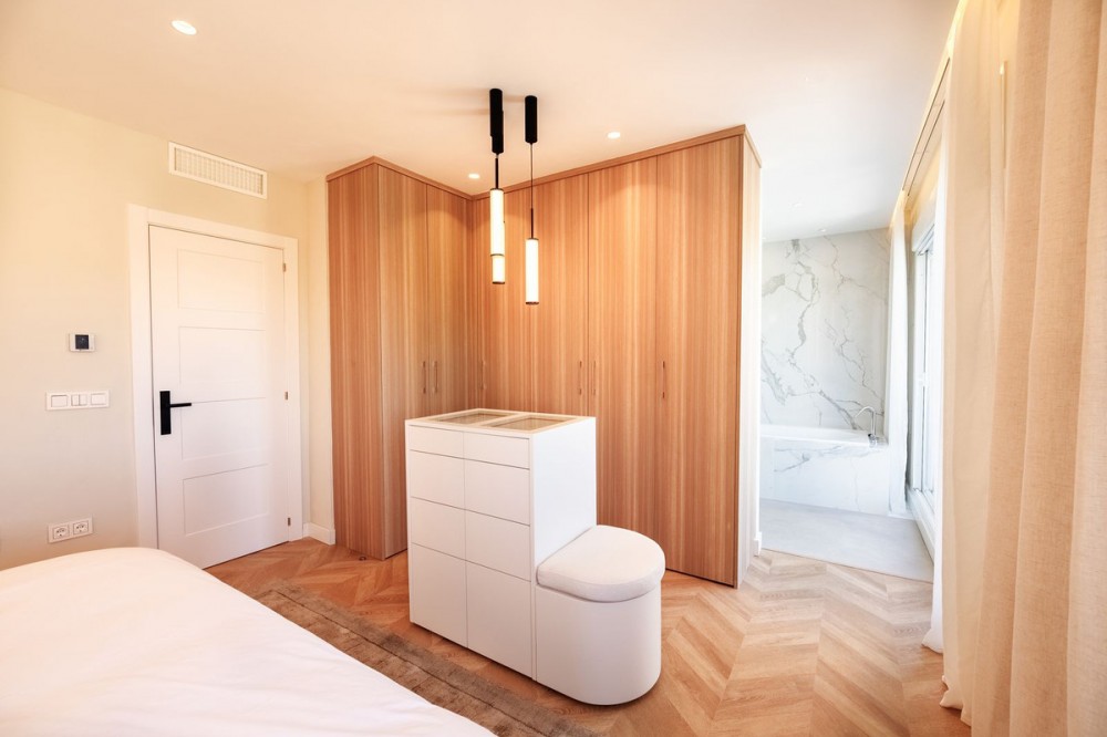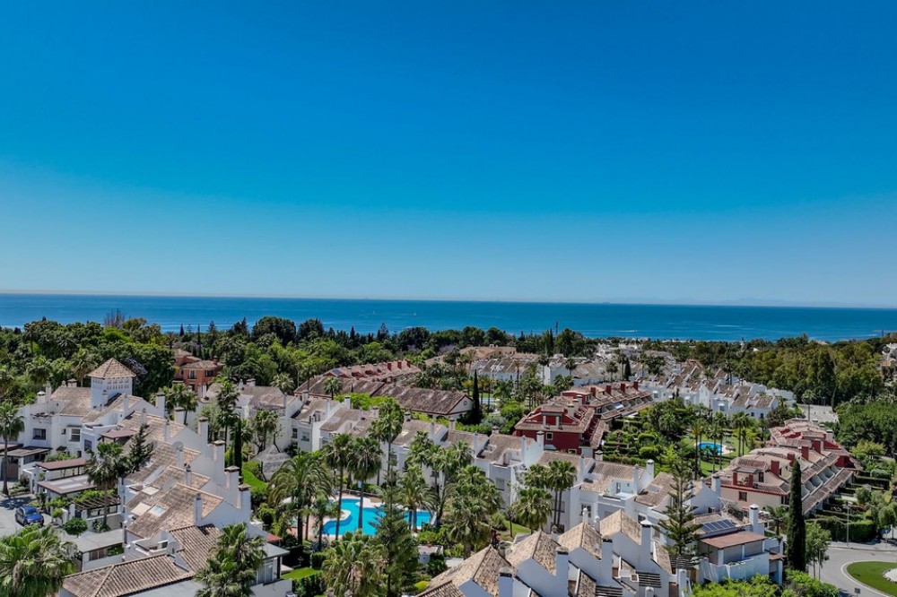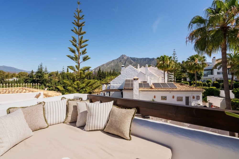- This brand new renovation project is a beautifully crafted 5-bedroom, 5-bathroom Town Villa located on Marbella’s prestigious Golden Mile. Blending contemporary Scandinavian elegance with Mediterranean charm, the home offers four levels of luxurious living with expansive south-facing terraces and sweeping sea views. Designed with both comfort and style in mind, the villa features an open-plan living area with a state-of-the-art Miele kitchen, private cinema, gym, sauna, and an outdoor jacuzzi. Two serene primary suites include private terraces, while all bedrooms are generously sized. Bi-folding glass doors throughout create a seamless indoor-outdoor experience, connecting bright interiors with multiple alfresco lounge and dining areas. Additional highlights include a secure gated driveway, private garage, underfloor heating in bathrooms, smart home technology, and access to a lush communal pool. Just a short walk from Marbella’s beaches, the Puente Romano Resort, the brand new FORUM premium commercial area, and a wealth of gourmet restaurants, boutique shops, and top golf courses, this property is perfectly positioned for those seeking a refined yet relaxed lifestyle. Whether as a full-time residence, vacation retreat, or premium rental investment, this property offers an exceptional opportunity to enjoy the best of coastal Marbella living in a private, high-end setting.