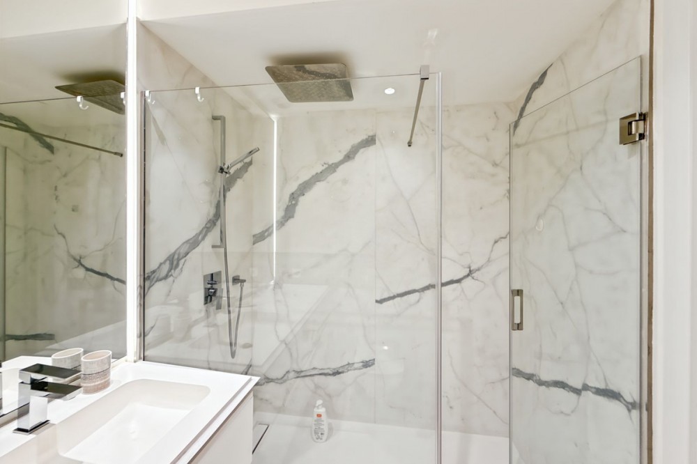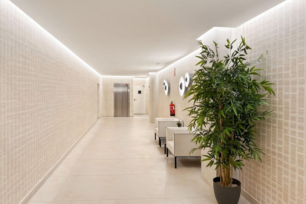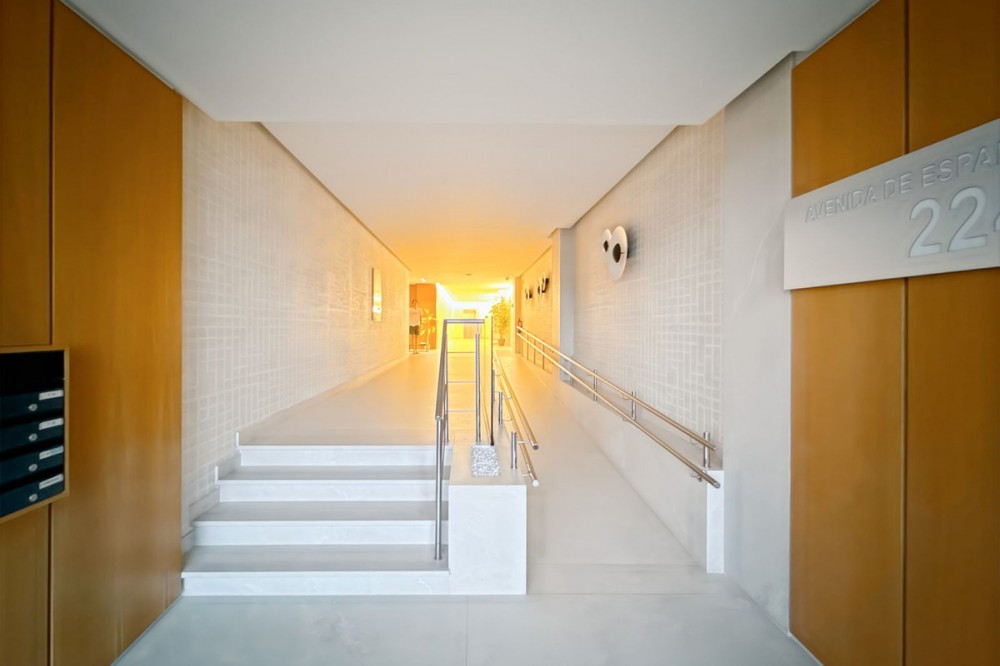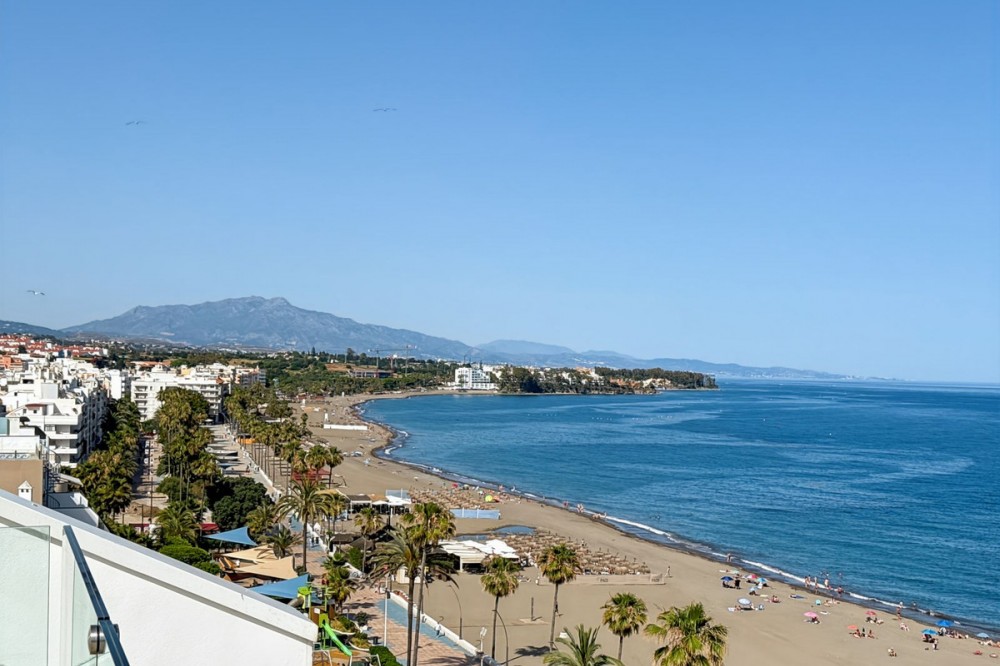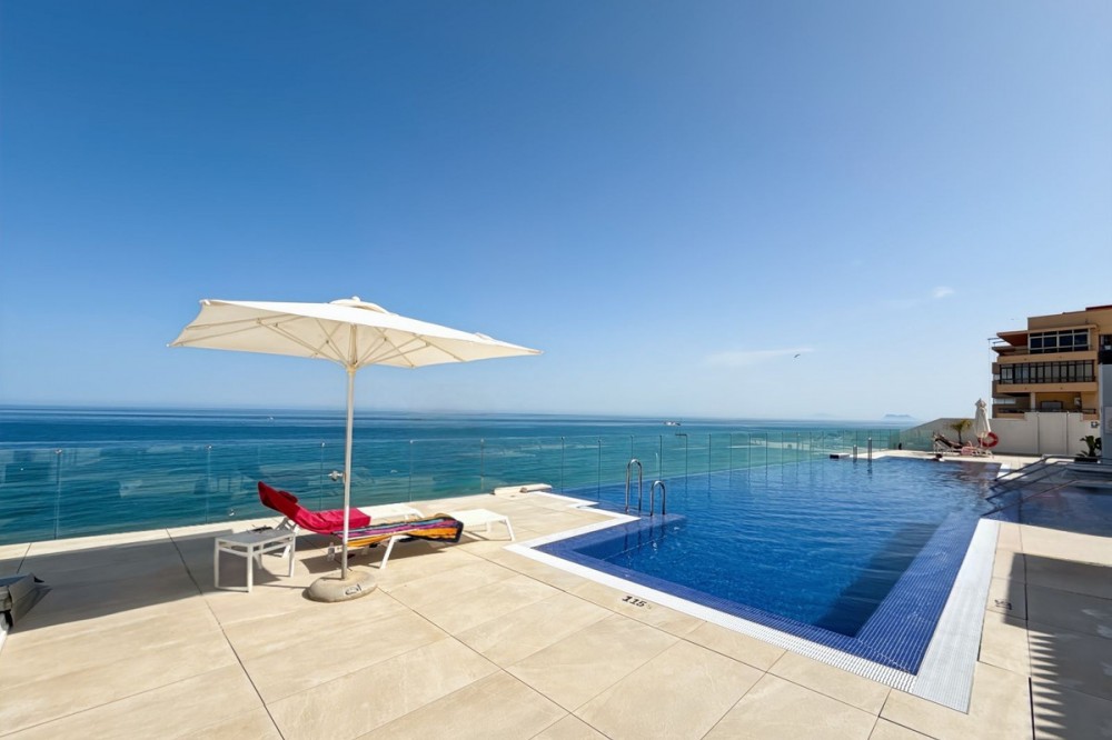 - Right in the heart of Estepona’s promenade, just across the endless blue of the Mediterranean, lies a home that’s not just seen — it’s felt. A place where every sunrise brings a sense of peace, where modern design and warmth blend in perfect harmony. This gem, located on the first floor of a 2021 premium building, is much more than an apartment. It’s a refuge, an experience, a way of life. From the very first step inside, a feeling of well-being takes over. A spacious, light-filled living room opens into a sleek, fully equipped kitchen with high-end integrated appliances — perfect for both daily life and unforgettable gatherings. Underfloor heating powered by an efficient aerothermal system keeps every step cozy, while ducted air conditioning allows individual temperature control in every room, tailored to your rhythm, your comfort, your day. The glazed terrace of over 30 m² extends your living space outdoors — a place to breathe, relax, simply be. When night falls, the two bedrooms offer a quiet retreat. The master suite features an integrated safe, a detail that brings true peace of mind. Bathrooms are designed as spa-like spaces, complete with walk-in rain showers and elegant finishes. Then you reach the rooftop. An infinity pool merges with the sky. A panoramic jacuzzi offers sea views like no other. An open-air gym makes every workout a pleasure. A barbecue and chill-out area set the stage for unforgettable evenings. Even an adapted restroom shows that every detail has been considered. This property includes a private garage space and storage room on floor -2, accessible directly by elevator. Everything is built for seamless, worry-free living. Living here is not just a decision — it’s a feeling that wraps around you. That quiet certainty that you’ve found the place where you truly belong. Some places can’t be described. They must be lived. And this, without a doubt, is one of them.