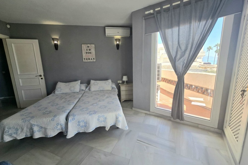 - For discerning clients only! Live in the heart of Puerto Marina, just meters from the beach, in this spectacular apartment designed for those seeking quality, spaciousness, and unparalleled views of the sea and the port. The property comprises: Elegant entrance hall and guest toilet. Spacious living room with fireplace and Climalit double-glazed windows, divided into two areas: Living room. Dining area with direct access to the large terrace with panoramic views. Fully equipped separate kitchen with outdoor laundry room. Master bedroom with en-suite bathroom, built-in wardrobe, and private terrace. Two double bedrooms with built-in wardrobes, both with access to separate terraces. Second full outdoor bathroom. Additional details: Several sunny terraces with views of the sea and the port. Building with elevator. Ample storage space. Air conditioning in all rooms. Marble floors. A unique apartment with a privileged location and high-end details. Located on the seafront in one of the most coveted areas of the Costa del Sol, this home combines comfort, spaciousness, and an excellent interior layout. Surrounded by a wide range of dining and leisure options, this apartment is ideal both as a permanent residence and as a holiday investment.
